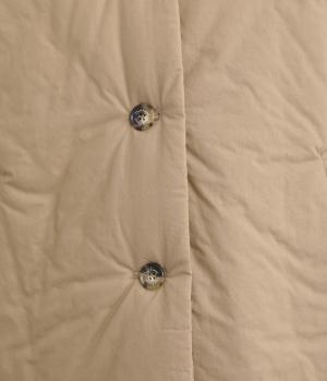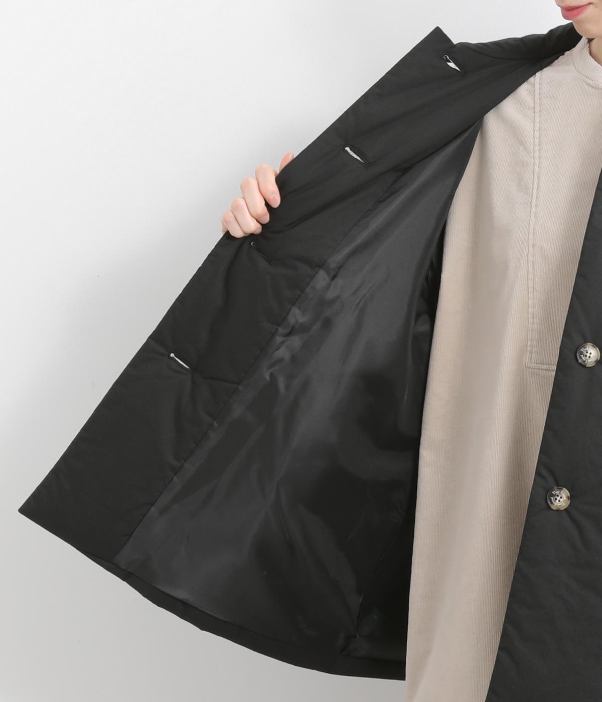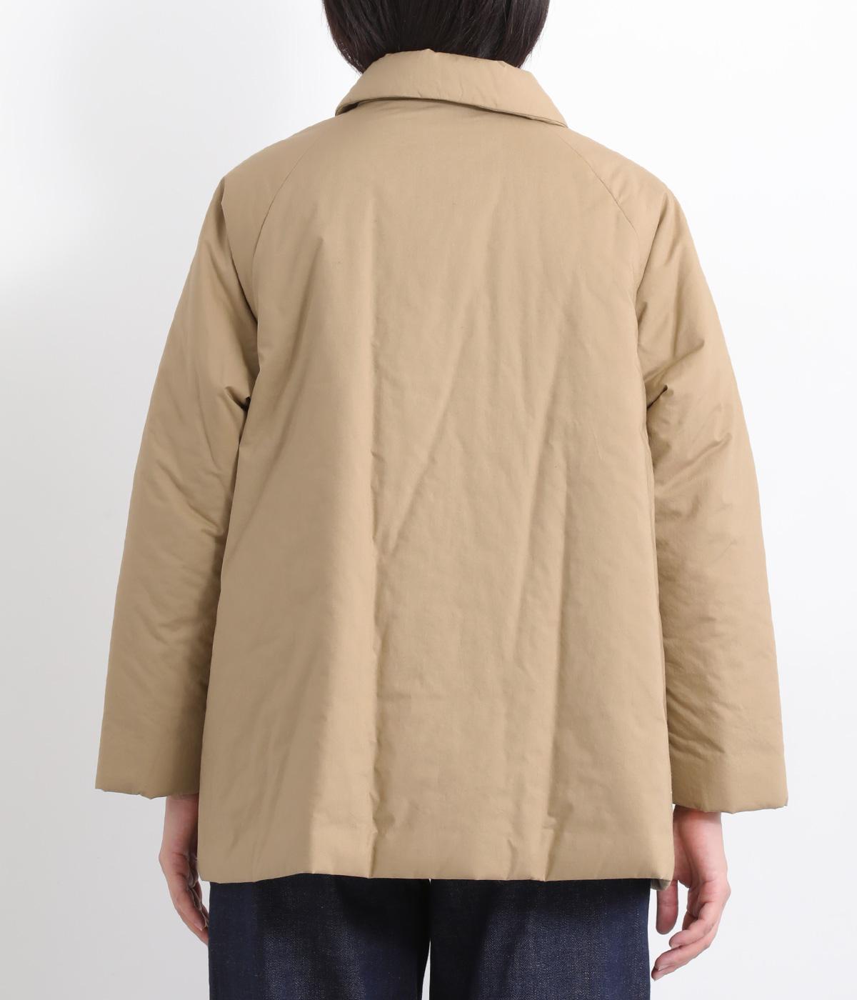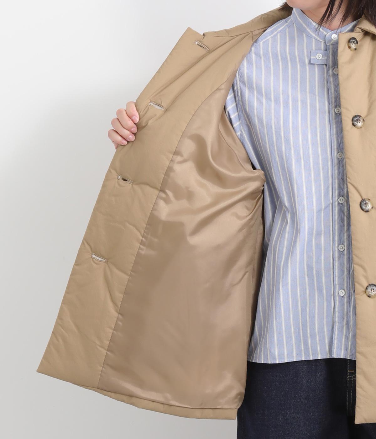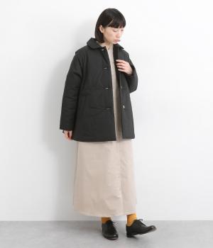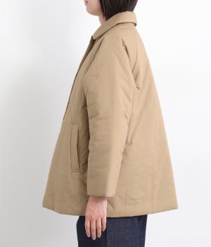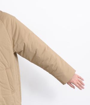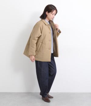 中綿入りでふっくらとした肌触りが特徴的なタイプライターで仕立てました。ポリエステルの裏地をつけているので袖の通りもスムーズ。軽量仕上げで長時間羽織っていても負担がかかりにくいのも◎。