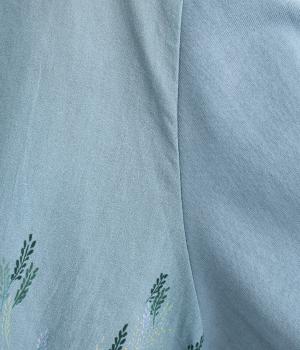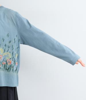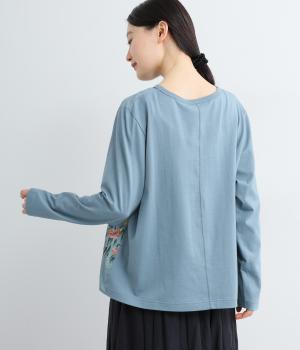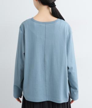 前身頃にはほんのり透け感のあるコットンローン生地、後ろ身頃にはカットソーに多く使われるソフト天竺を使用。軽くてやわらかな肌ざわりが魅力で、ふんわりと心地よく着られます。