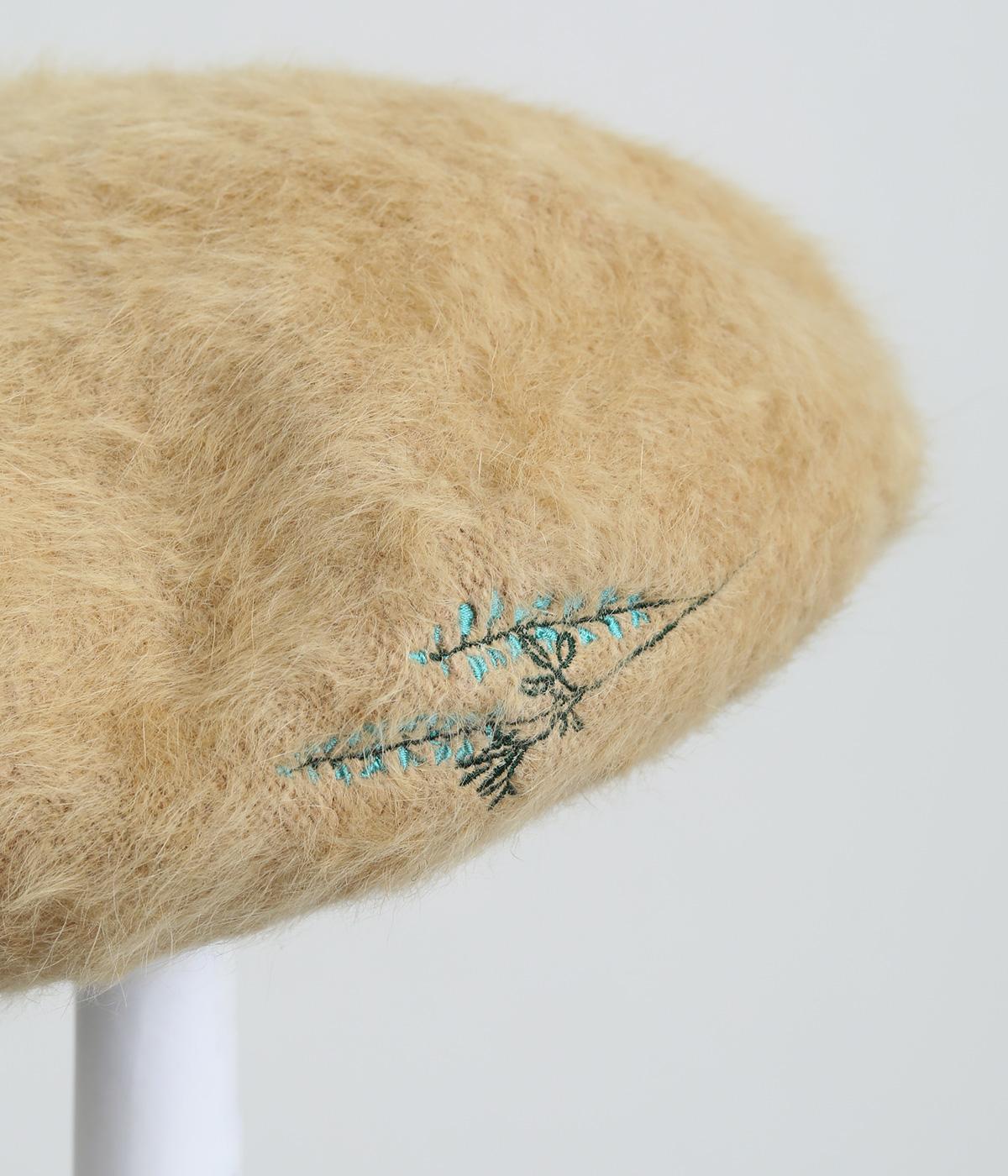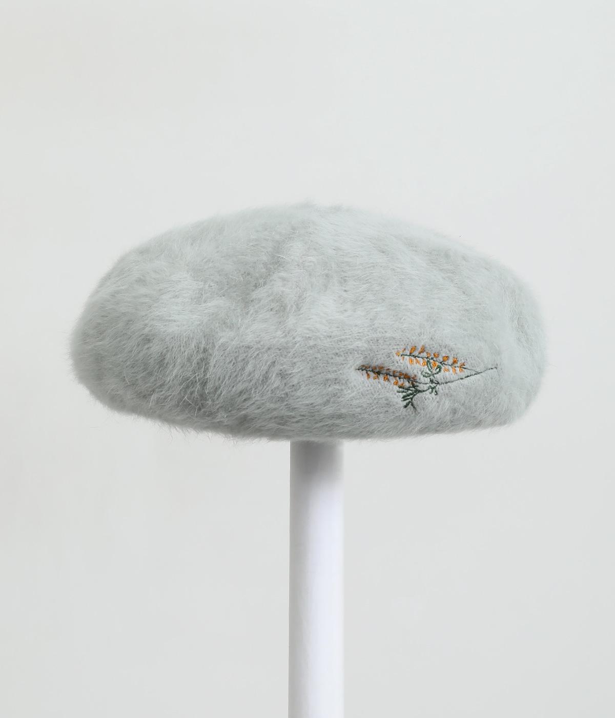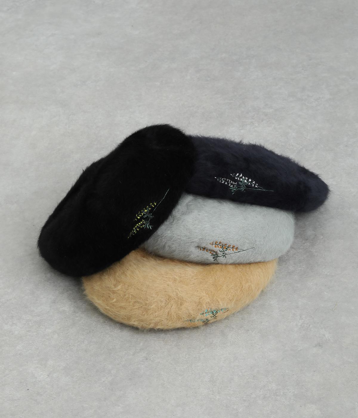 ミモザモチーフのワンポイント刺繍を施したシャギー素材のベレー帽。耳にお花を挿しているようなこだわりのデザインが愛らしさを加速させます。いつもの何気ない装いに合わせるだけで、パッと華やぐ便利なアイテムです。