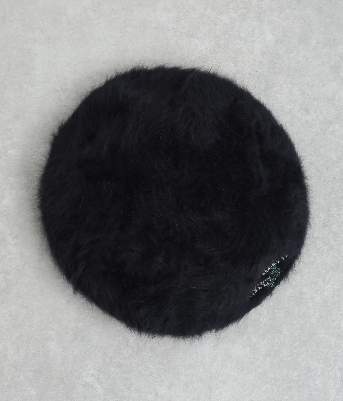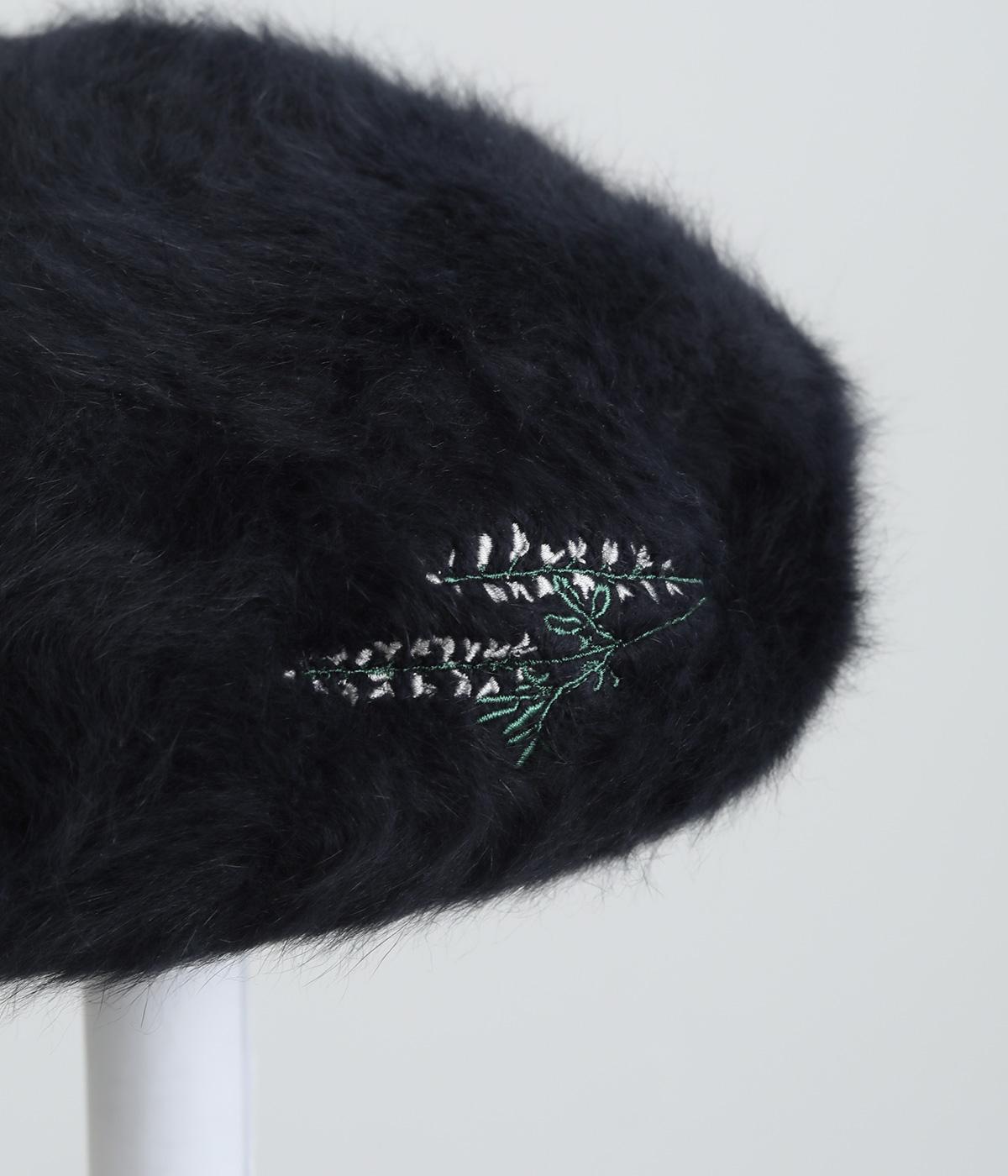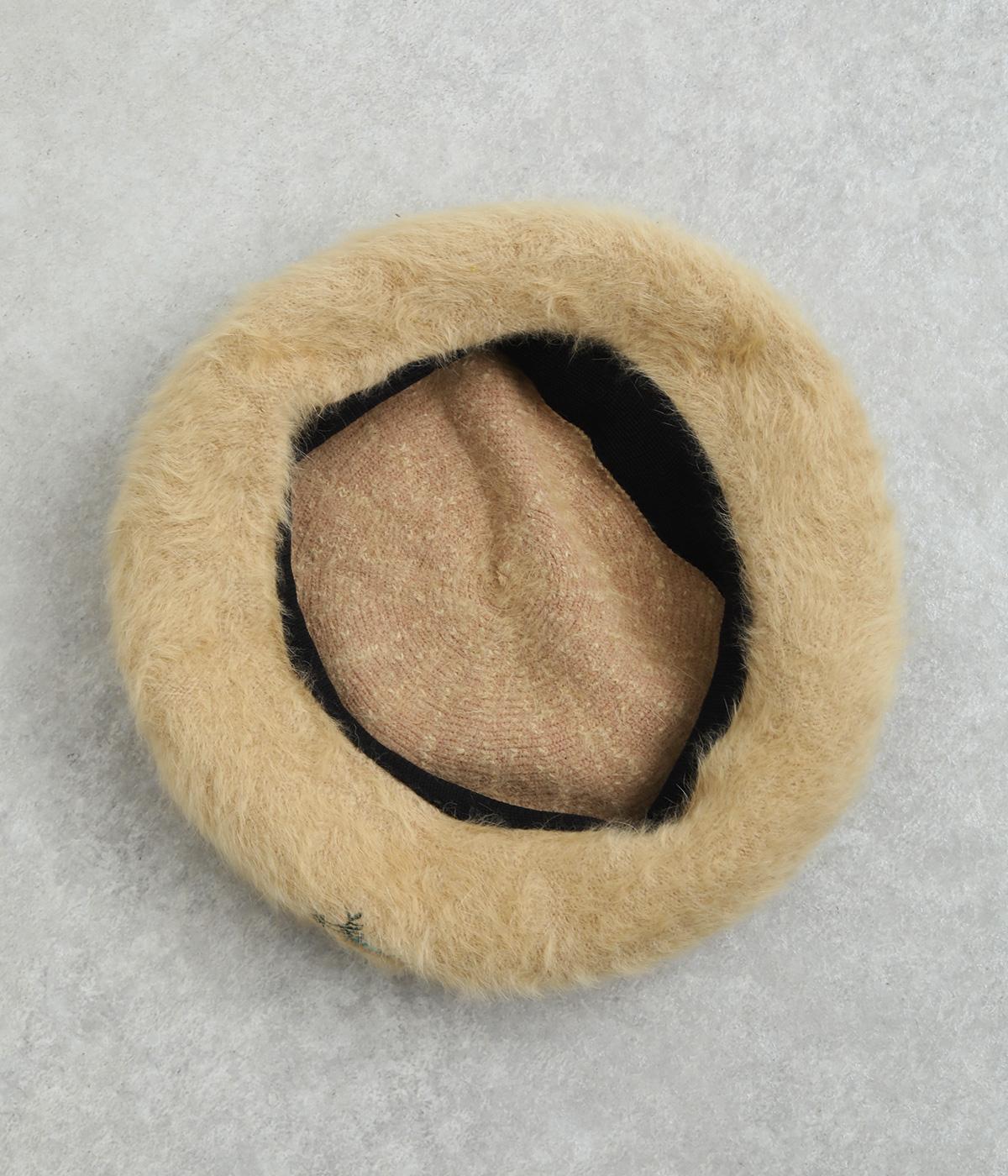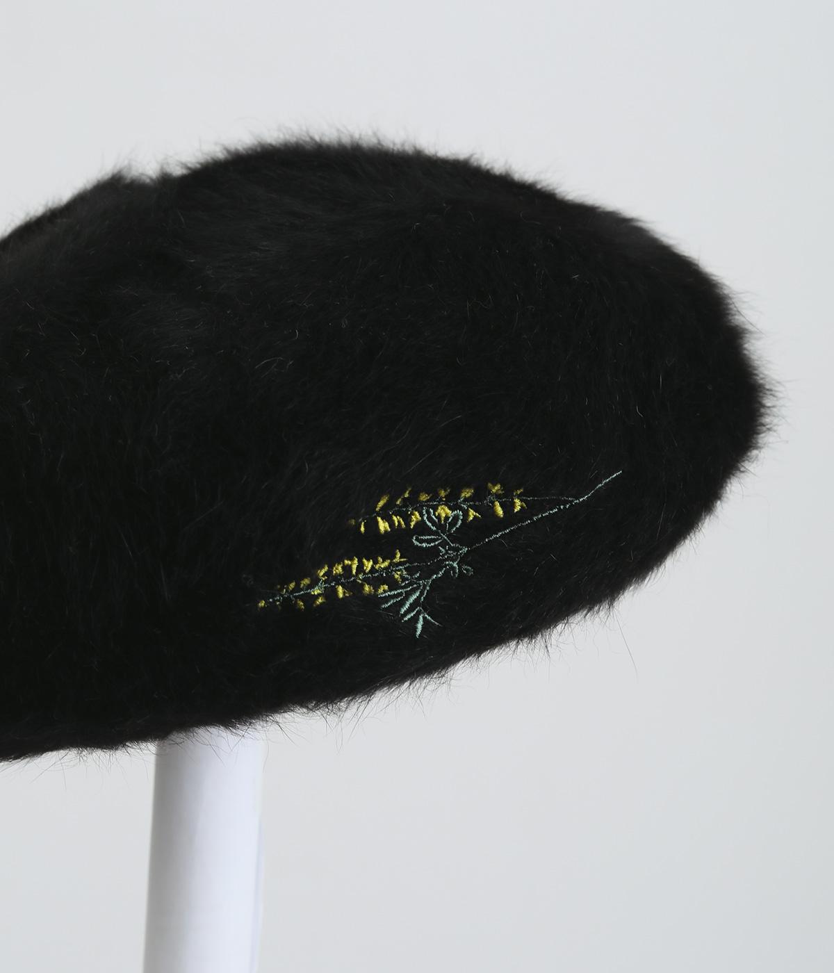 ミモザモチーフのワンポイント刺繍を施したシャギー素材のベレー帽。耳にお花を挿しているようなこだわりのデザインが愛らしさを加速させます。いつもの何気ない装いに合わせるだけで、パッと華やぐ便利なアイテムです。