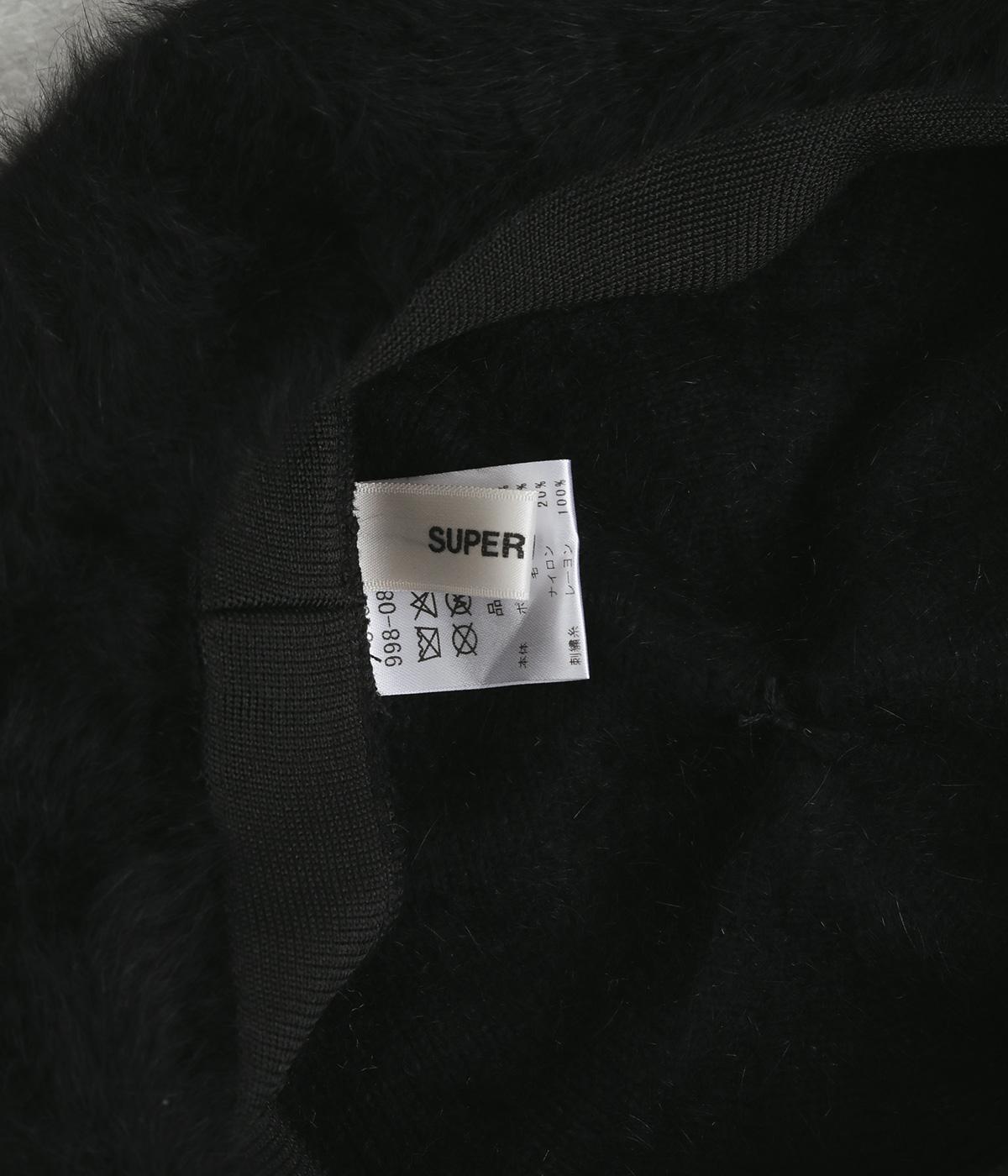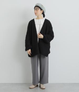 ふんわりとした毛足の長いシャギー素材を使用。ハリを持たせているので、着用時にきれいな形をキープししてくれます。軽くあたたかな着用感で、寒い時期の防寒にも便利です。