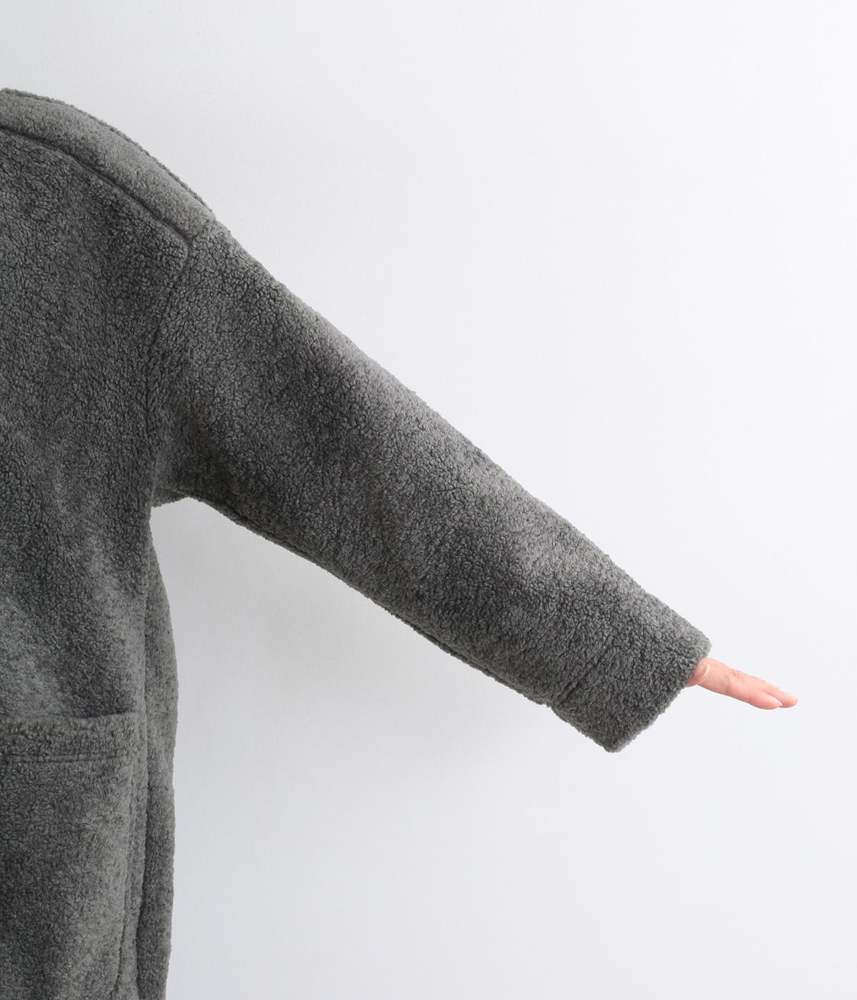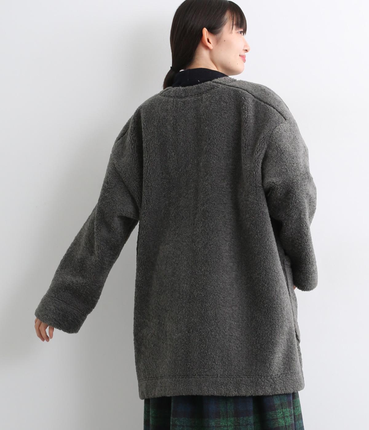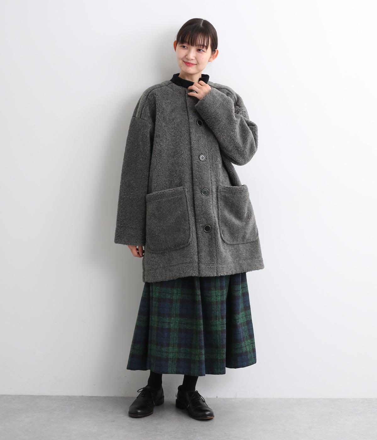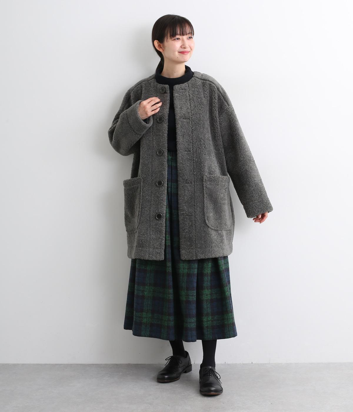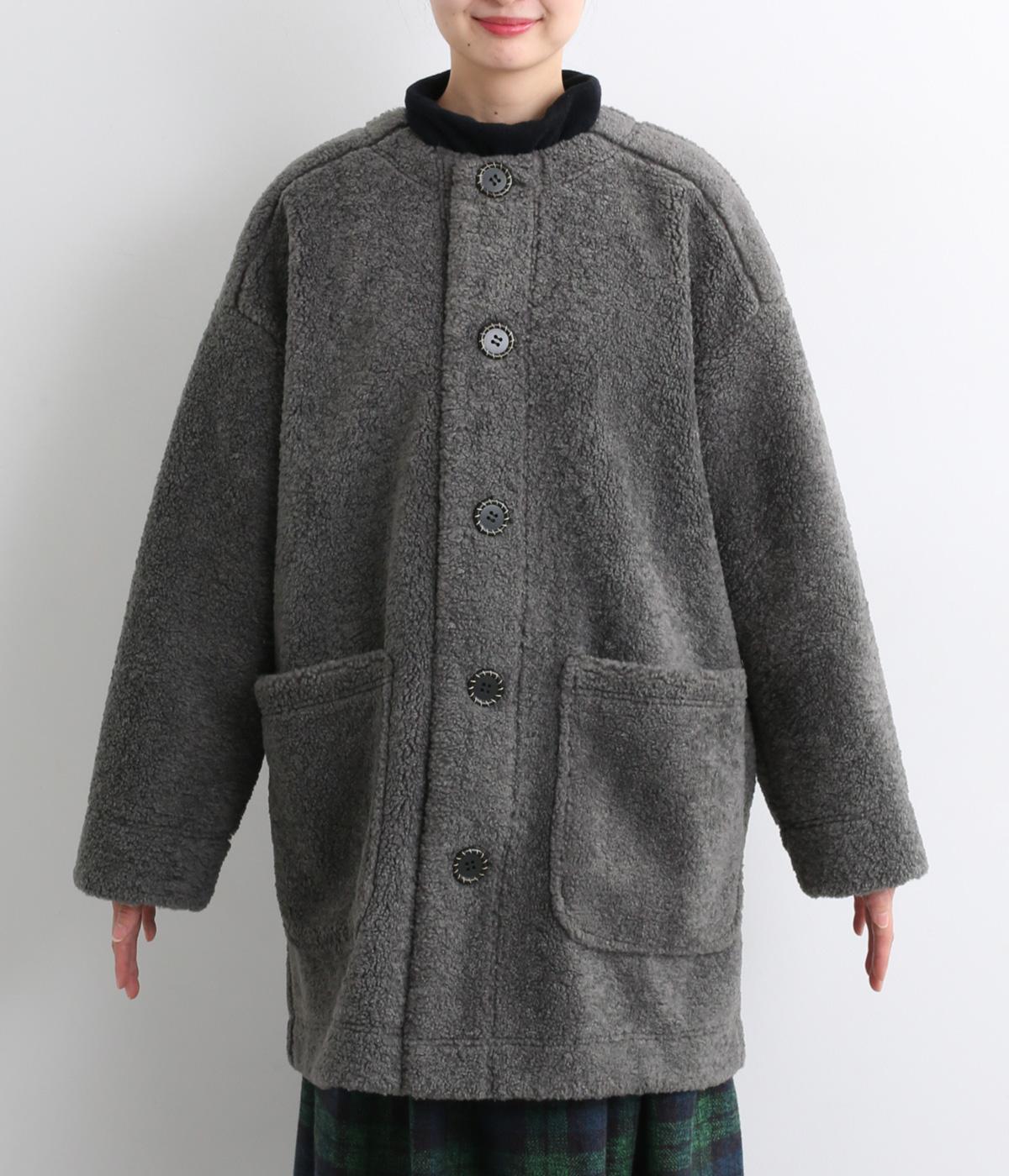 コーディネートに取り入れやすいシンプルデザインに、大きめボタンで少しクラシカル感もプラス。ボトムとの合わせも楽しめるミドル丈を採用しました。ノーカラーのためマフラーなどを合わせてもすっきりと着られます。