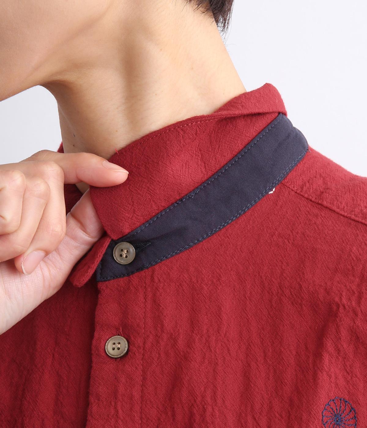 ナチュラルな凹凸感のある先染めのコットンシャーリング生地を使用しました。薄手で軽い着心地が魅力で、羽織りものとしても重宝します。