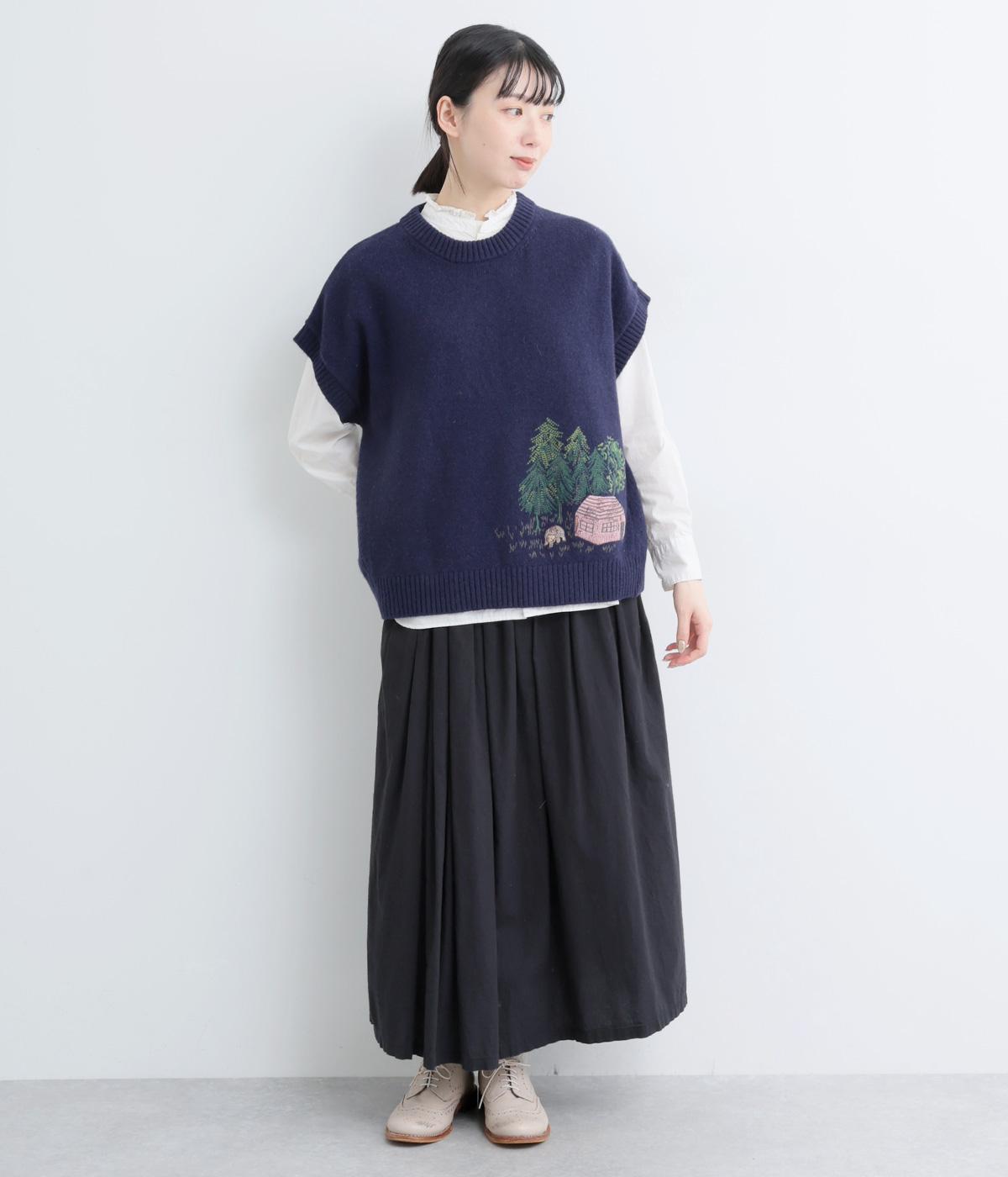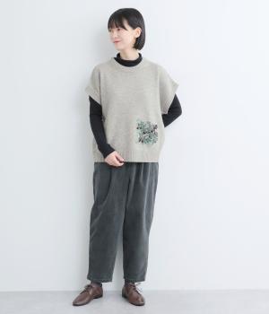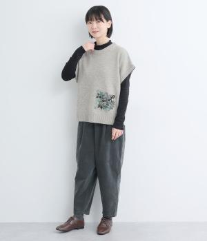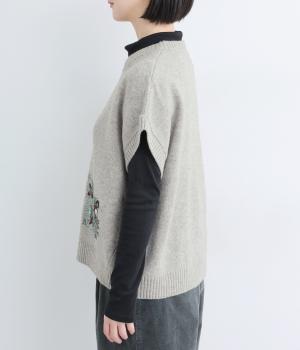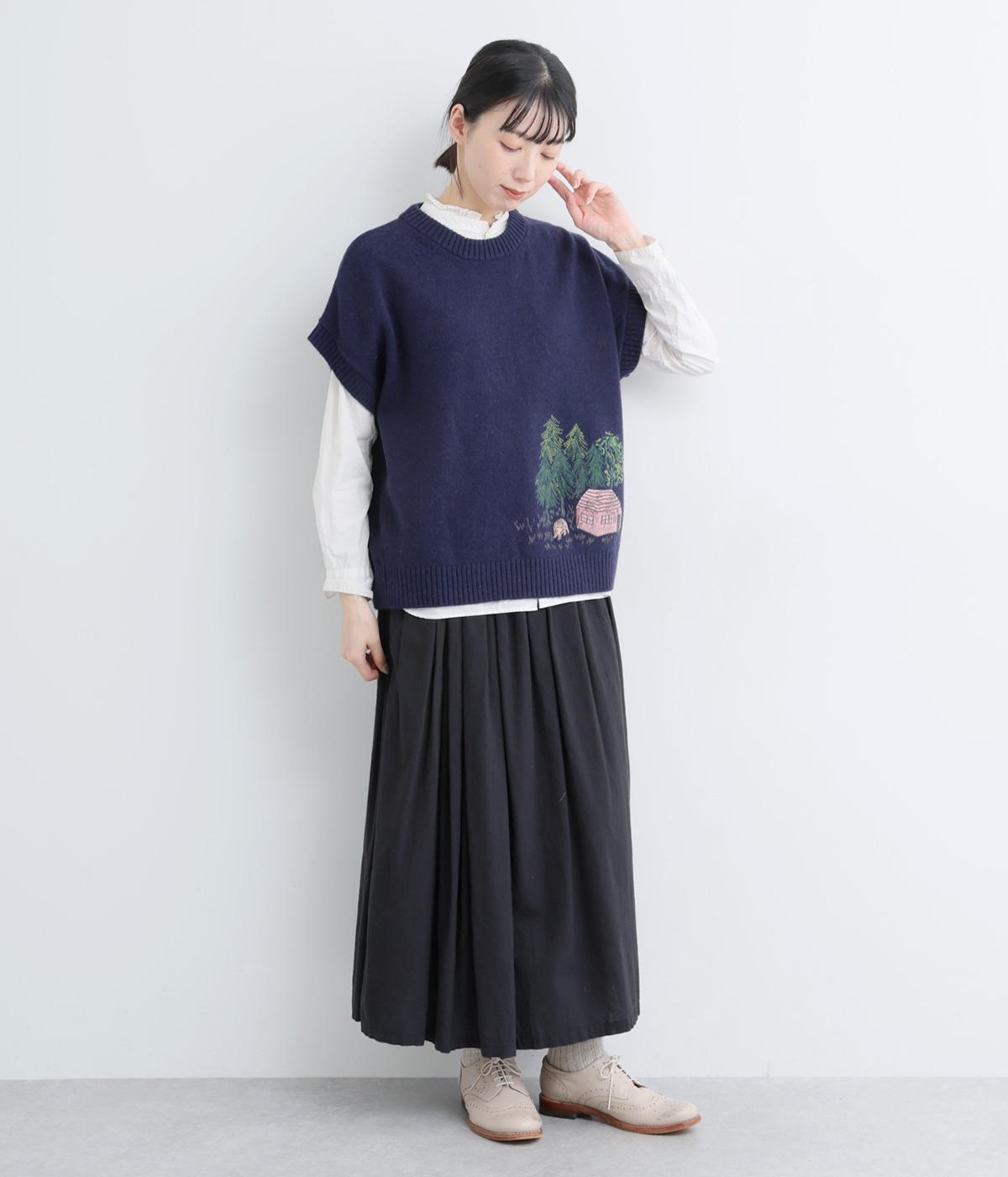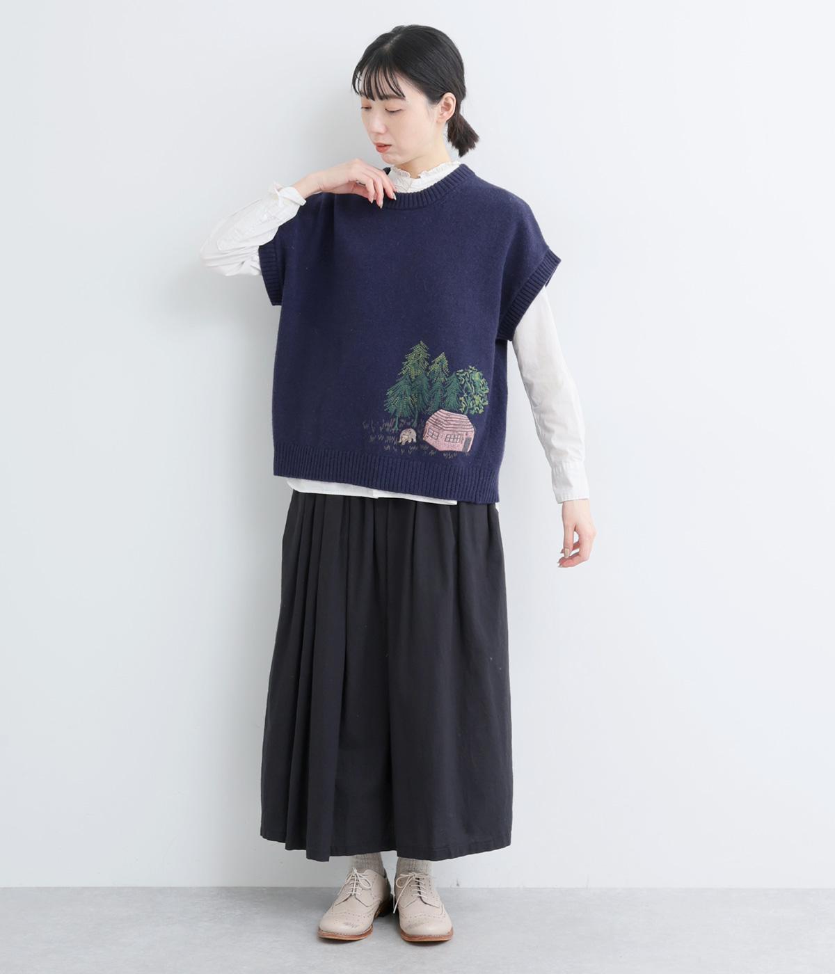 絵描き・イラストレーターのサクマユウコさんの世界観を楽しめる、モチーフ刺しゅうのニットベストです。短すぎない丈感ですっきりとメイン使いにしたり、シャツやワンピースとレイヤードしたりと、着こなしを彩ってくれます。ちょこんとついた袖も◎。