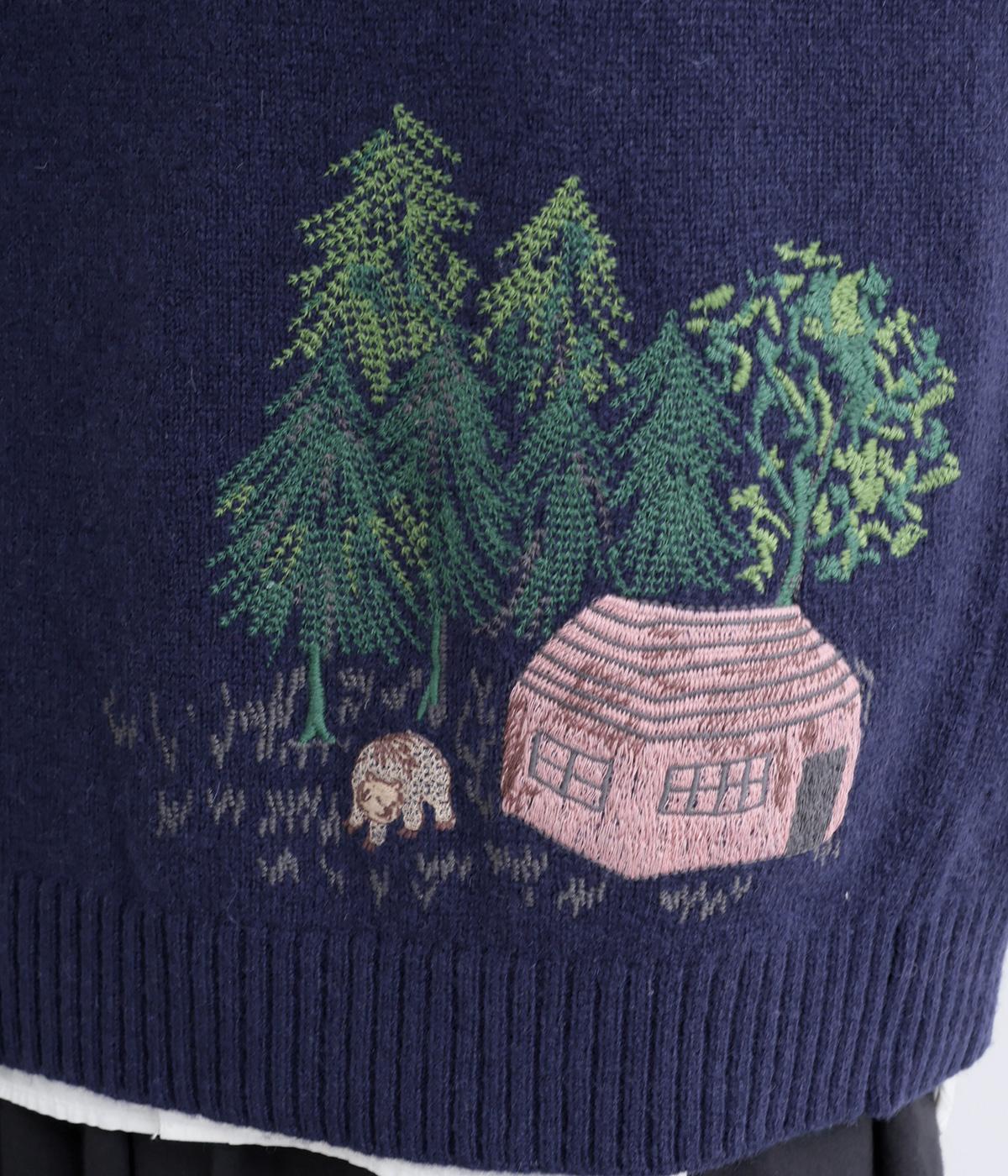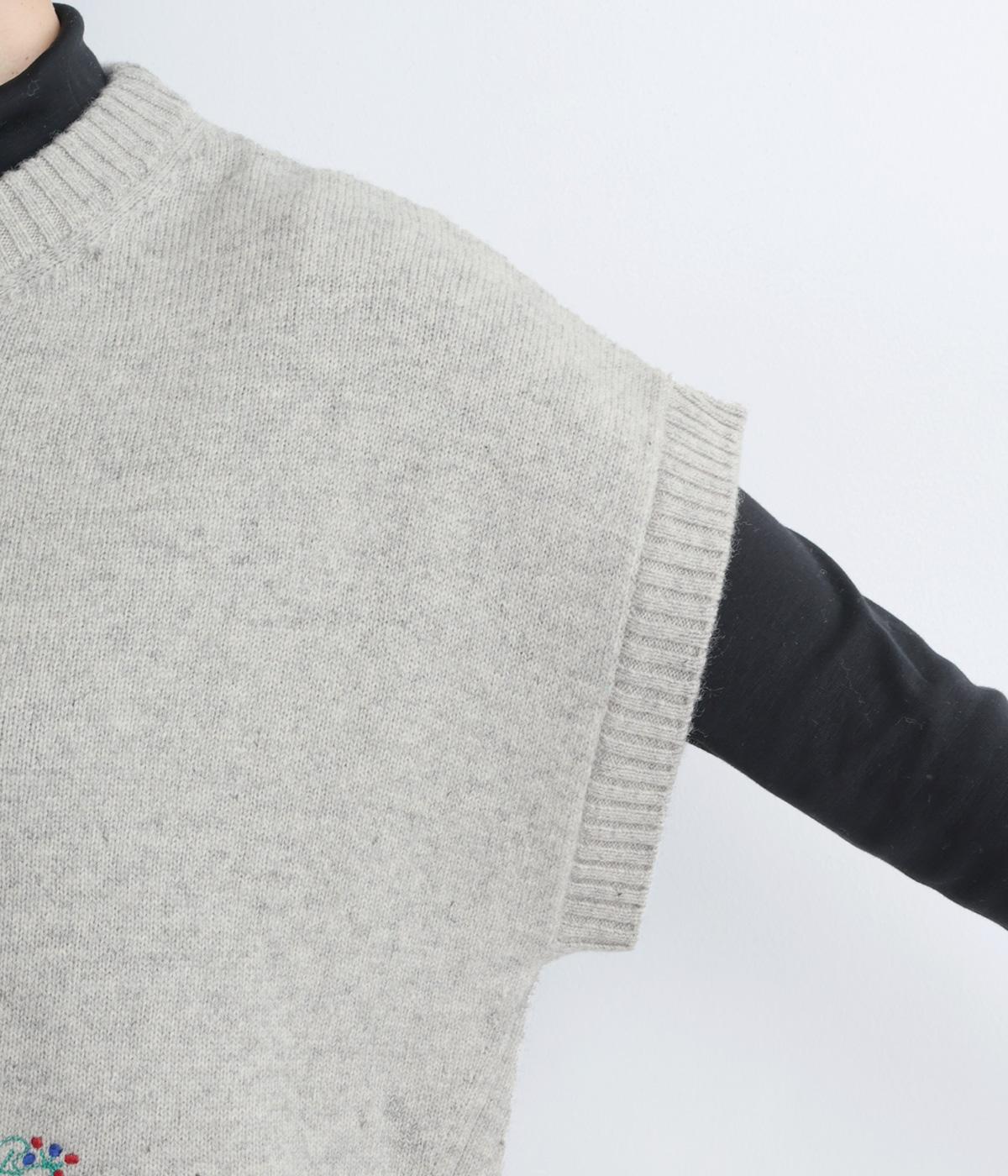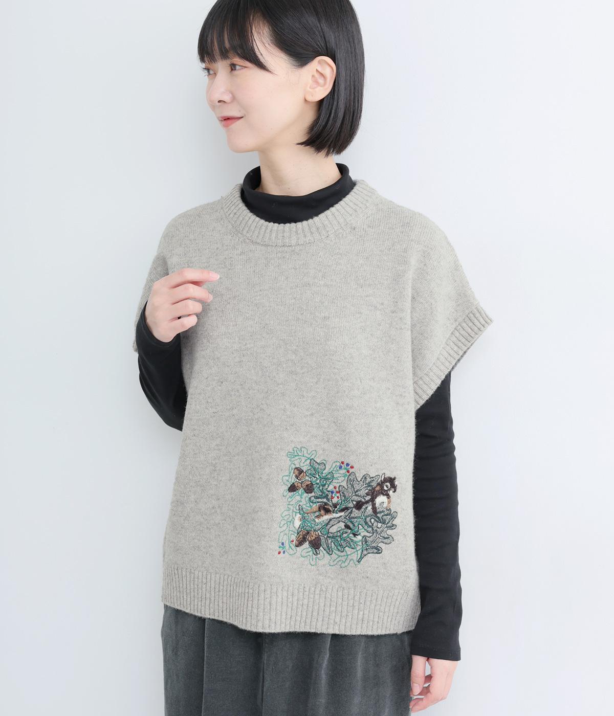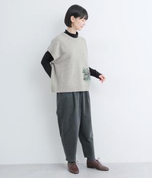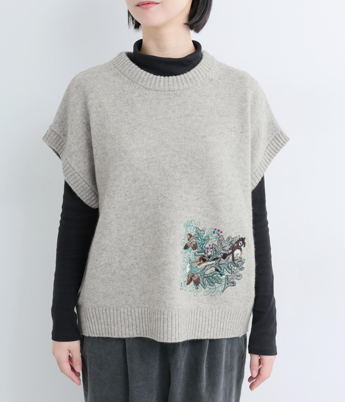 絵描き・イラストレーターのサクマユウコさんの世界観を楽しめる、モチーフ刺しゅうのニットベストです。短すぎない丈感ですっきりとメイン使いにしたり、シャツやワンピースとレイヤードしたりと、着こなしを彩ってくれます。ちょこんとついた袖も◎。