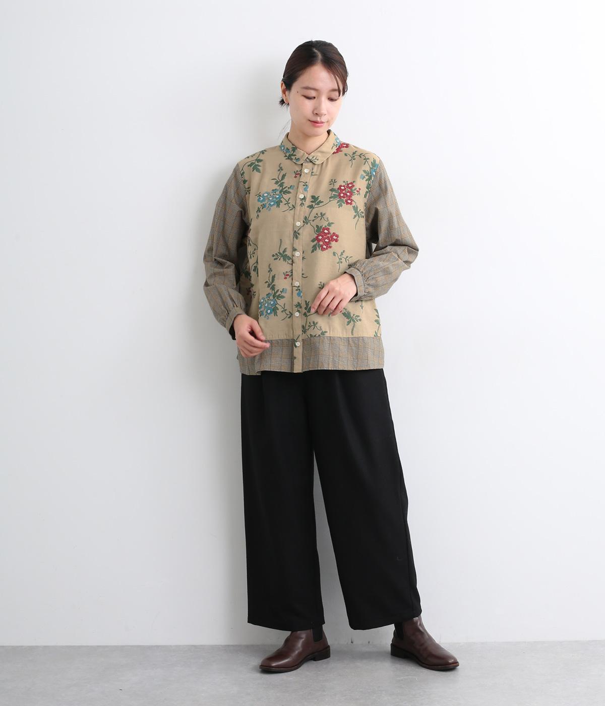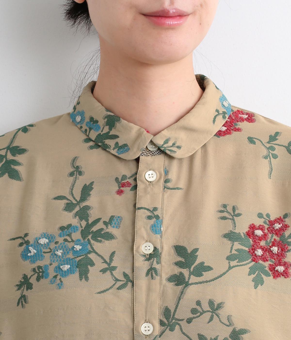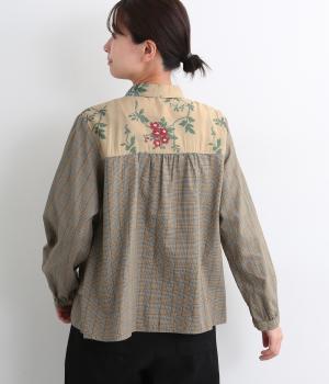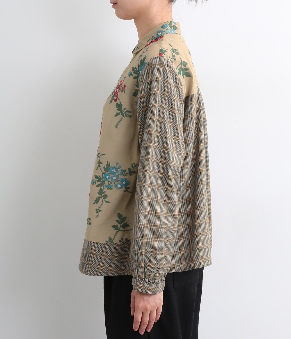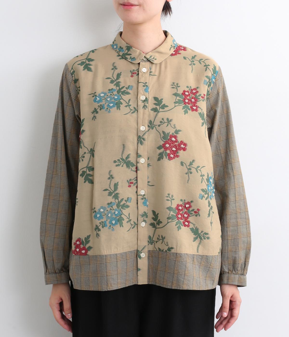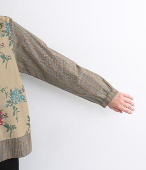 前見頃とヨークの花柄ジャカードが主役級なデザインシャツです。チェック地と切り替えることで、甘すぎず品よく仕上げています。シルエットは体をほどよく包み込むAライン。バックにもギャザー入りで、後ろ姿もきれいです。