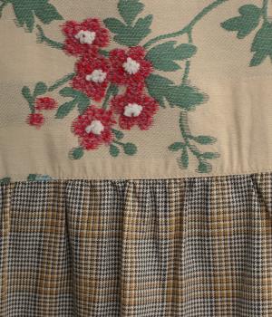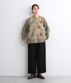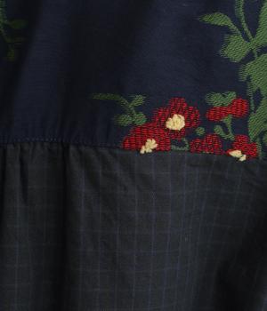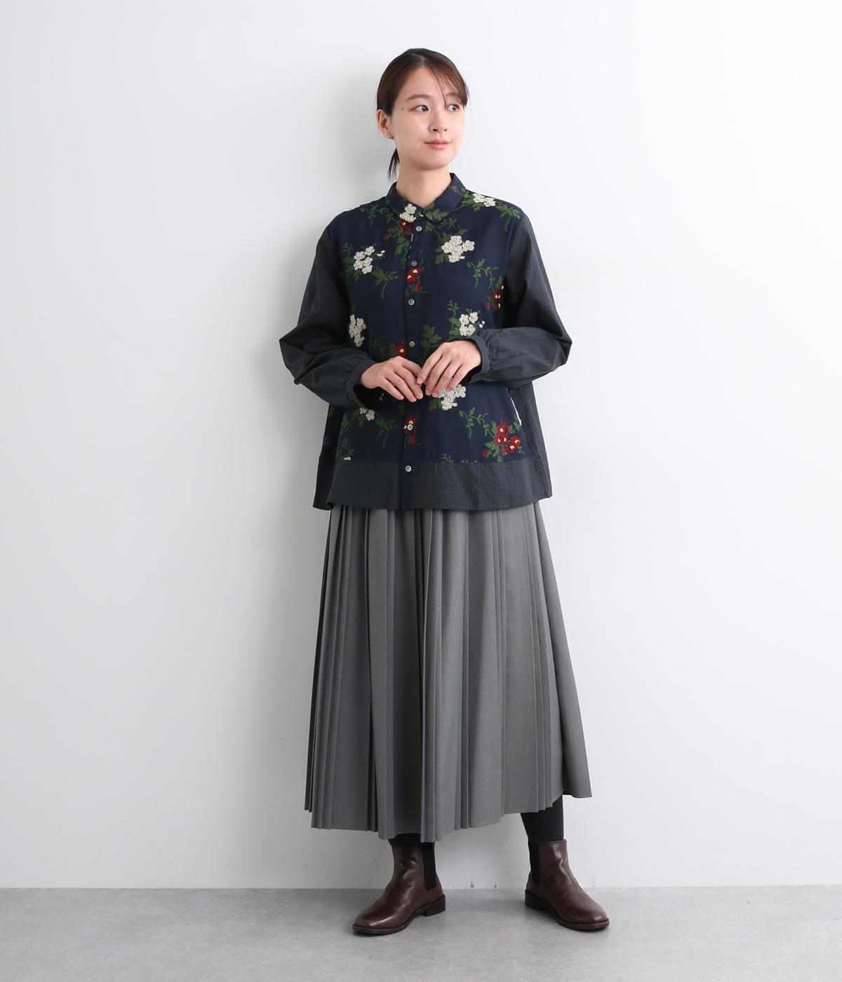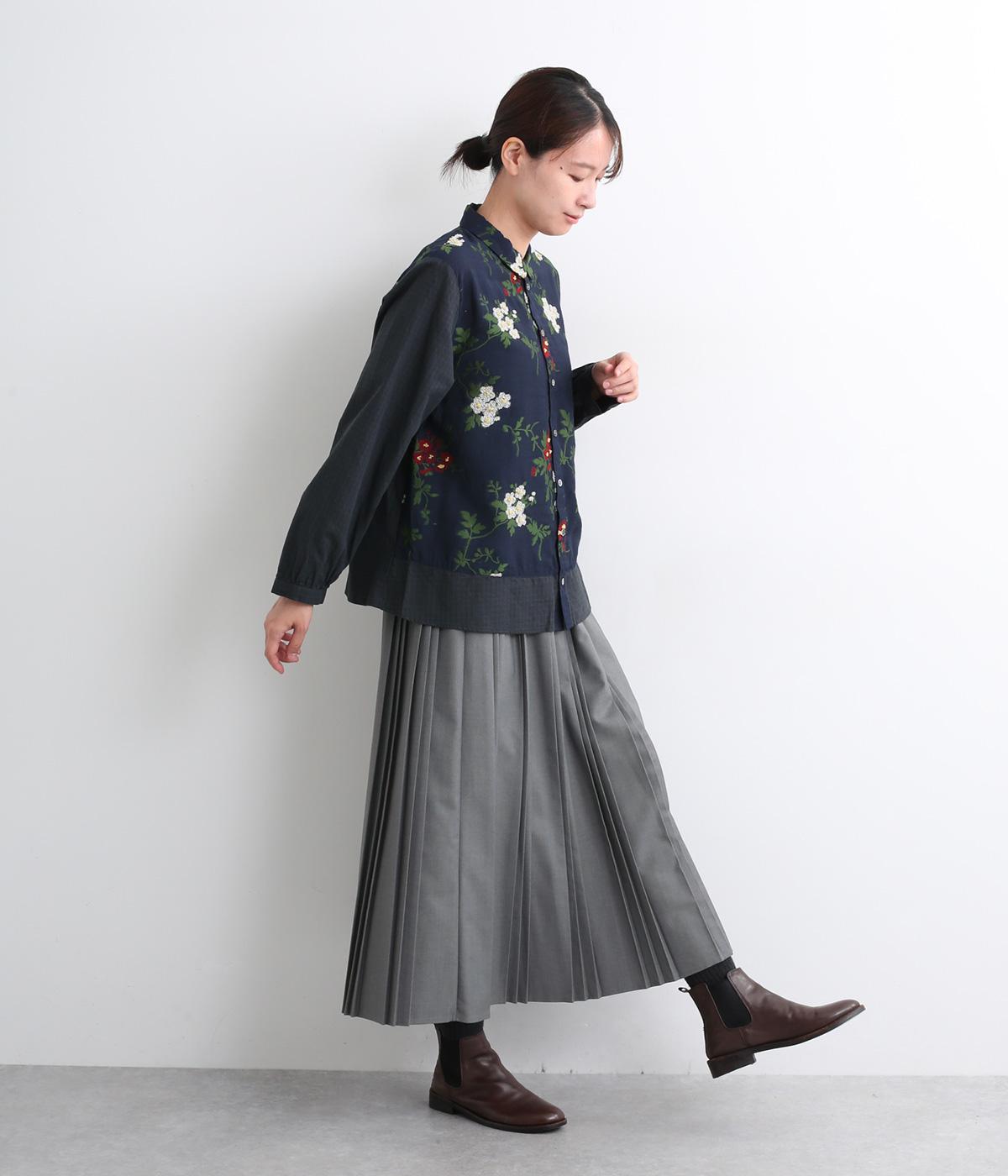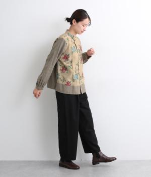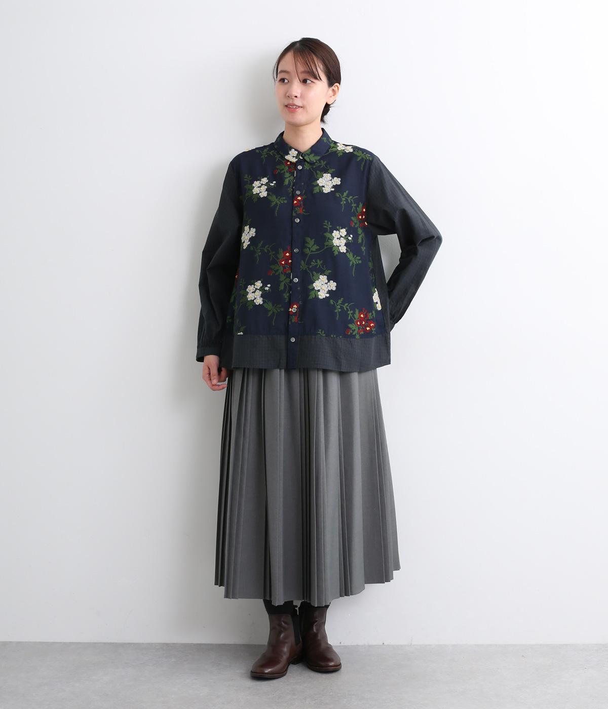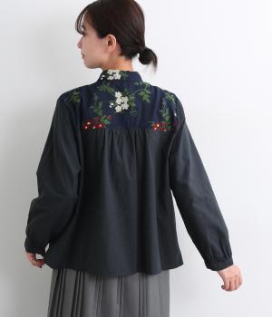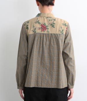 前見頃とヨークの花柄ジャカードが主役級なデザインシャツです。チェック地と切り替えることで、甘すぎず品よく仕上げています。シルエットは体をほどよく包み込むAライン。バックにもギャザー入りで、後ろ姿もきれいです。