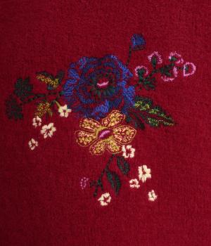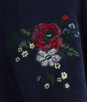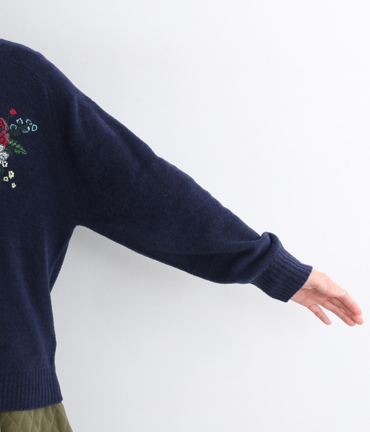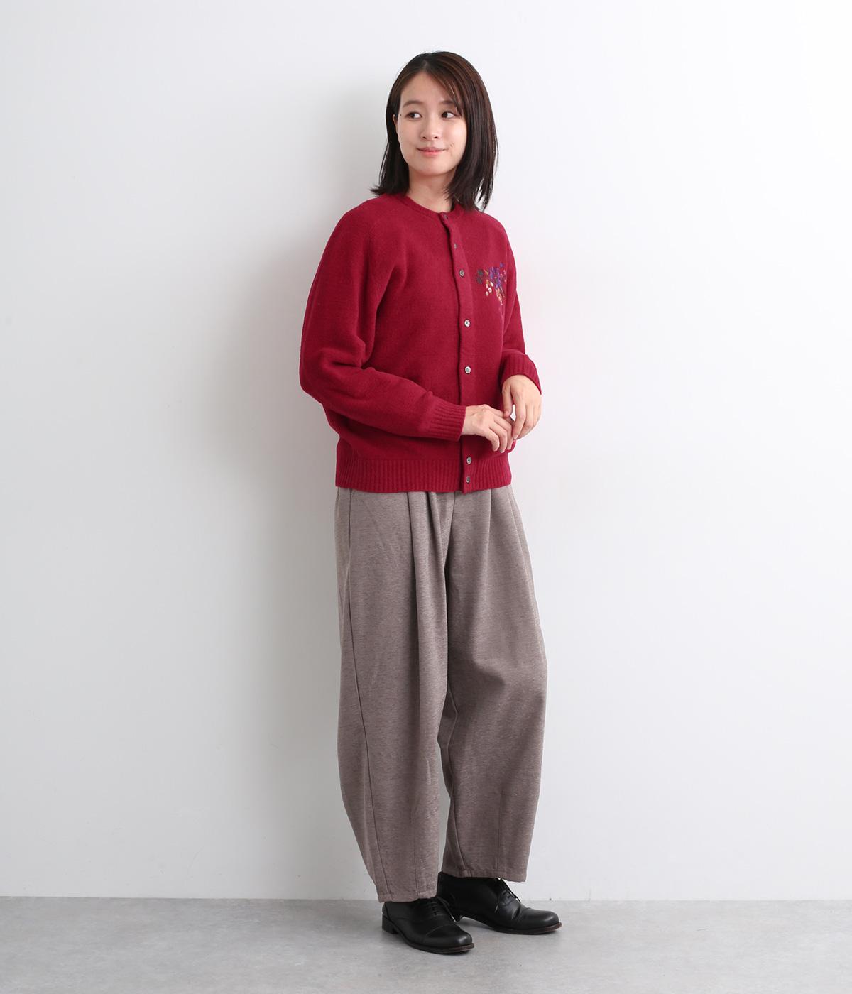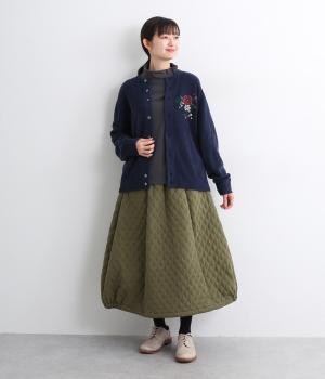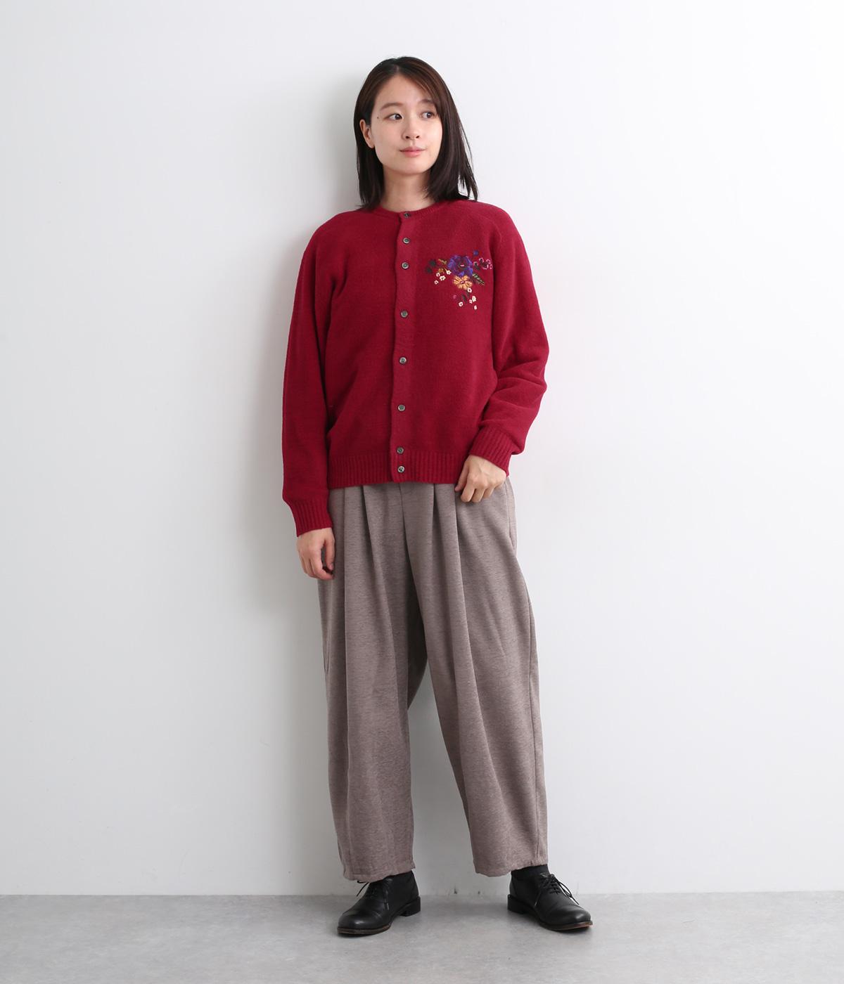 ベーシックなシルエットのカーディガンに、ヒメツバキと小花の刺しゅうをほどこしオリジナリティをプラス。適度にゆとりのある形で、前が開くのでさまざまなレイヤードを楽しめます。