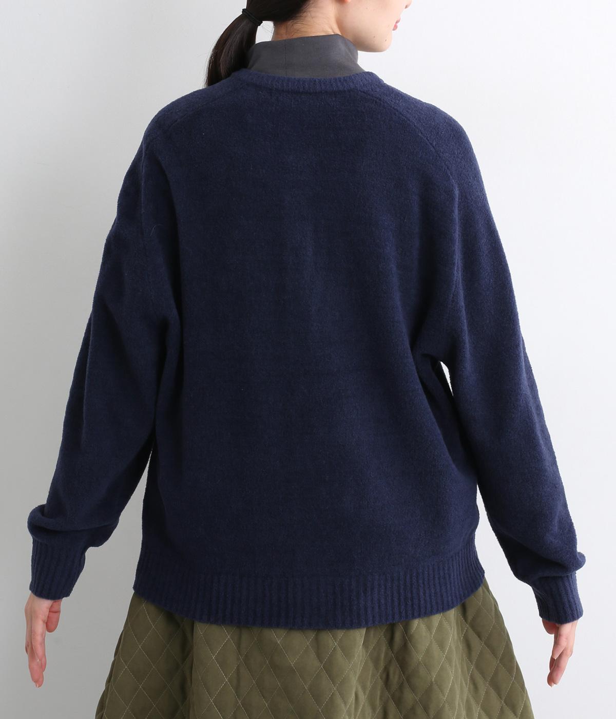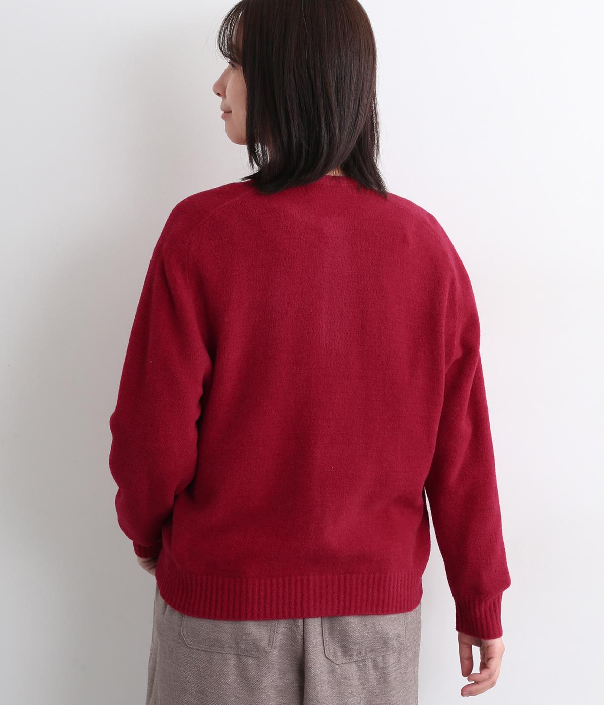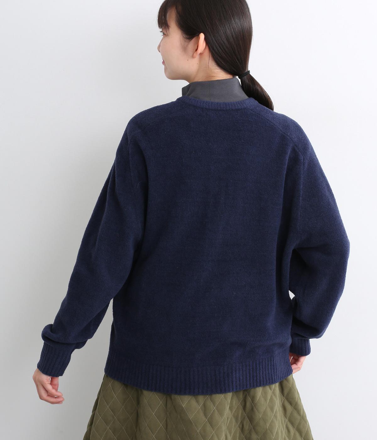 やわらかな風合いと立体感が特徴のウール混モールヤーンを使用しました。ベロアのようなしっとりとしたあたたかみと、ほどよい厚みでかさばりにくいのが魅力です。