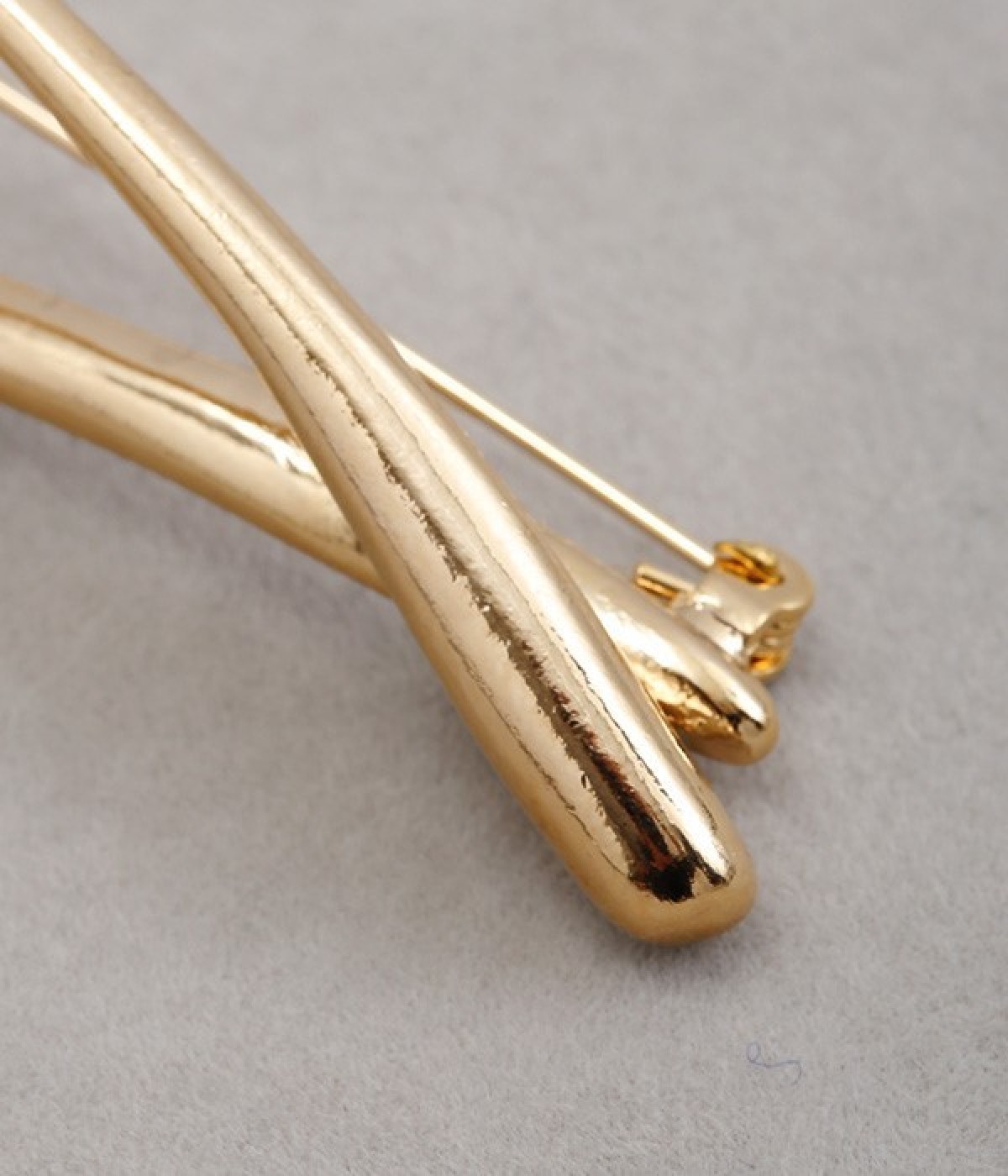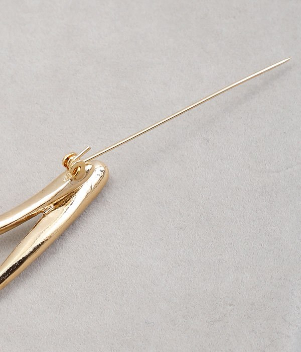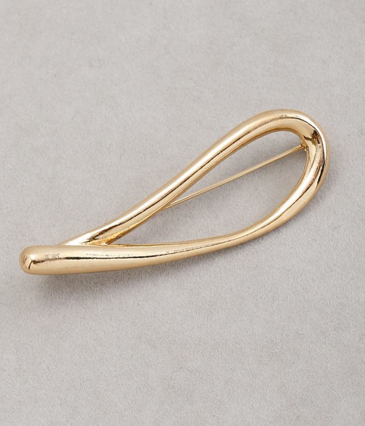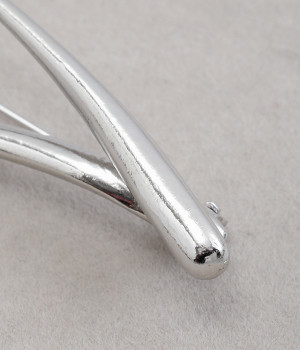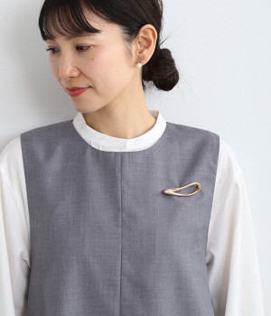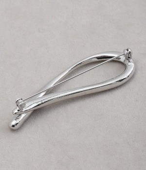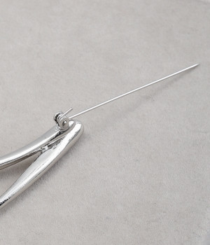 まるで水滴のようなカーブがスタイリッシュなブローチ。ブランドが作った独自の型を使用しているため、胸元に個性あふれるオリジナリティが宿ります。横につけたり縦につけたりと、お洋服の雰囲気に合わせた使い分けのアレンジがきくのも魅力。ややボリュームがあり光沢も携えているため、ほかにアクセサリーをつけずとも十分に装いを華やかに見せてくれます。