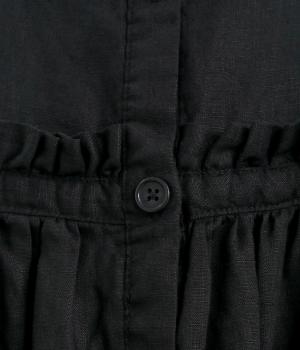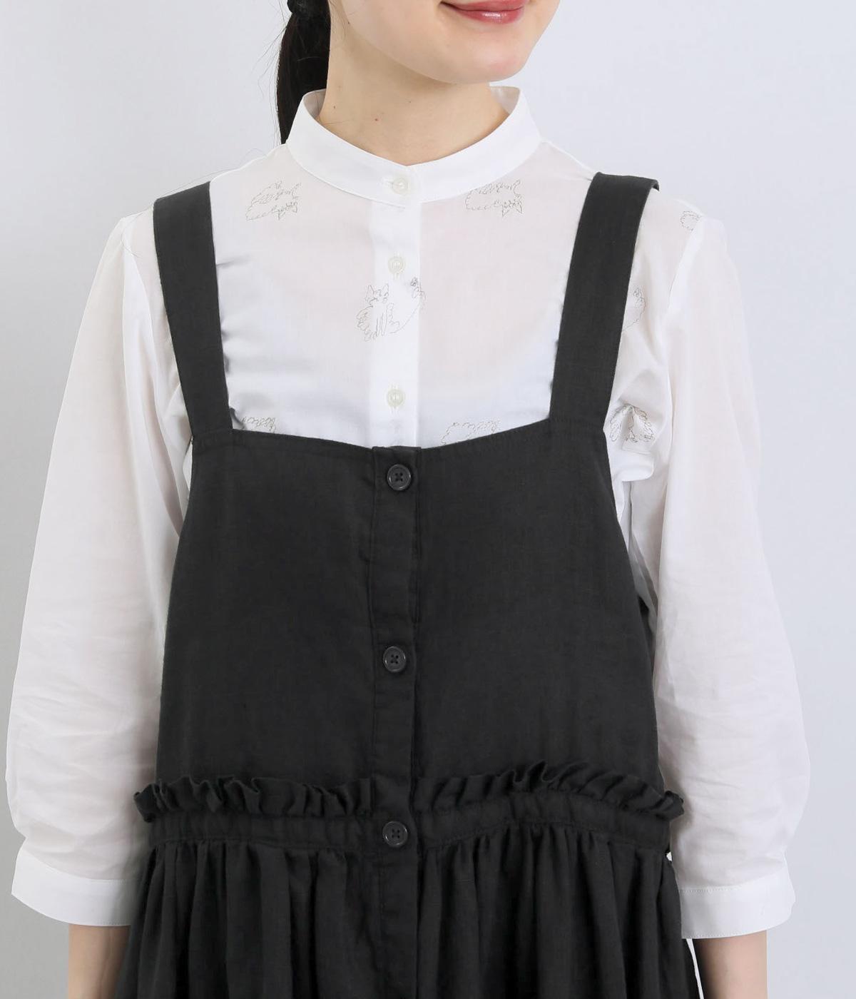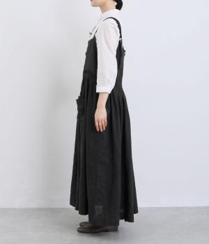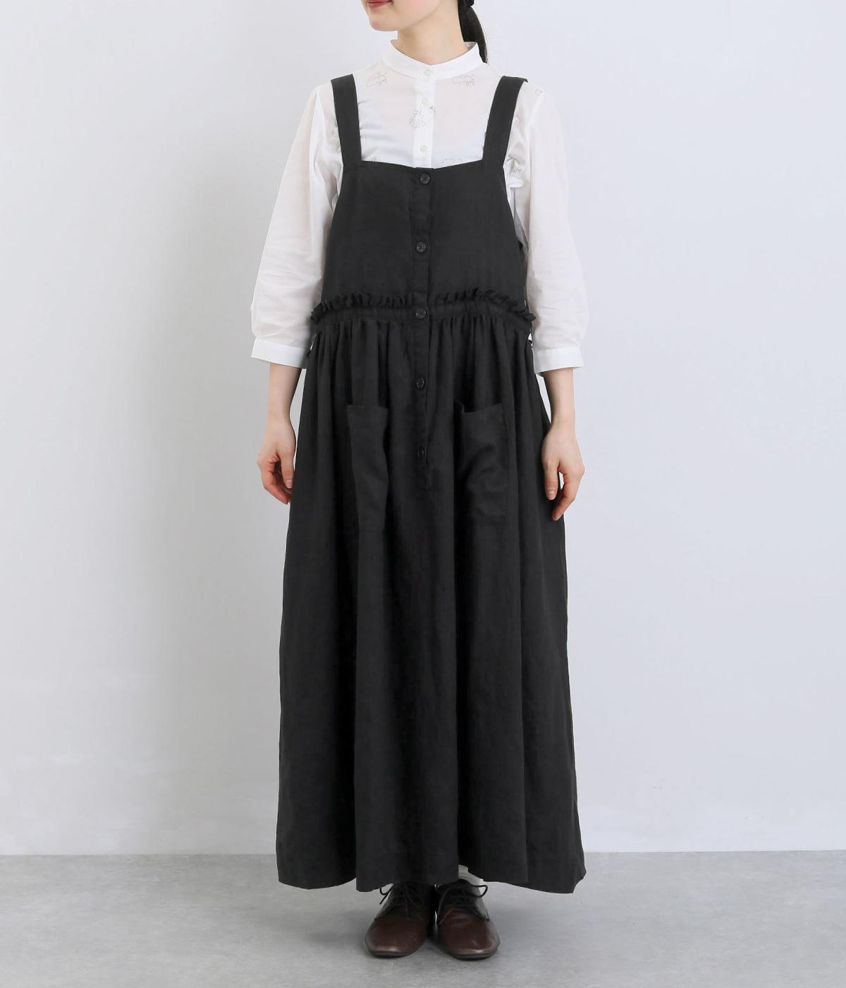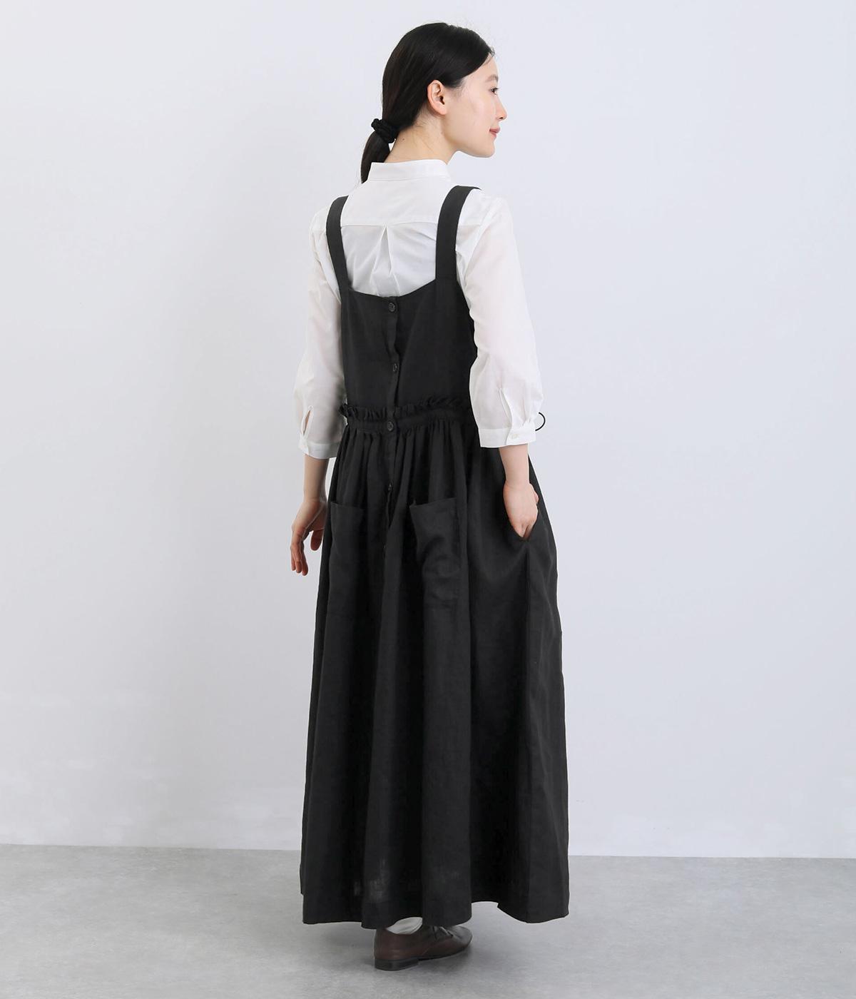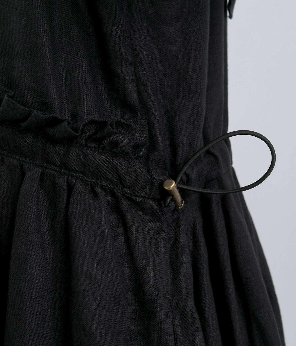 前後どちらでも着用できる、2way仕様のジャンパースカートです。ウエスト部分にフリルとギャザーをたっぷりと寄せ、やわらかな立体感のあるシルエットに仕上げました。両サイドのドローコードを絞ることでボリューム感を調整でき、表情の変化もたのしめます。