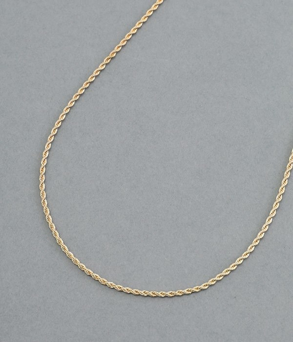 ツイストチェーンでデザインされた繊細なネックレス。光沢をおさえた上品なメッキを施していますが、角度によって輝きが異なるツイストチェーンならではの魅力に注目です。ワンカラーのうえにチャームのないミニマルなルックスは、カジュアルな装いと相性が良く普段使いにもぴったり。留め具にはカニカンフックを採用しています。