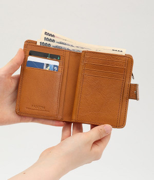 上質なイタリアンレザーを使った二つ折りの財布です。小さなバッグにも収まるコンパクトサイズながら、たっぷりと収納できる大容量がポイント。お札入れとコイン入れには2段になった仕切りがついているため見やすく、細かい仕分けもきれいにできます。すぐに取り出したいカードなどを収納できる外ポケット付き。使い込むほどにレザーが心地よく手になじみ、特別な愛着のわくアイテムです。