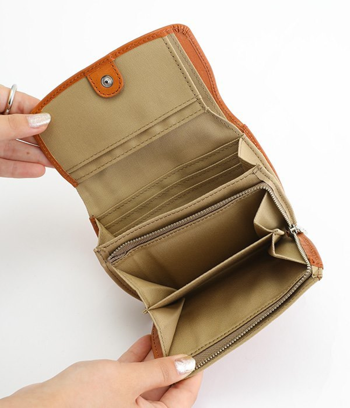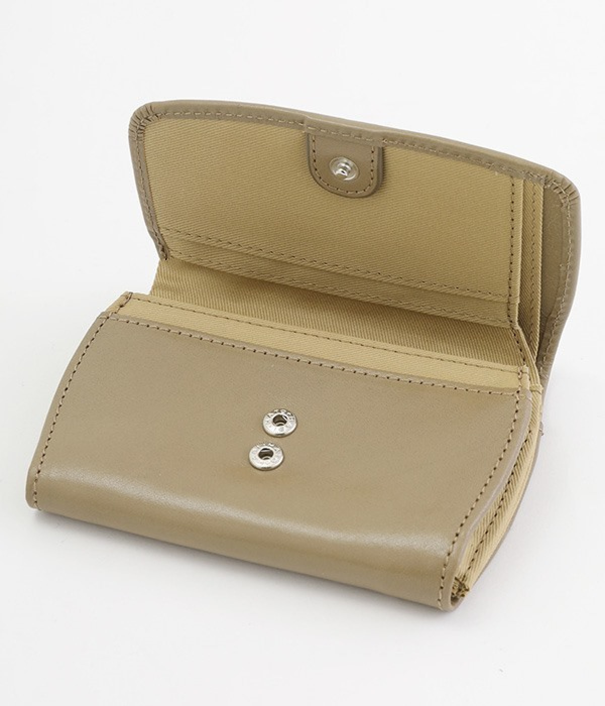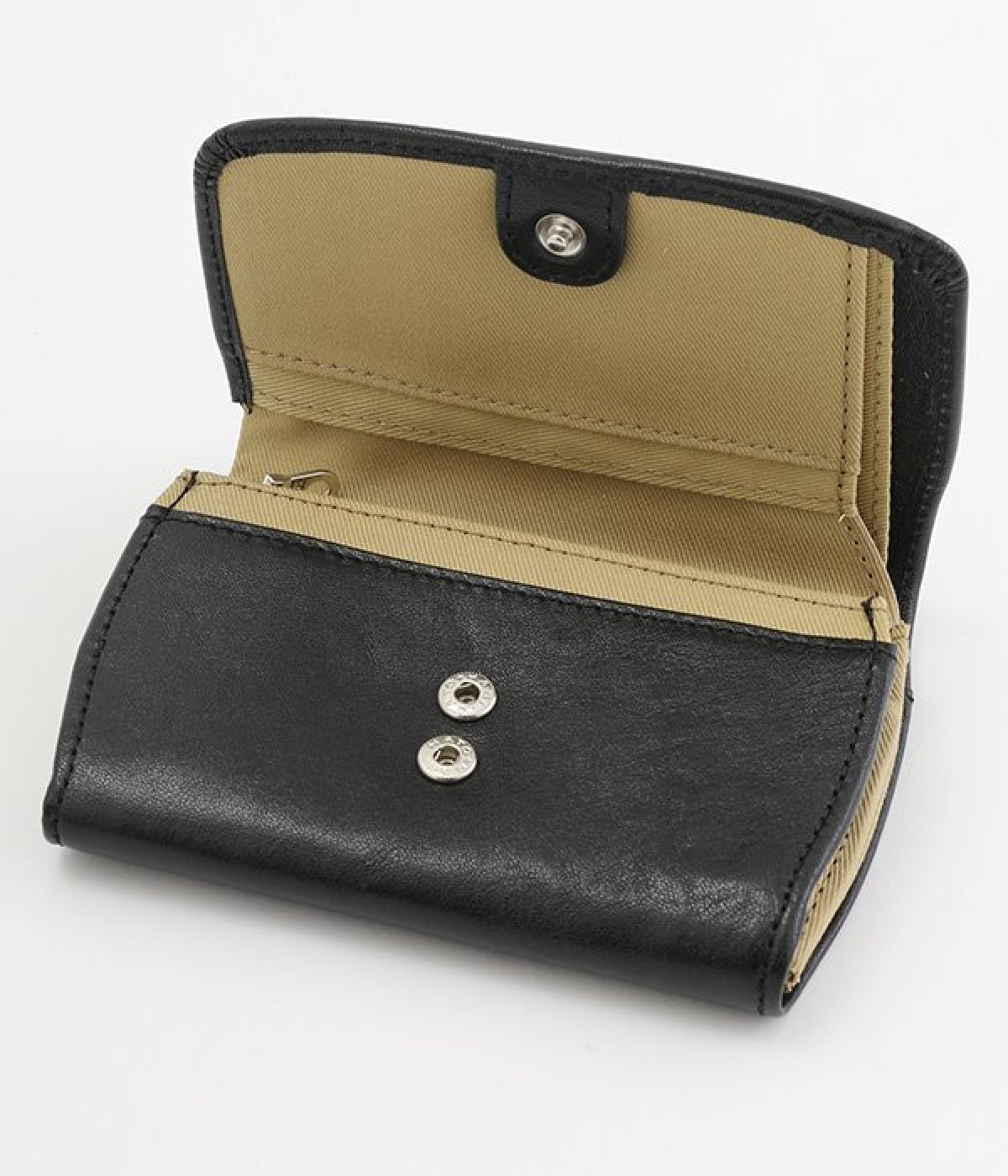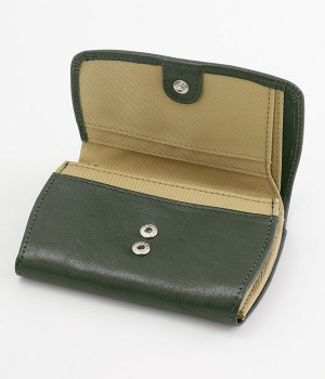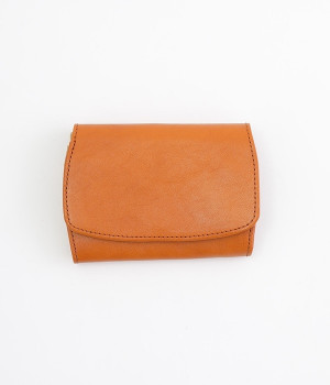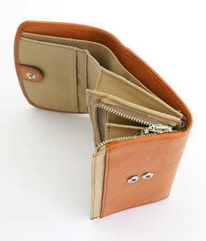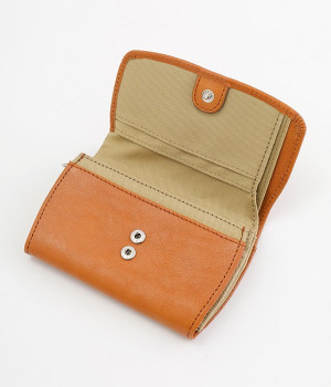 しなやかなカウレザーで仕立てた、フラップ開閉の二つ折り財布です。内側にはコットンキャンバス生地を採用し、ナチュラルな印象に仕上げました。お札入れと小銭入れは中にそれぞれ仕切りがあるので、紙幣や硬貨の整理整頓もスムーズ。カードポケットも豊富に備えており、コンパクトながら収納力に優れています。背面にもオープンポケットがついているため、すぐに取り出したいカードを入れておくのにおすすめです。
