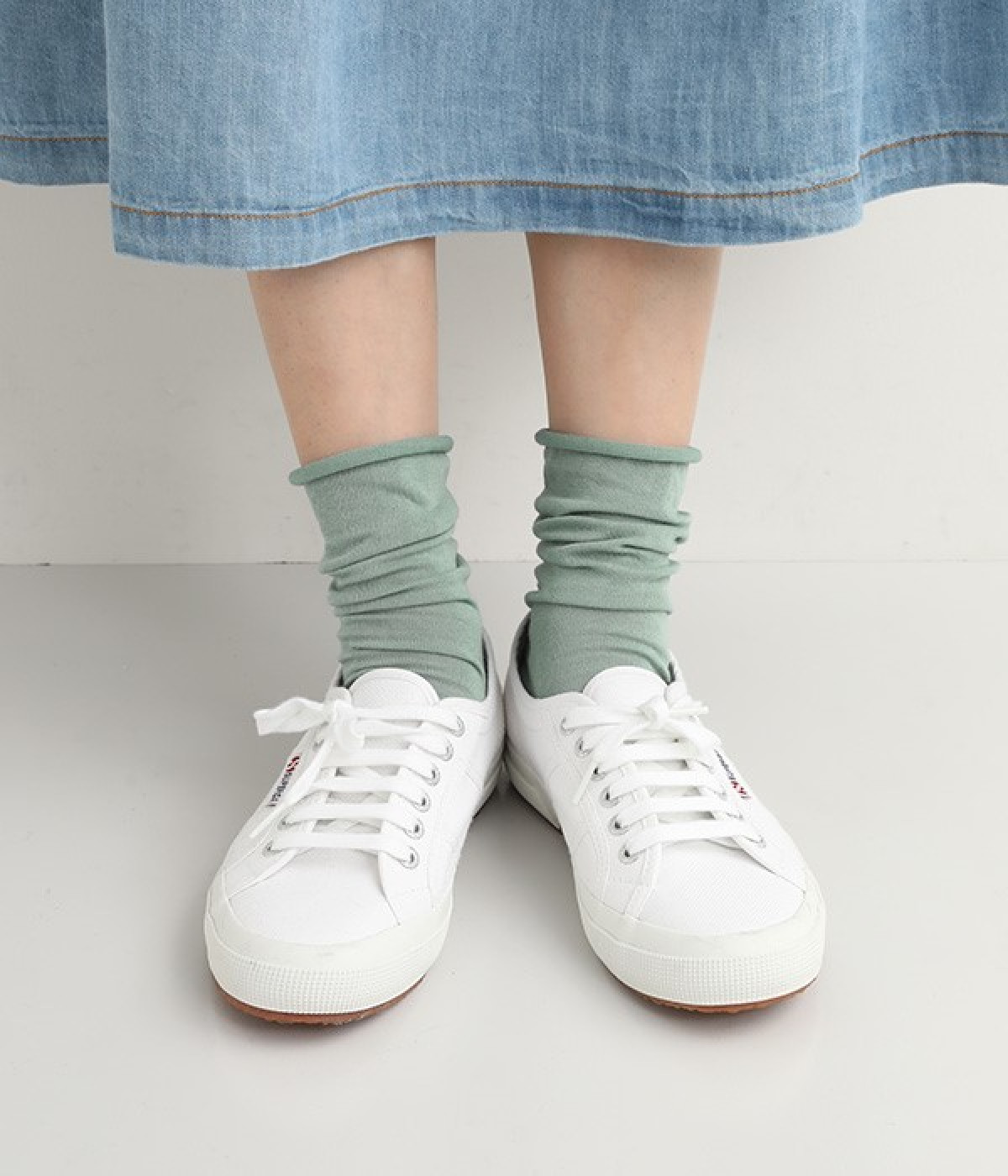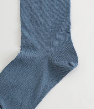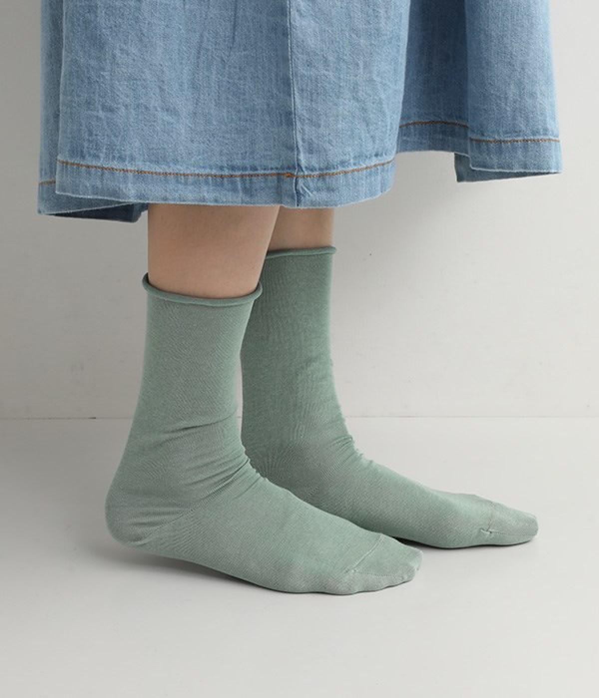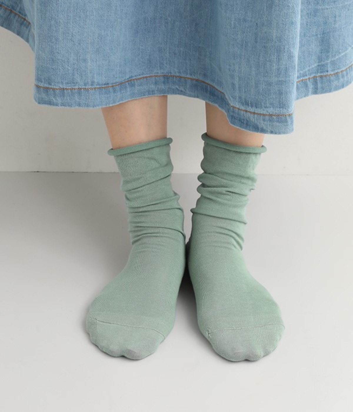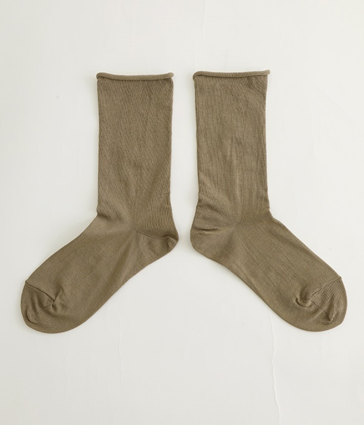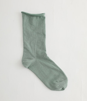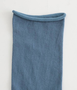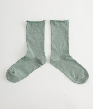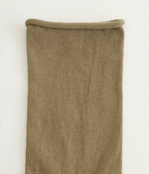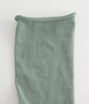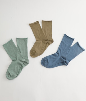 ほど良いハリ&シャリのある、くるくる薄手ソックスです。口ゴムのないカーリング仕様のため、締め付けられている感覚がないのがポイント。軽めの綿混素材は、通気性や吸水性にも優れています。汗ばむ季節にも蒸れにくいため、快適に着用できます。足元を軽やかな印象にしたいときにもおすすめ。