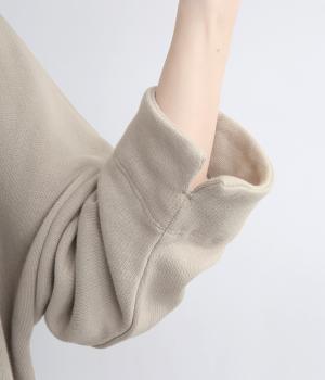 綿とレーヨンの柔らかさと落ち感に、リネンの清涼感とシルクのなめらかさが融合。パイル裏毛特有のふっくらとした肌ざわりと表情豊かな風合いが特徴の素材です。