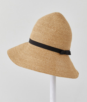 長時間かぶっていても疲れにくい軽量素材で仕立てました。シワも気になりにくいので、室内では折り畳んでバッグにしまったりと使い勝手も◎。フォルムをキープしやすいハリ感のある素材です。