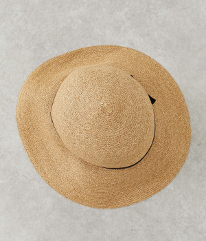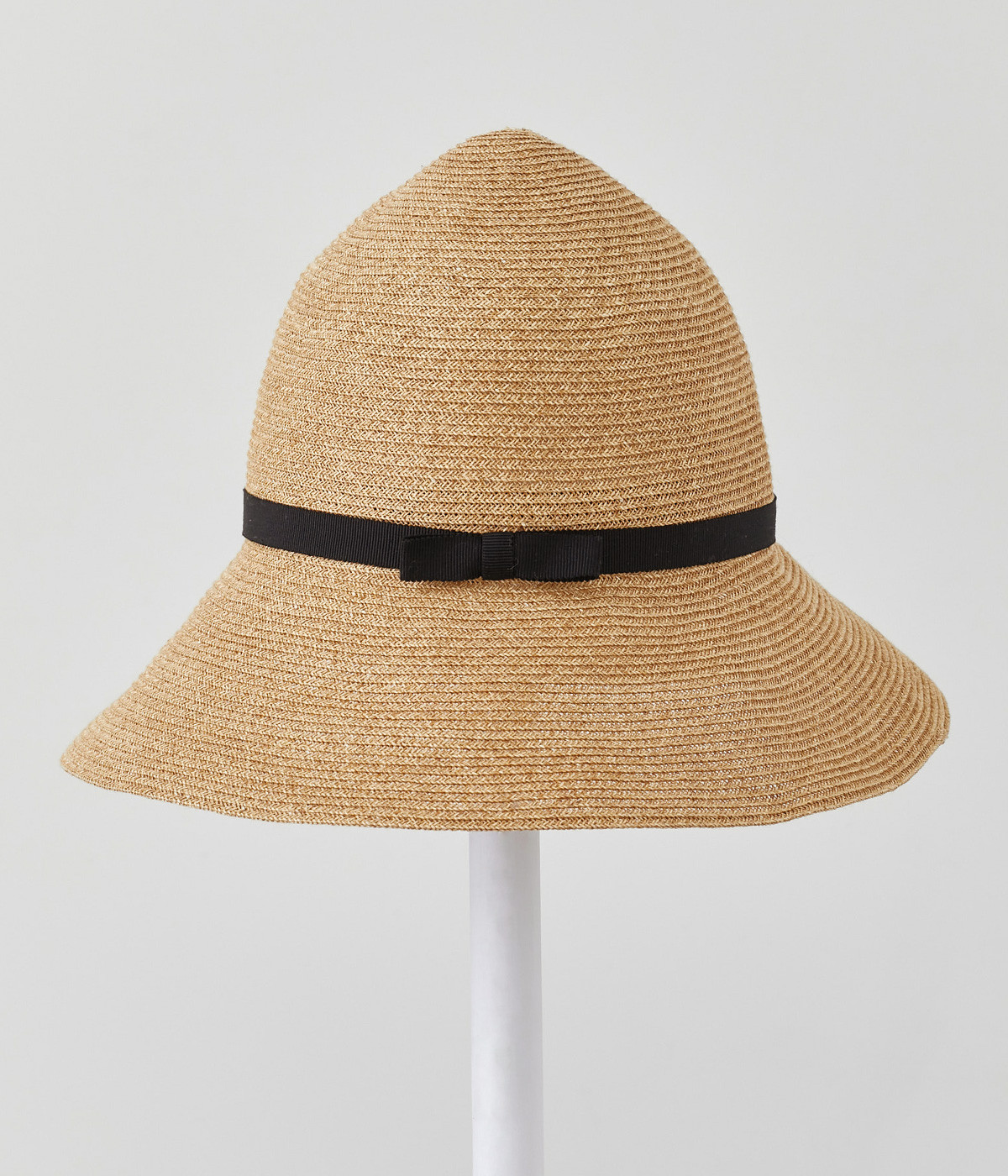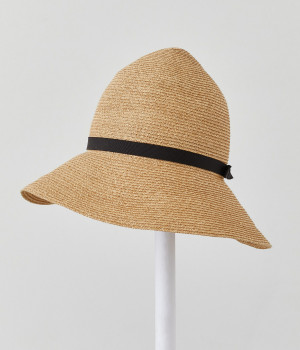 下に広がった幅広のブリムが日除けにも活躍するヒルサイドハットです。ちょこんと尖がったトップクラウンが特徴的で、へこませてかぶってもすてき。黒のグログランリボンが上品なポイントになっています。