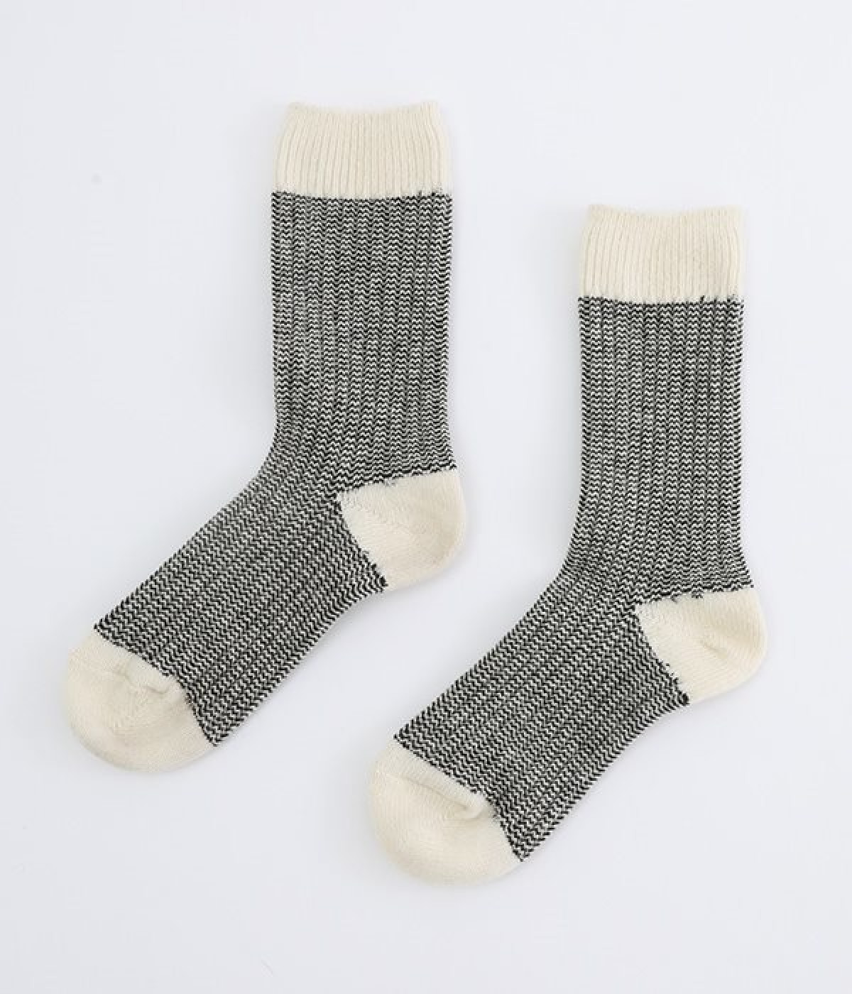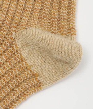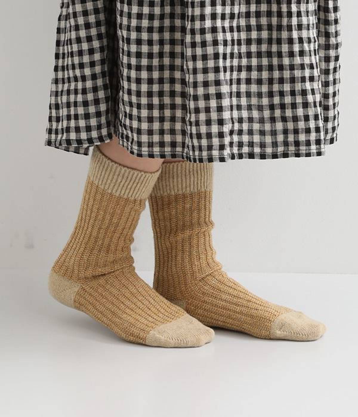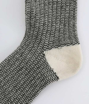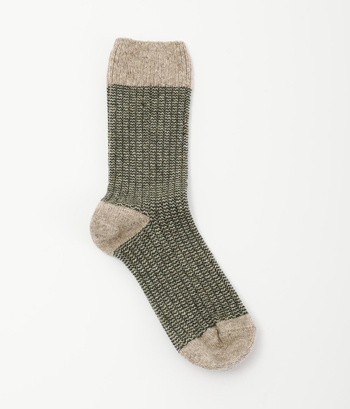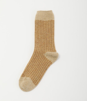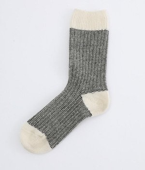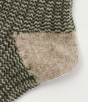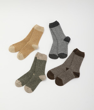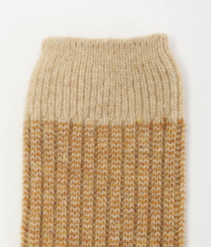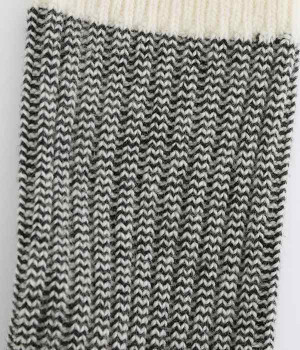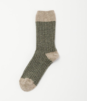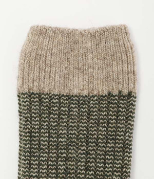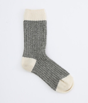 ウールの混率の高い糸で編んだ程よい肉感のあるジャガードソックスです。履き口、かかと、つま先を配色にしているのもポイントです。程よいフィット感のある、ふわっとした暖かな履き心地で冷えから足元を守ってくれます。ひざ下丈のスカートや、半端丈のパンツとの相性が良いミドル丈で使い勝手も抜群です。