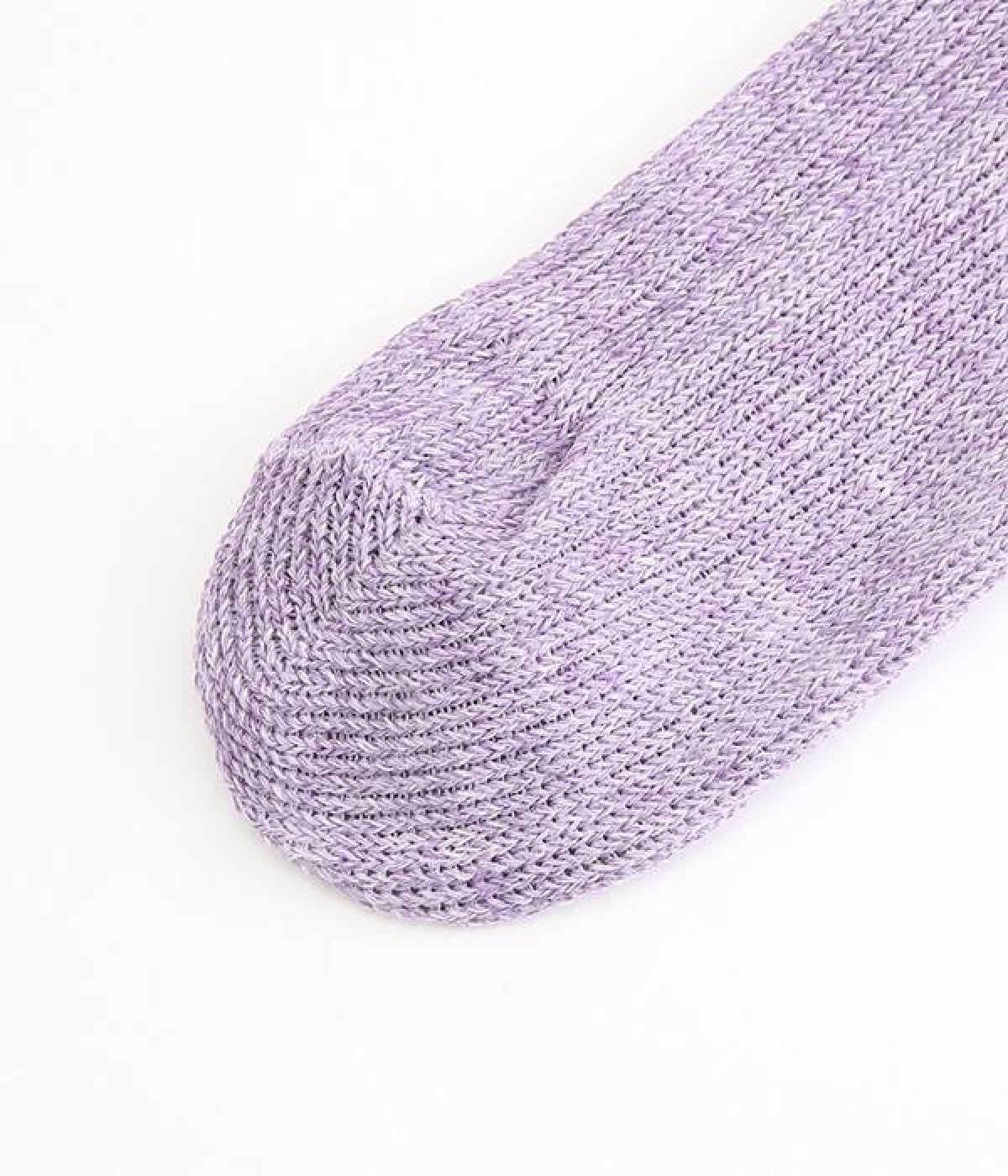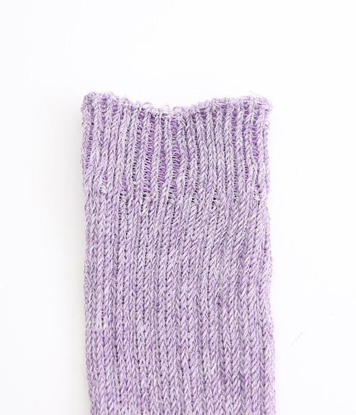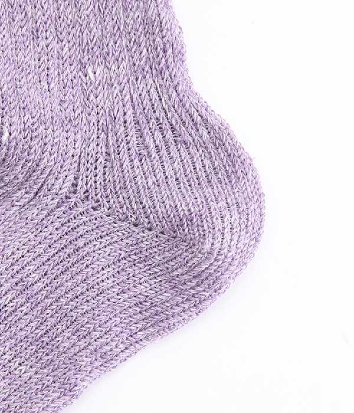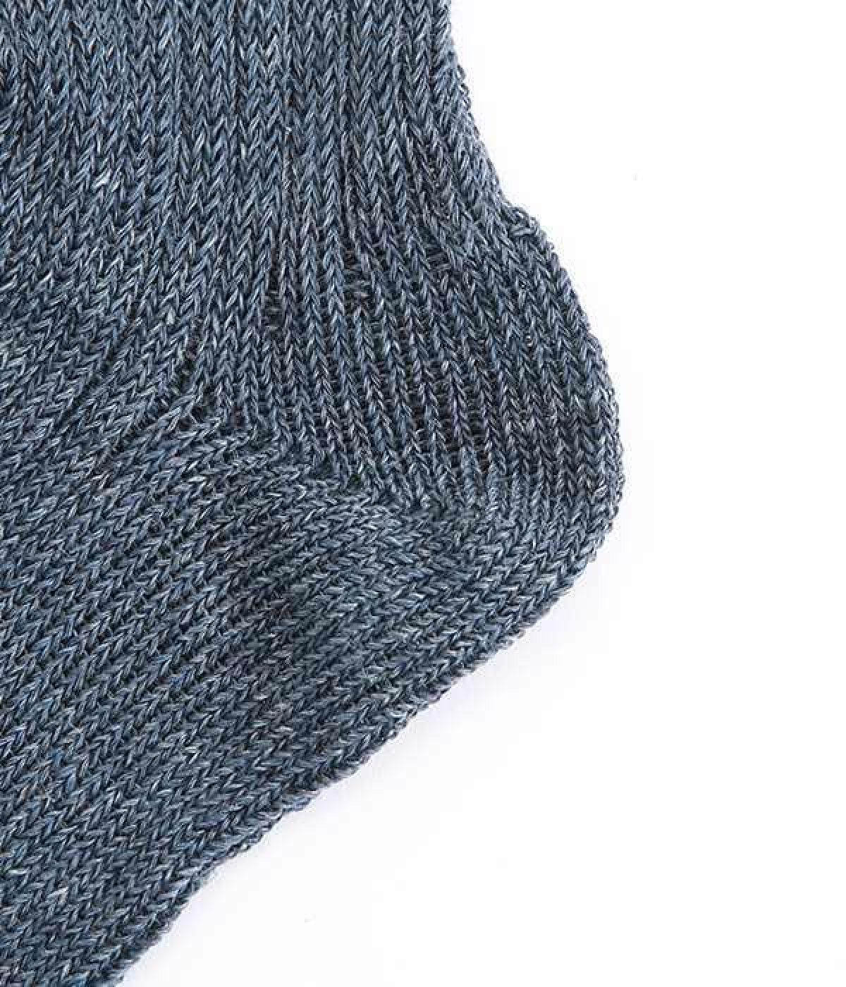 リネンの風合いを最大限に楽しめる、ブランドリネンを使用したソックスです。リネンはコットンと比べ3倍ほどの吸収力と高い発散性を持つ繊維なので、蒸れる感覚がほとんどありません。暑い時期にはぴったりのシャリ感と通気性はやみつきになります。また履けば履くほど足に馴染んで柔らかくなっていくのも嬉しいポイント。半年ほど履くとコットンのような風合いになりつつも、吸収性と発散性はそのまま。長く愛用したいアイテムです。