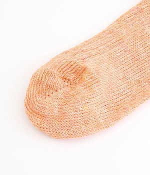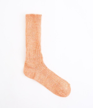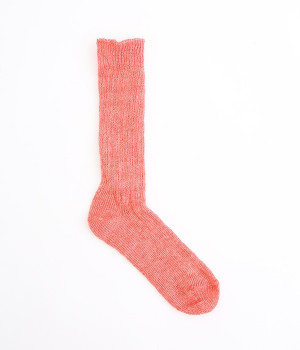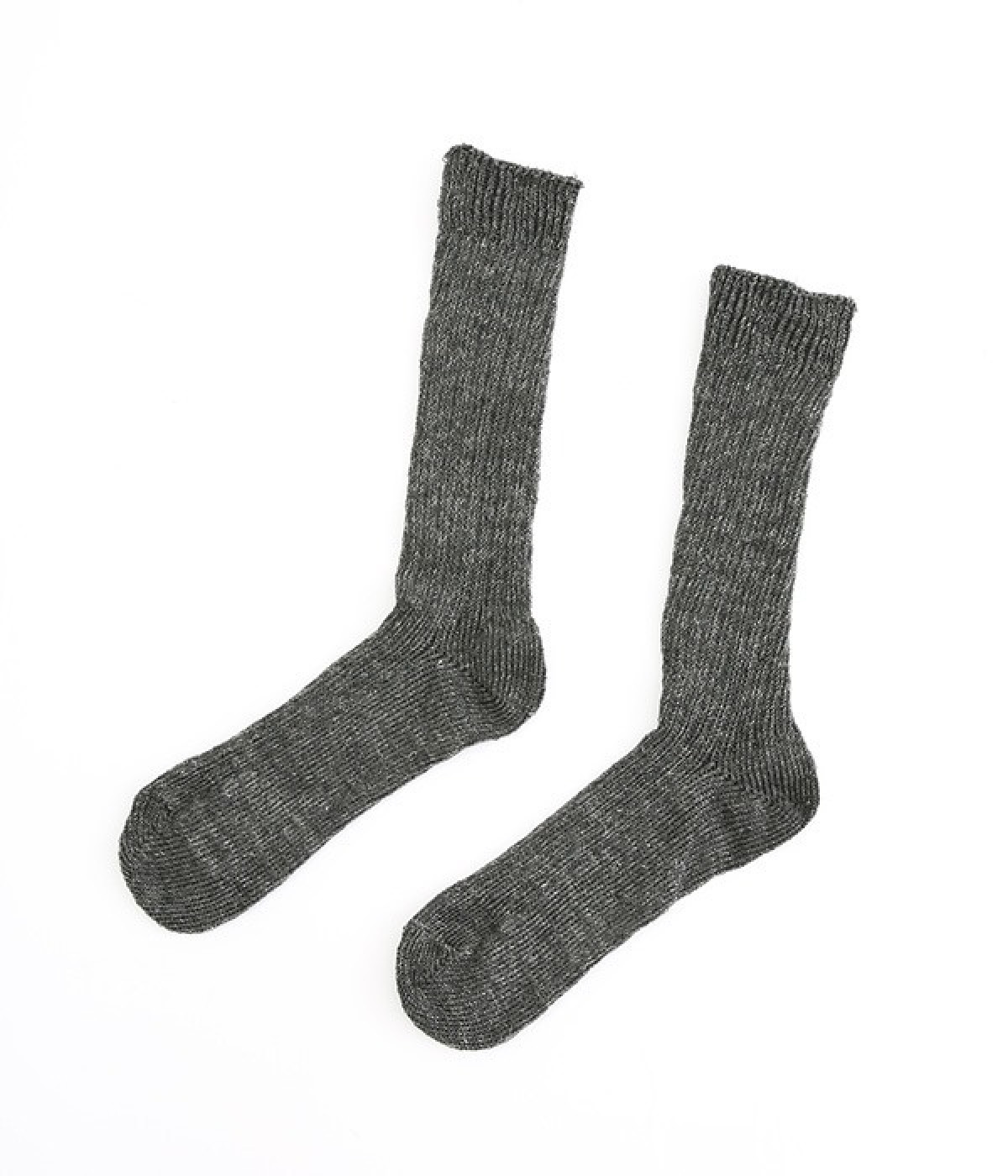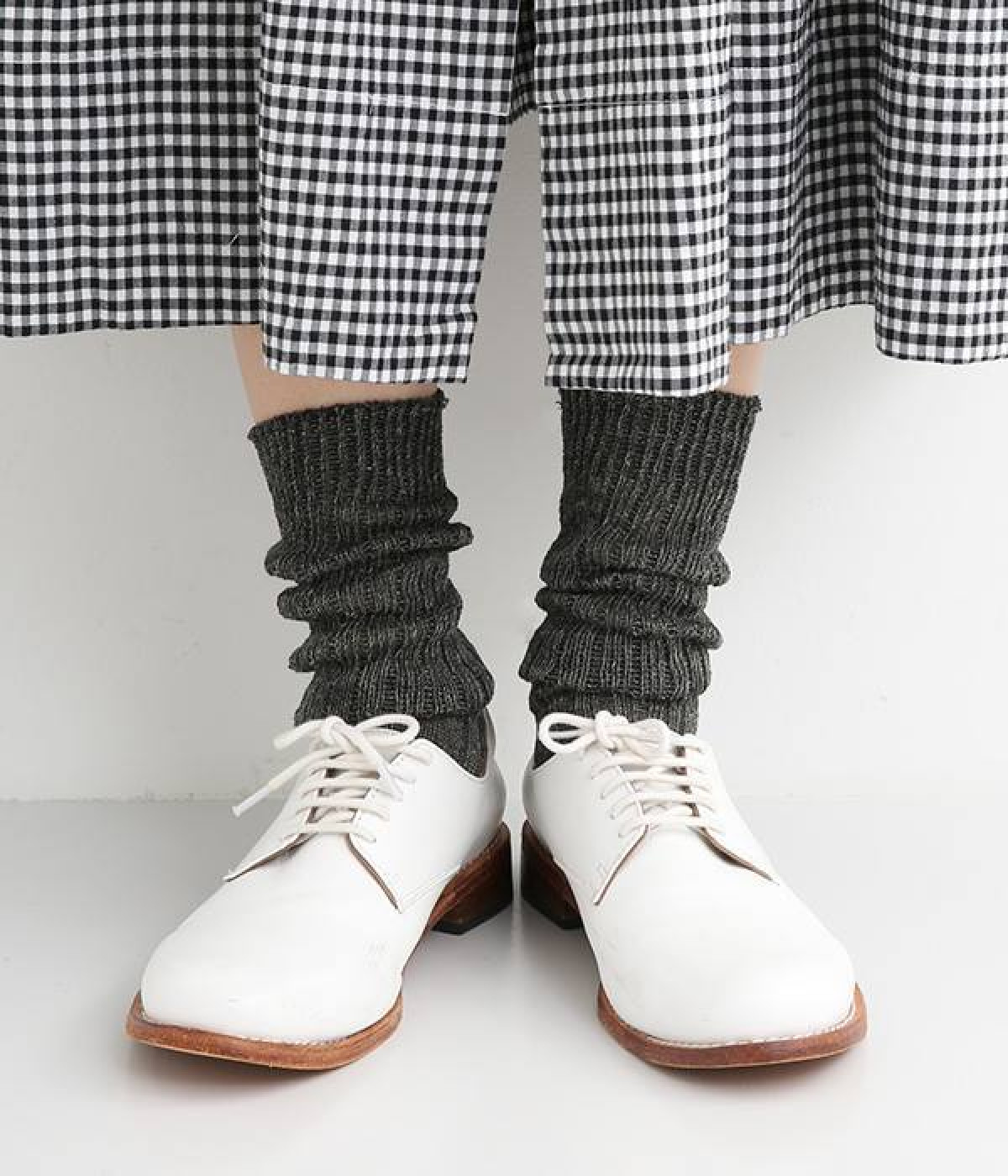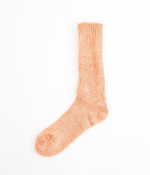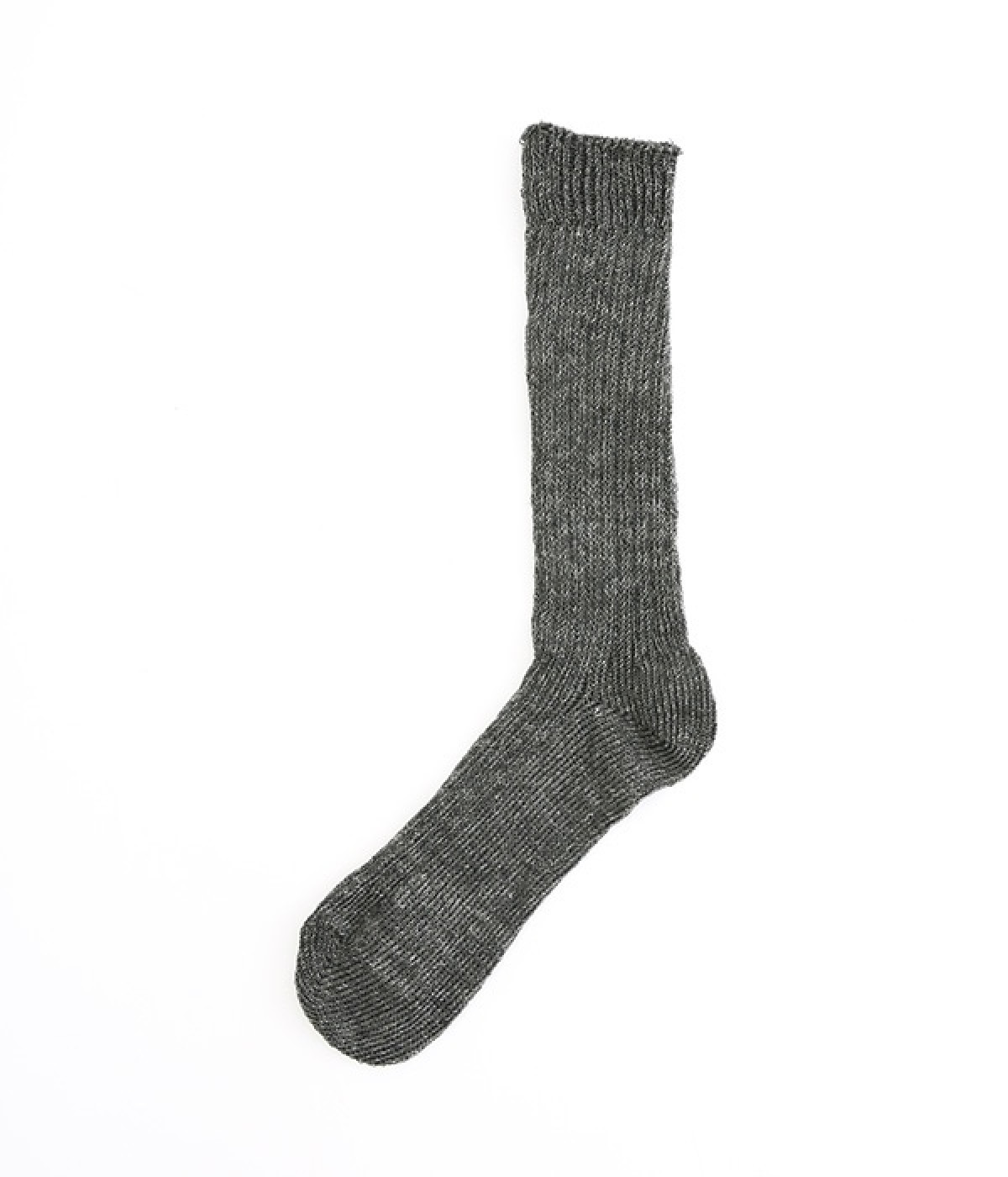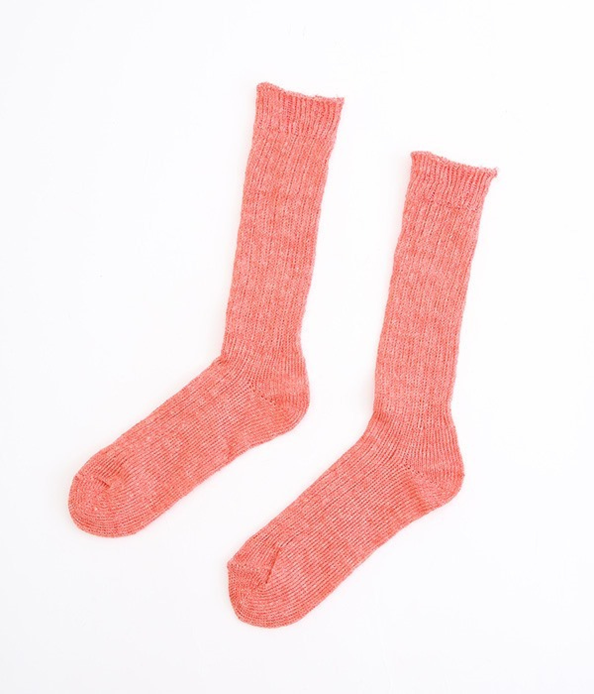 リネンの風合いを最大限に楽しめる、ブランドリネンを使用したソックスです。リネンはコットンと比べ3倍ほどの吸収力と高い発散性を持つ繊維なので、蒸れる感覚がほとんどありません。暑い時期にはぴったりのシャリ感と通気性はやみつきになります。また履けば履くほど足に馴染んで柔らかくなっていくのも嬉しいポイント。半年ほど履くとコットンのような風合いになりつつも、吸収性と発散性はそのまま。長く愛用したいアイテムです。