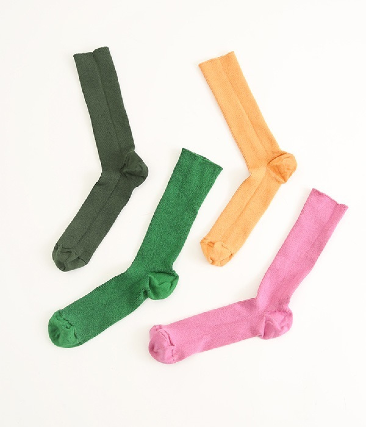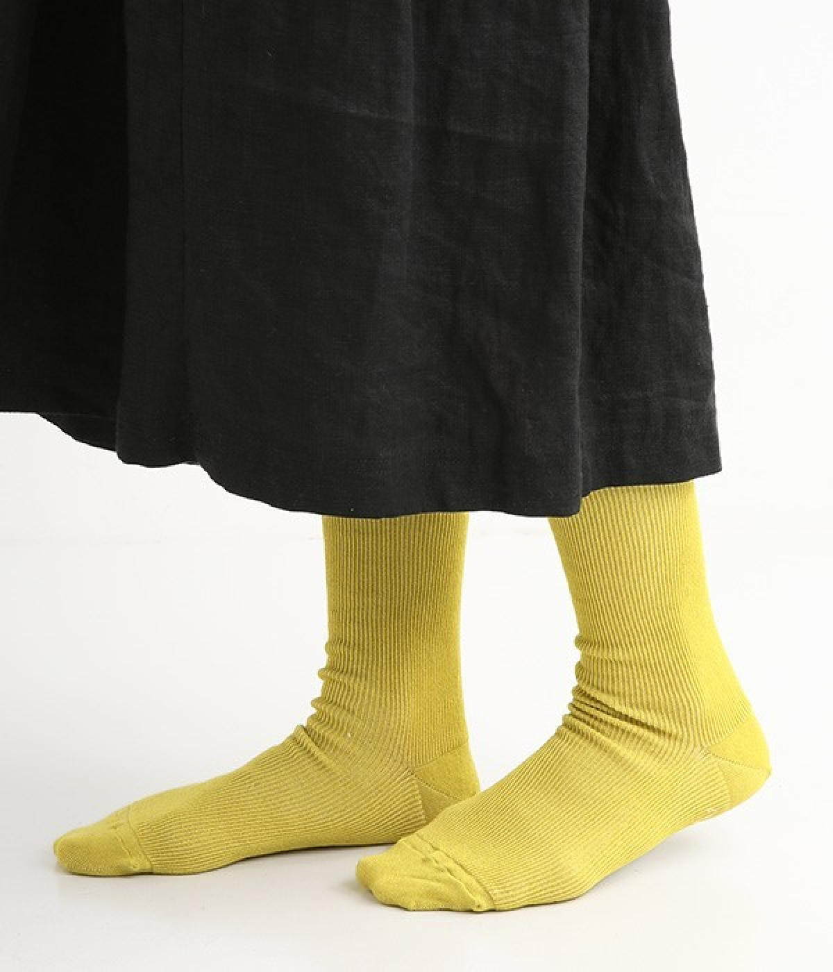 世界三大コットンの中で、最も希少とされるエジプトコットンを使用したソックスです。程よく光沢がある美しい風合いや、足に気持ちよくフィットする締め付け感のない快適な履き心地が魅力。キレイな色合いが足元に映え、コーディネートのアクセントにもなります。膝下丈スカートやワンピース、クロップドパンツと相性の良いミドル丈でデイリー使いにぴったりです。