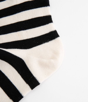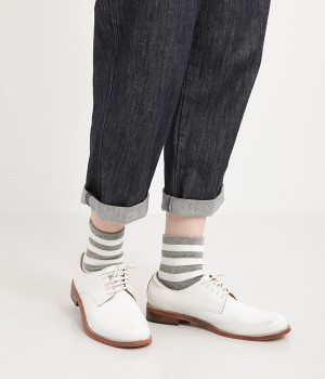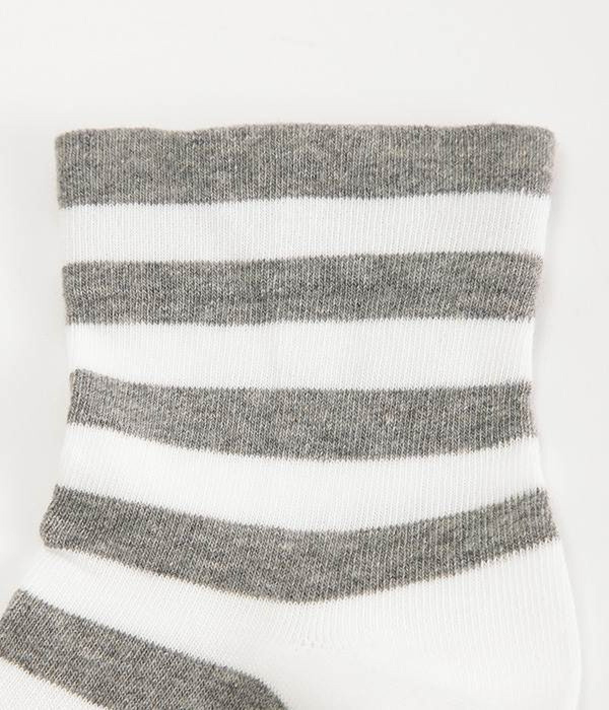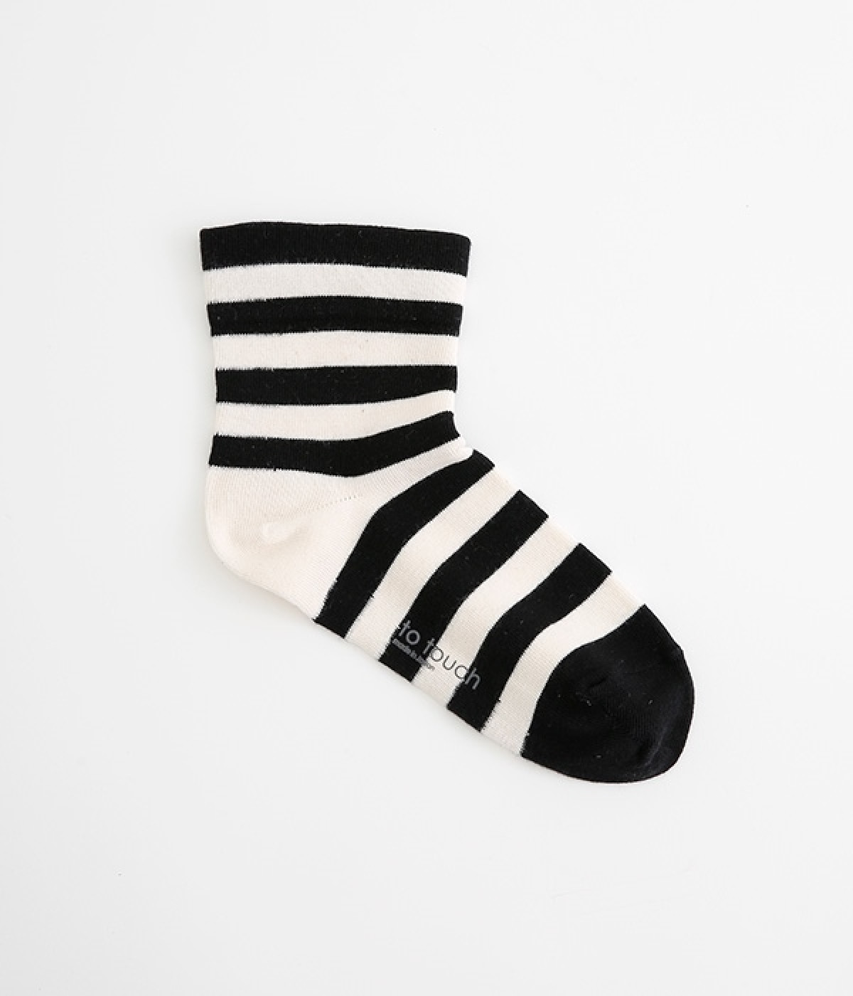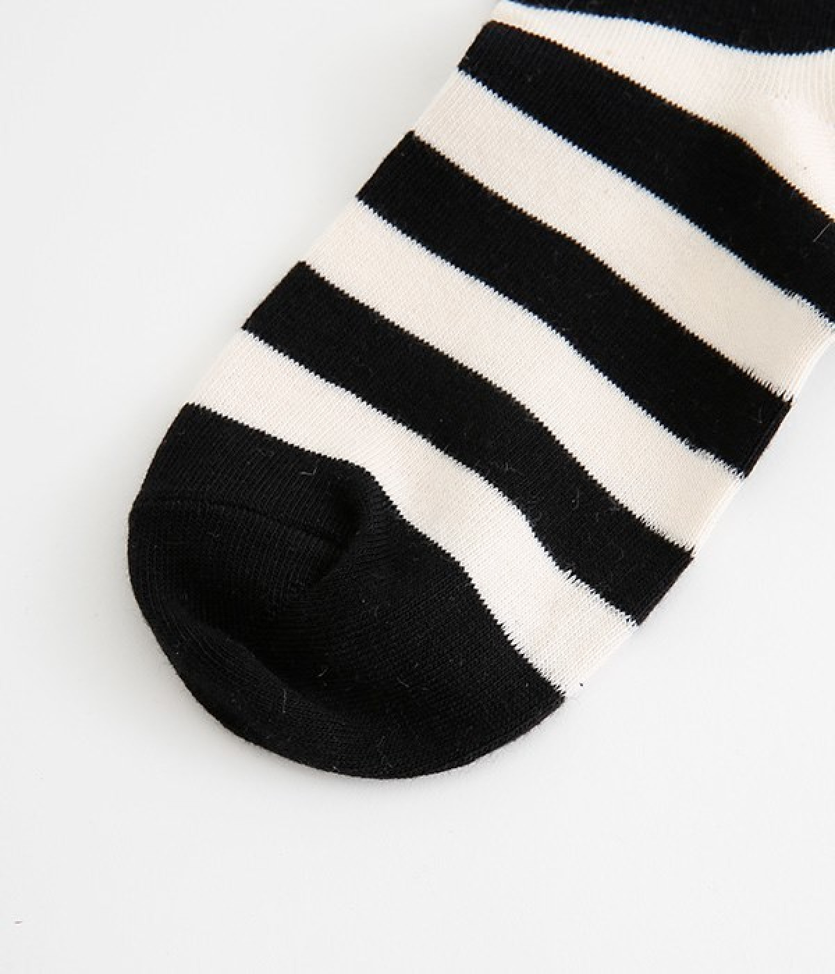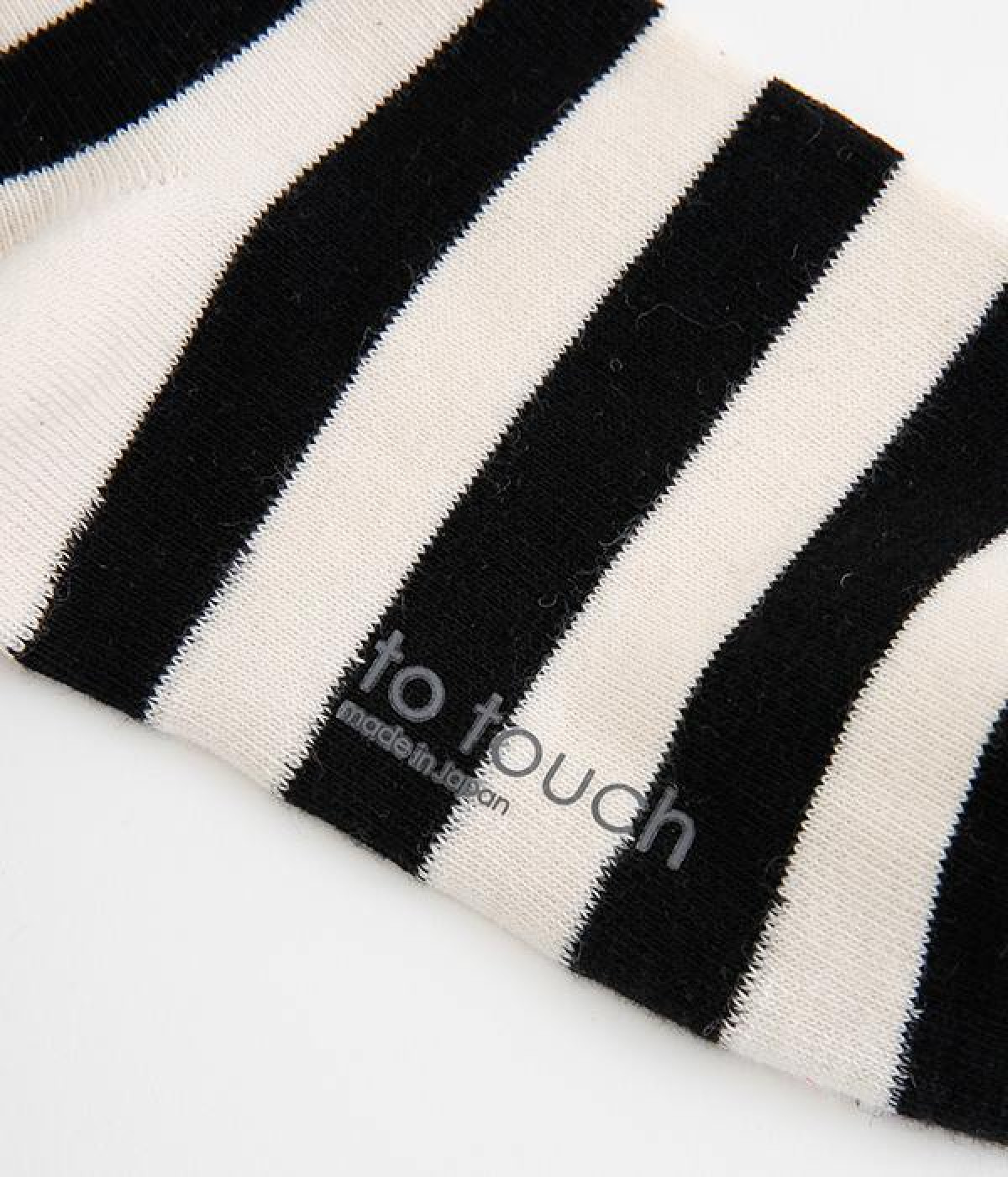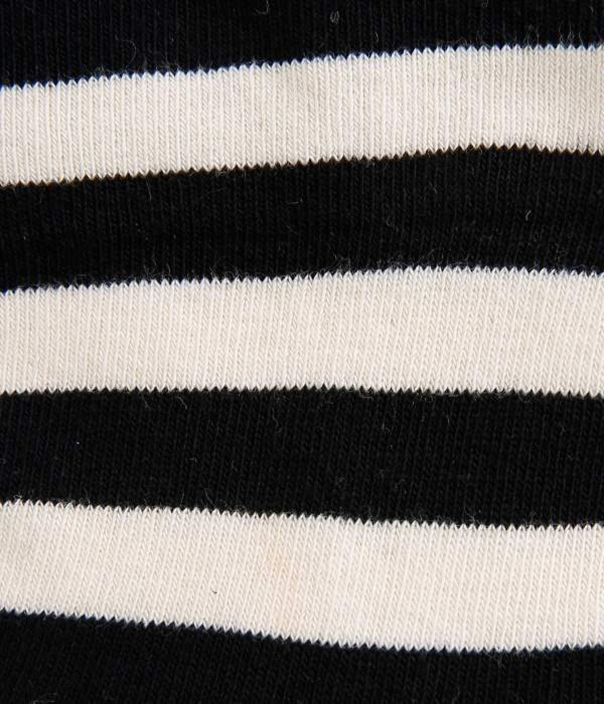 奈良の靴下産地の中心地である広陵町の老舗が作る、丈夫ではき心地の良いソックスのファクトリーブランド。オリジナルのボーダー柄を編みたてた少し短めの丈はコーディネートのさりげないアクセントにぴったり。スカートはもちろんシンプルなパンツスタイルに合わせても素敵なアイテムです。