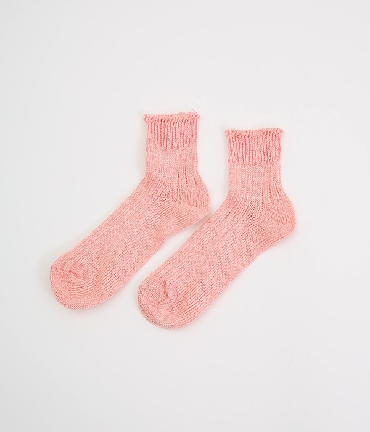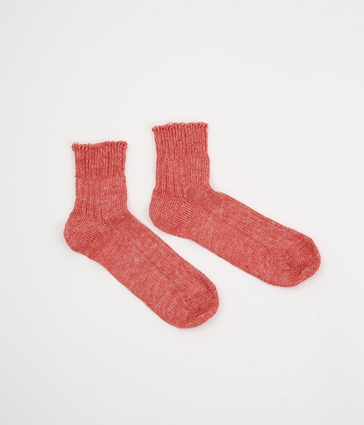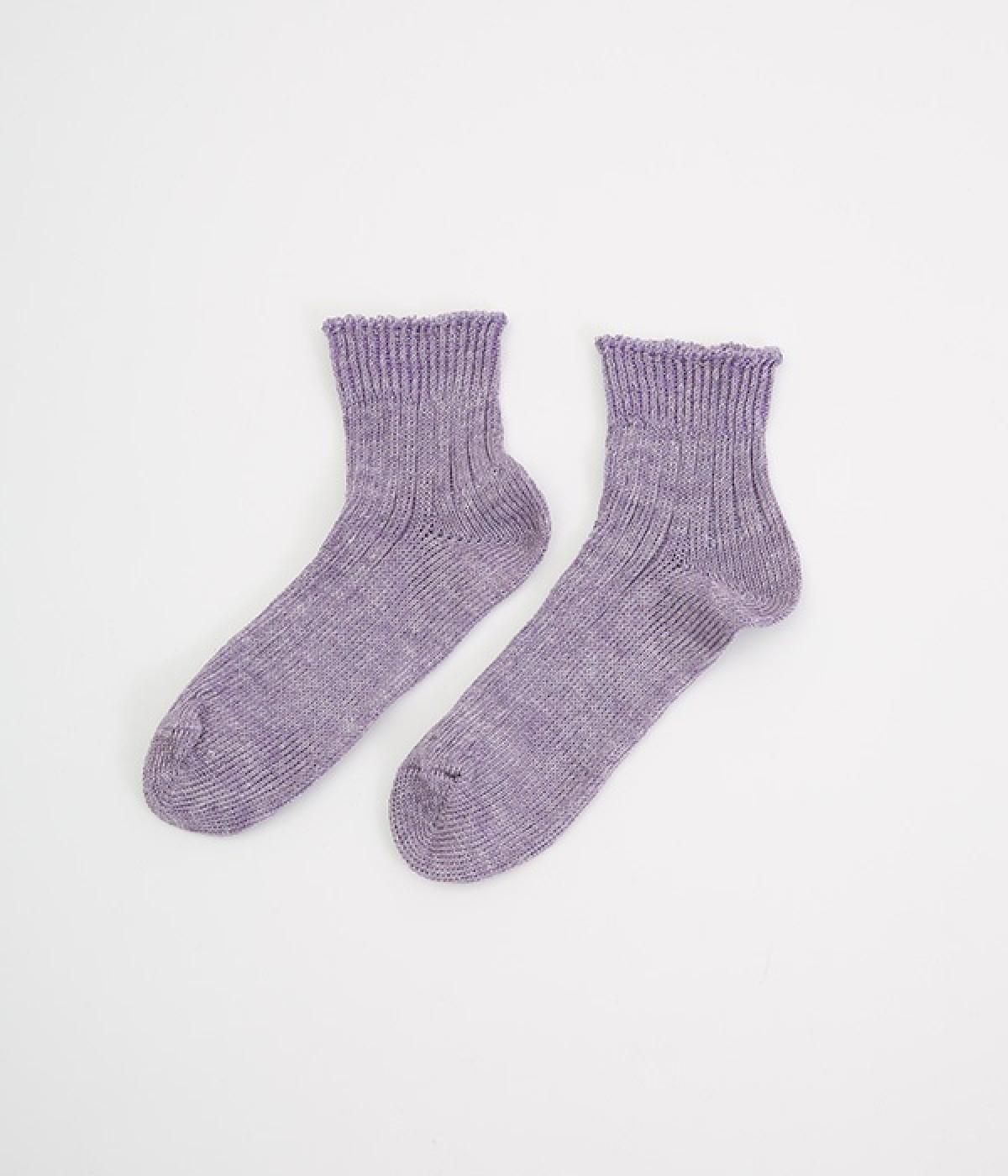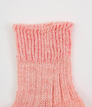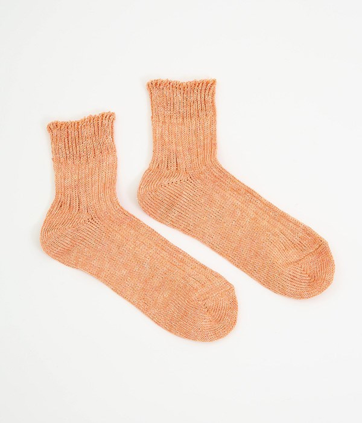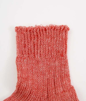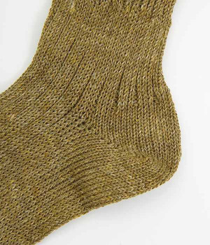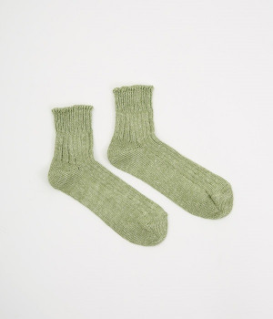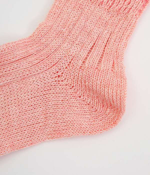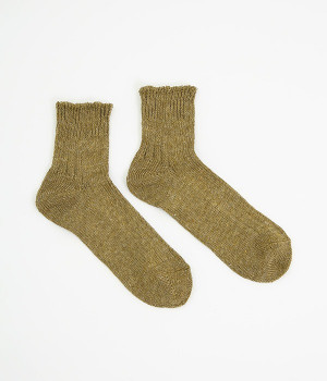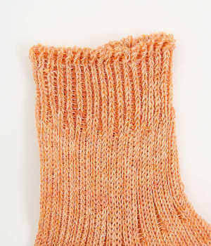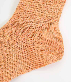 リネン糸をざっくりと編み立てた、透け感のある程よい厚みのソックスです。くるぶしが隠れる短い丈で、スニーカーやサボ、サンダルなどと相性良く合わせることができます。リネンのシャリ感が気持ちよく、蒸れにくい質感なのでこれからの暑い季節にぴったりな一足に。明るい色味でパッと足元にアクセントを添えてくれます。