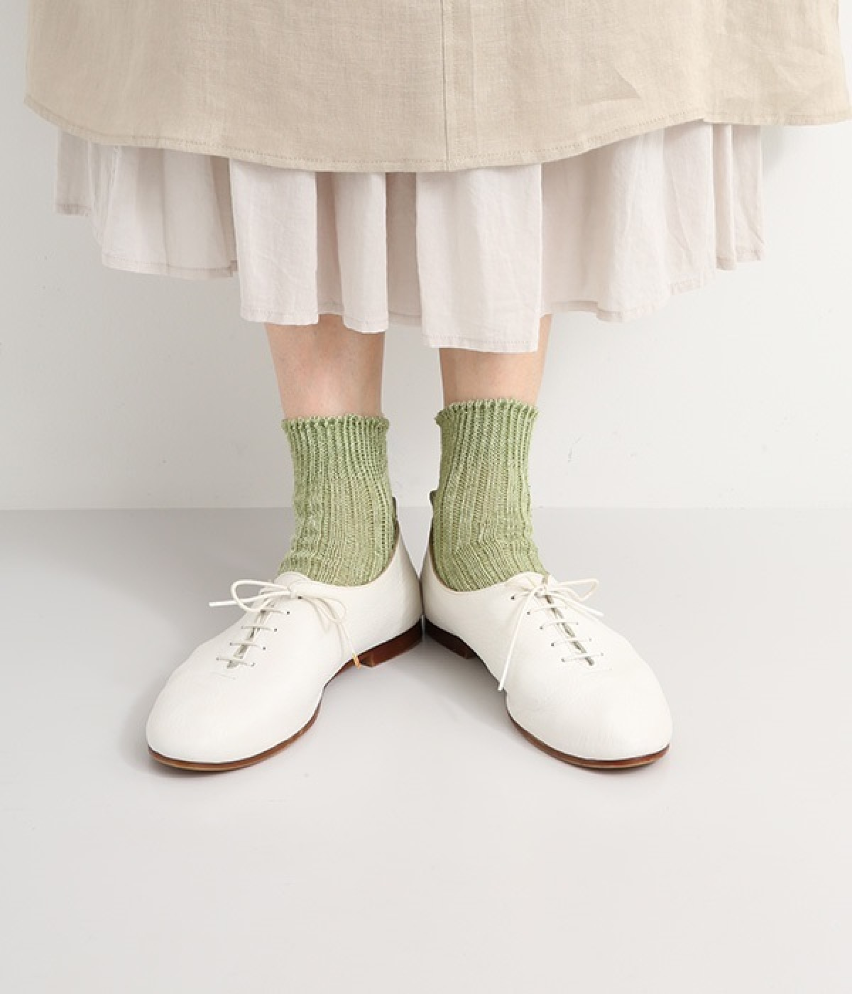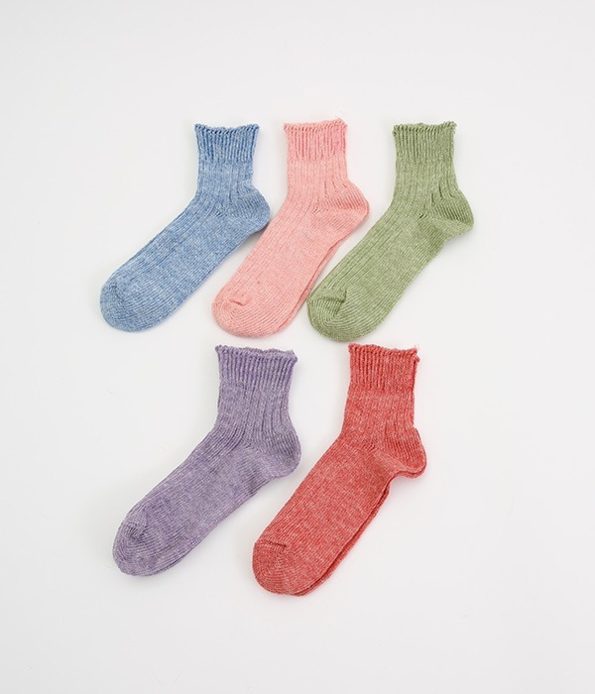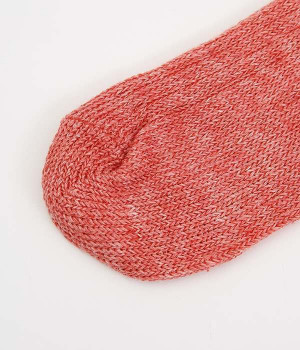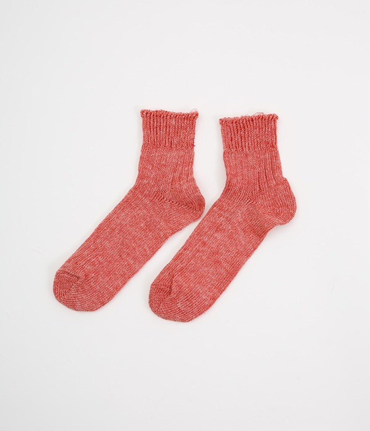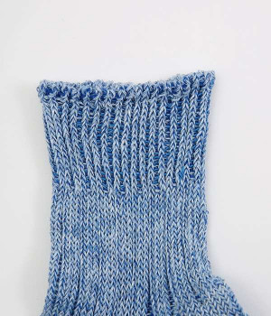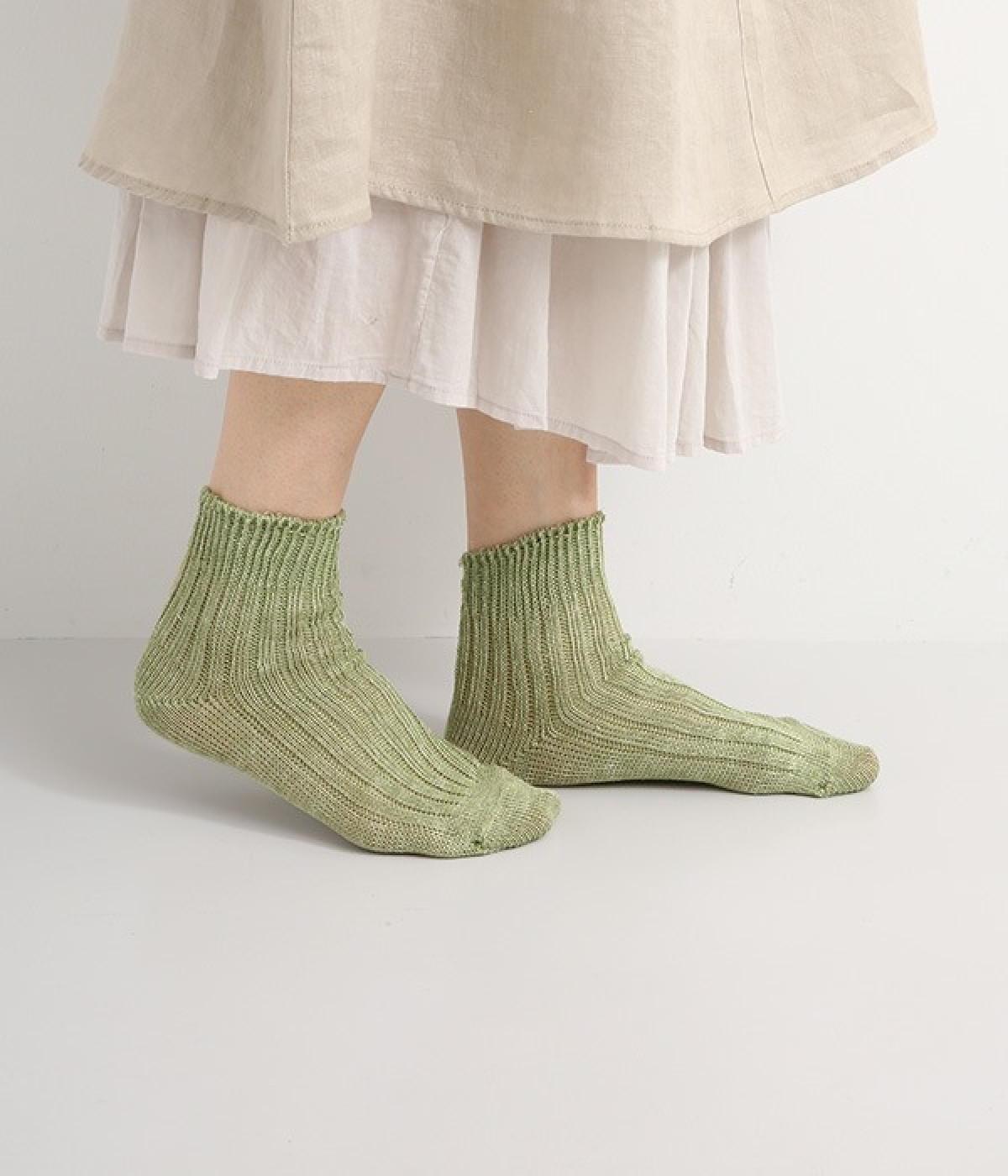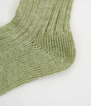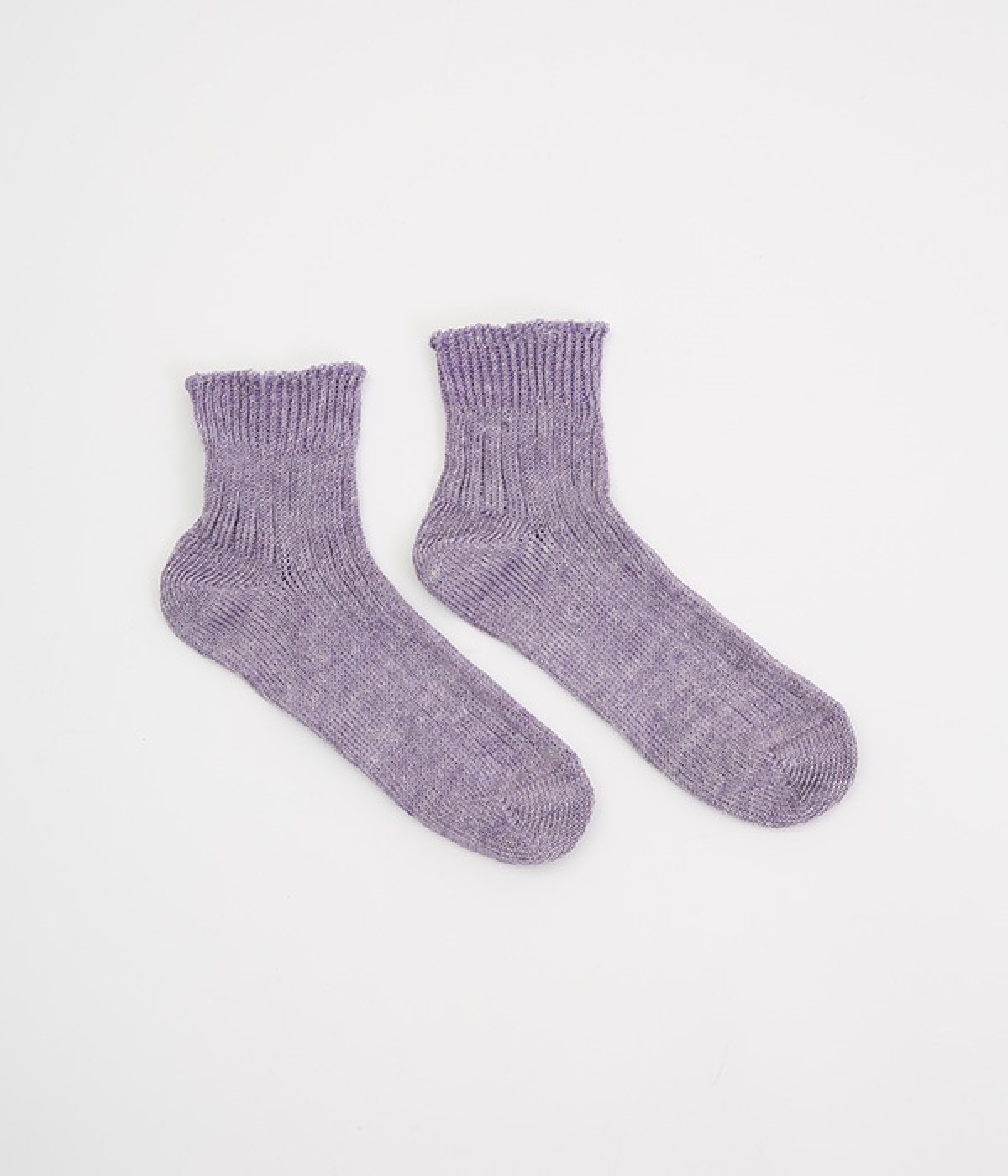 リネン糸をざっくりと編み立てた、透け感のある程よい厚みのソックスです。くるぶしが隠れる短い丈で、スニーカーやサボ、サンダルなどと相性良く合わせることができます。リネンのシャリ感が気持ちよく、蒸れにくい質感なのでこれからの暑い季節にぴったりな一足に。明るい色味でパッと足元にアクセントを添えてくれます。