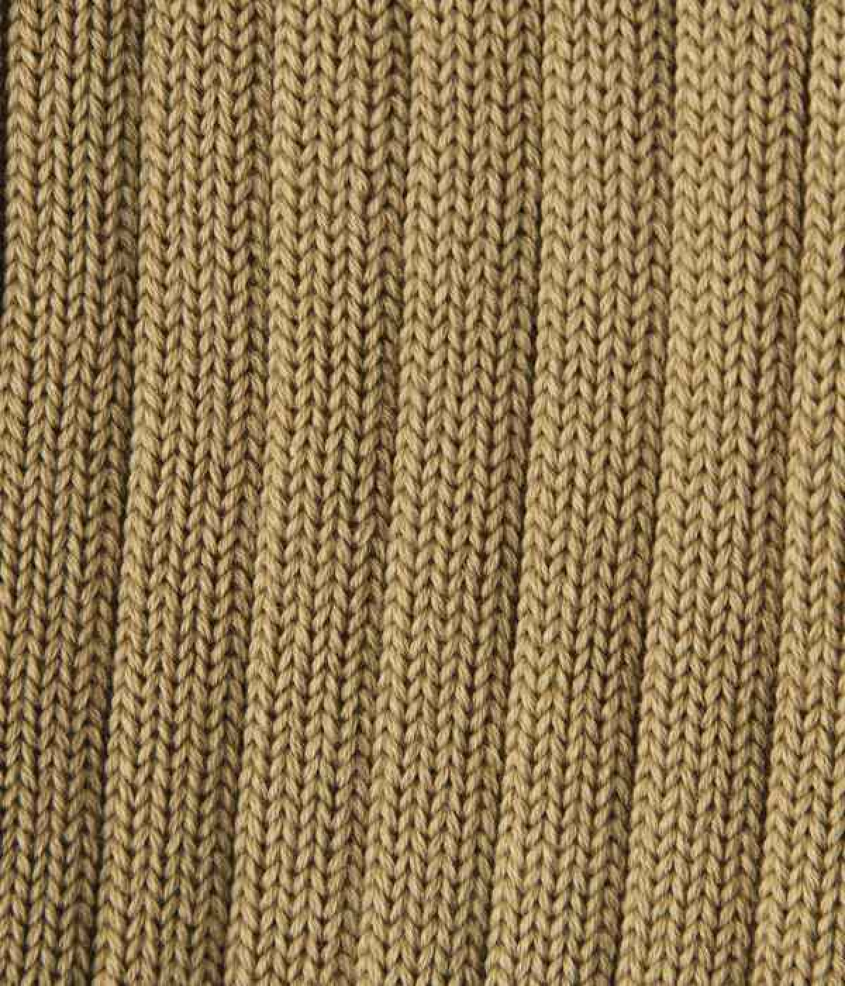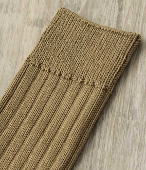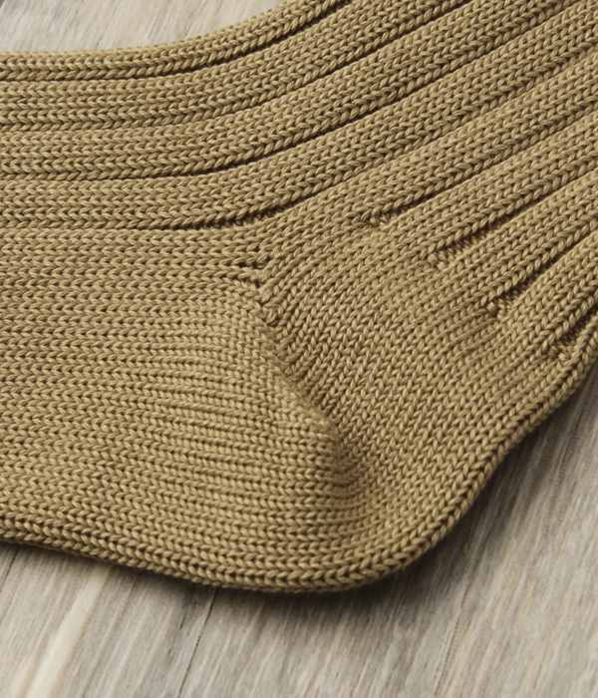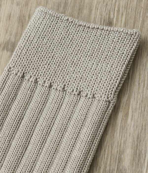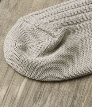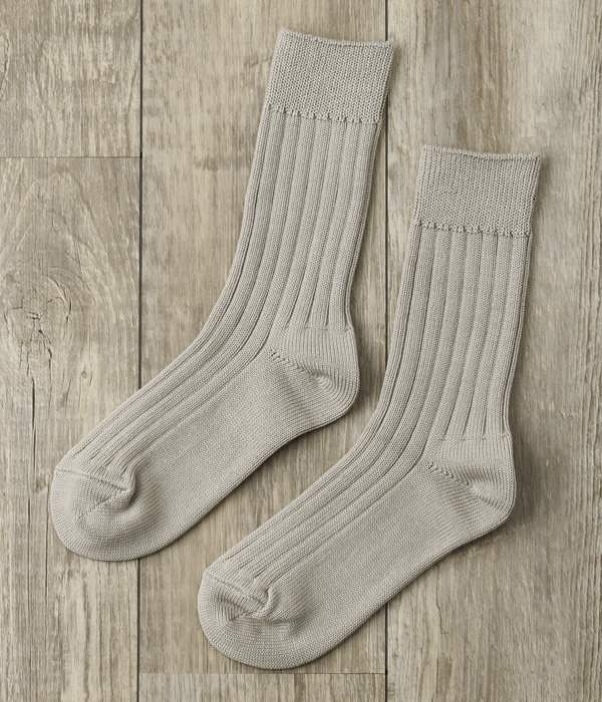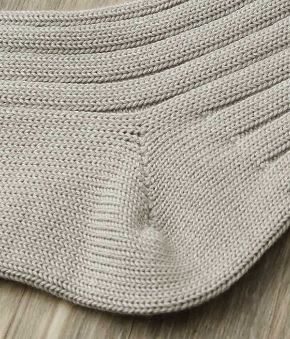 エジプトのナイル川周辺で採れる繊維長35mm以上の厳選された超長綿をベースに、極限まで甘く撚ることで柔らかく光沢が美しいリブソックスができました。適正より敢えて糸を一本多く入れて伸縮性を用いた編み方をすることでギザコットン本来のふわふわとした柔らかさをさらに引き立てています。リブ仕様なので、ずり落ちにくく、見た目もすっきりとしたアイテムです。