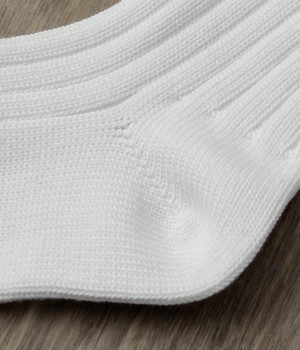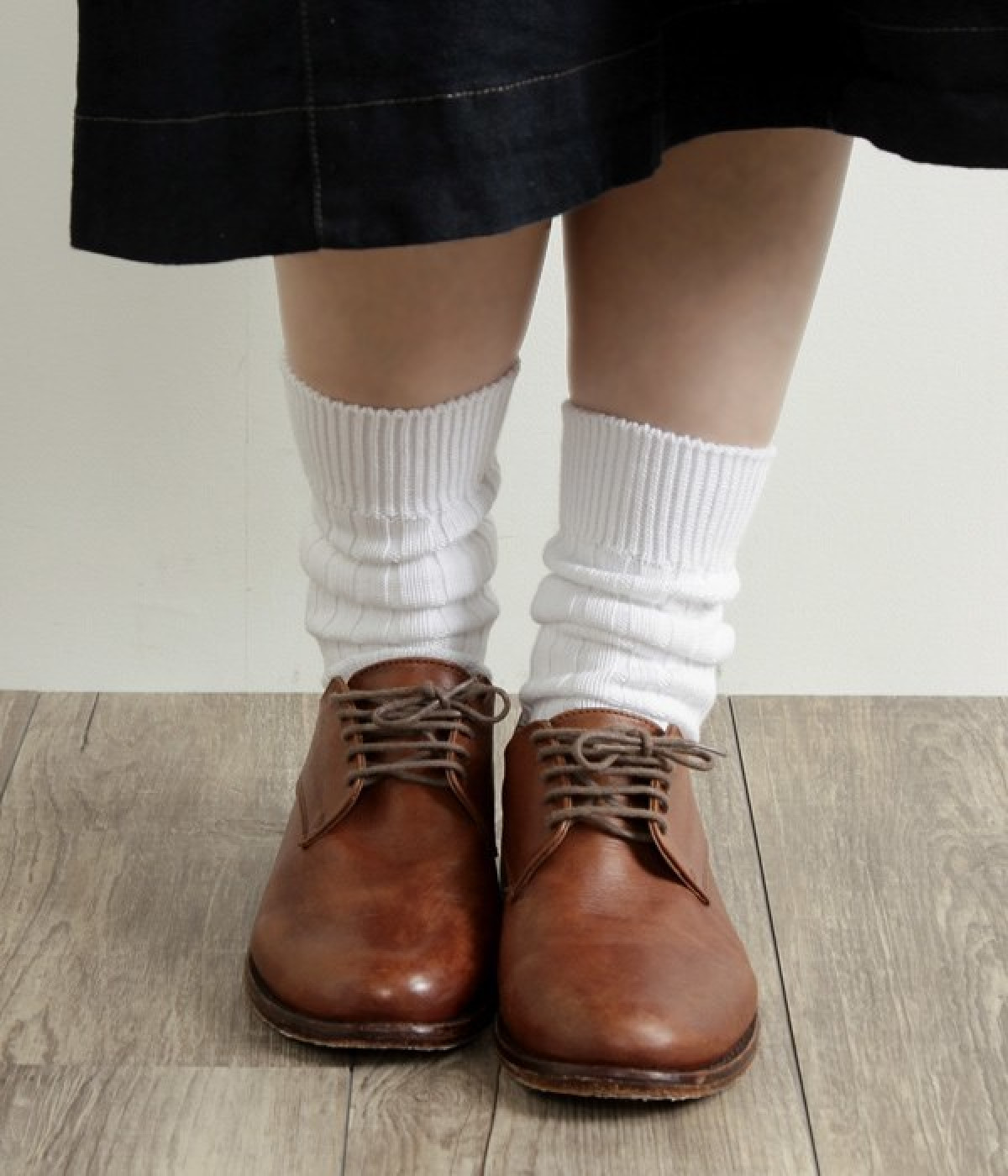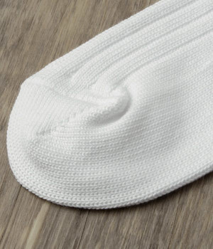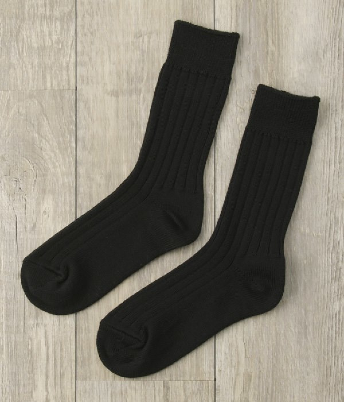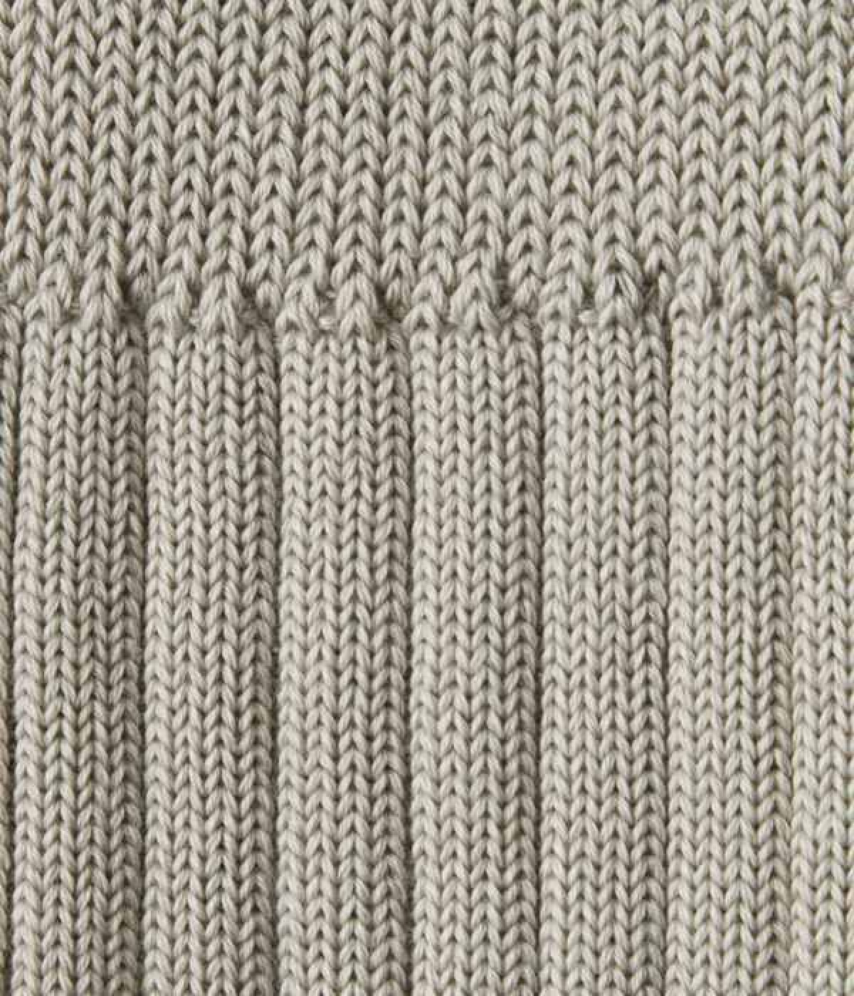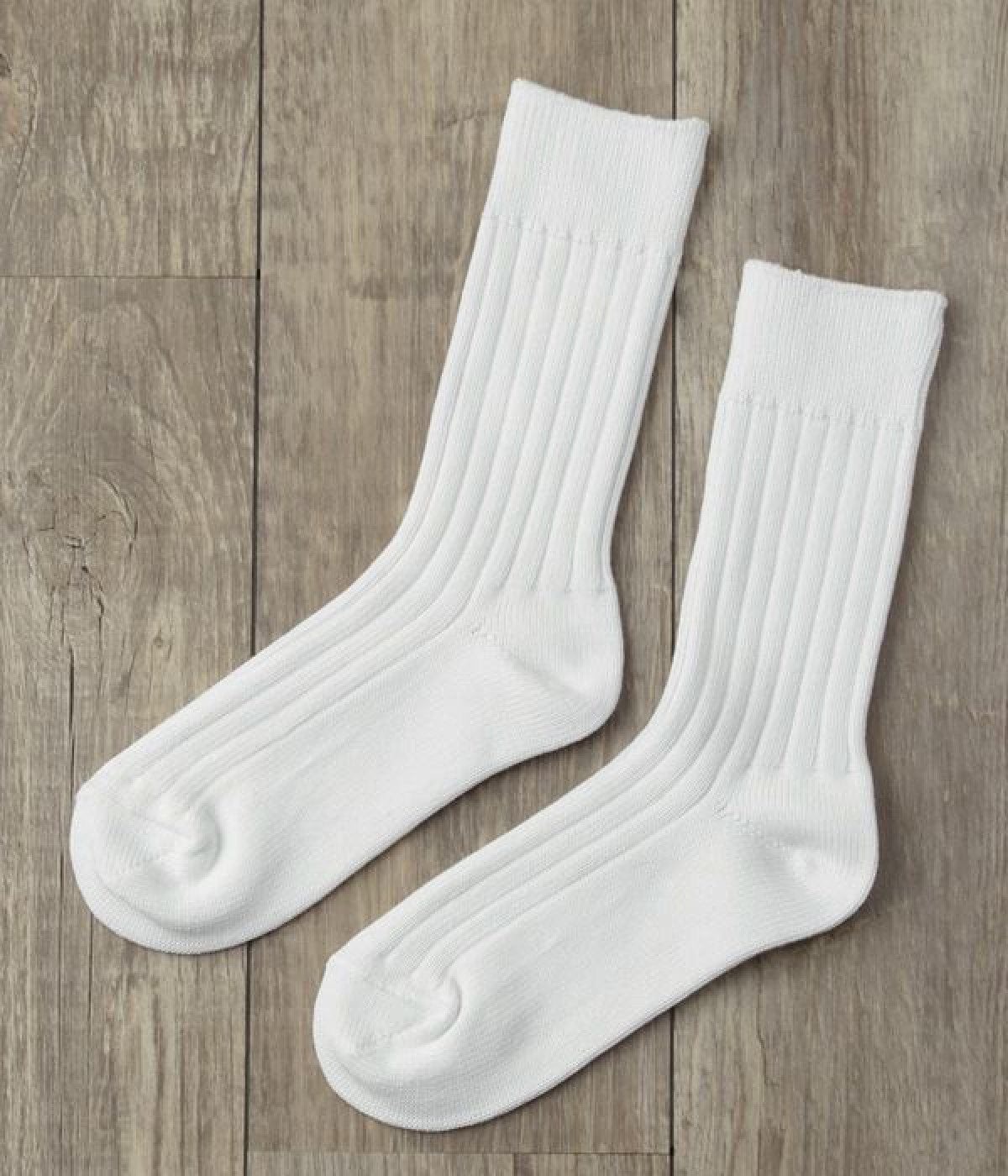 エジプトのナイル川周辺で採れる繊維長35mm以上の厳選された超長綿をベースに、極限まで甘く撚ることで柔らかく光沢が美しいリブソックスができました。適正より敢えて糸を一本多く入れて伸縮性を用いた編み方をすることでギザコットン本来のふわふわとした柔らかさをさらに引き立てています。リブ仕様なので、ずり落ちにくく、見た目もすっきりとしたアイテムです。