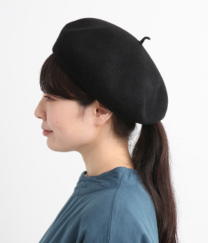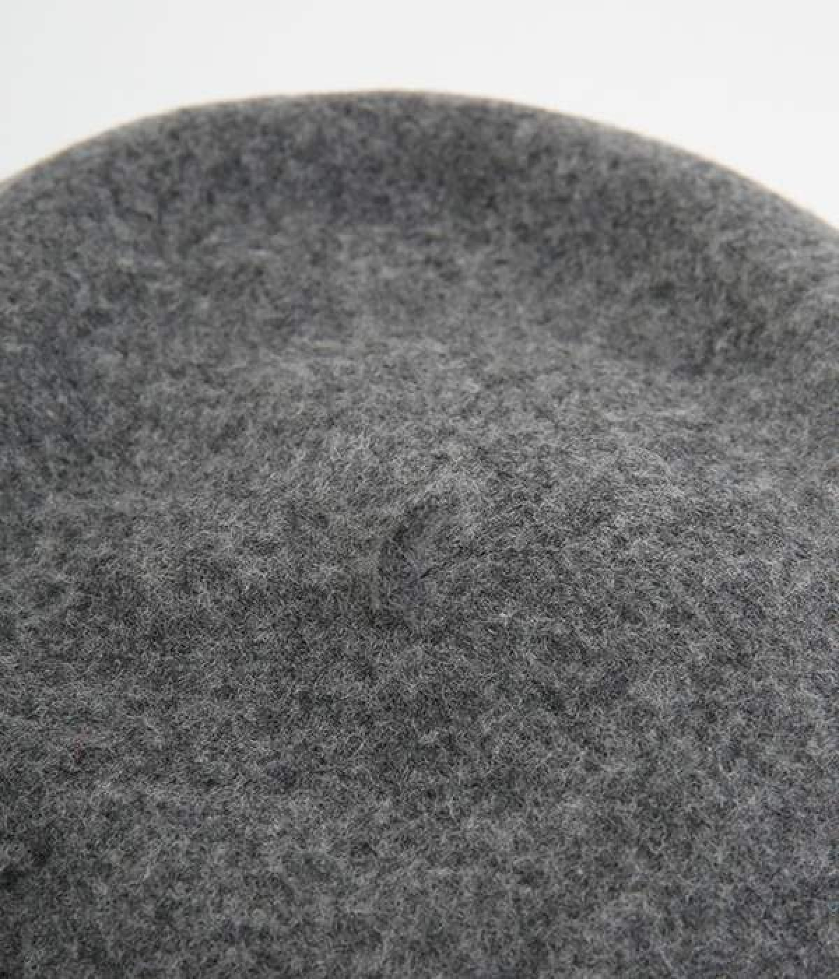 チョボ付きデザインが可愛らしいバスクベレー帽です。50年以上続く日本で唯一ベレー帽の完成までの工程を自社でできる工場にて作られています。そのため優れた縮絨率で毛と毛がぎっしり絡み合い地厚な高級感を増した価値あるアイテム。形がきれいなので、そのまま正面もしくは後頭部あたりにそっとかぶるのがおすすめです。コーディネートにアクセントをプラスしたいときにも活躍。