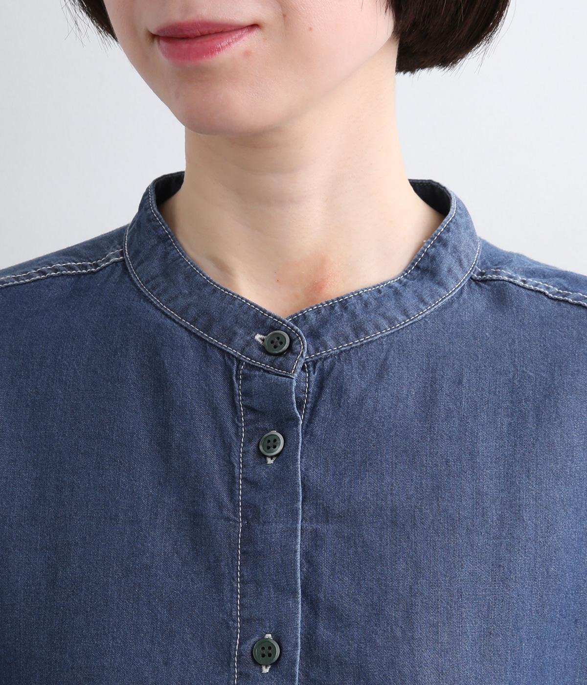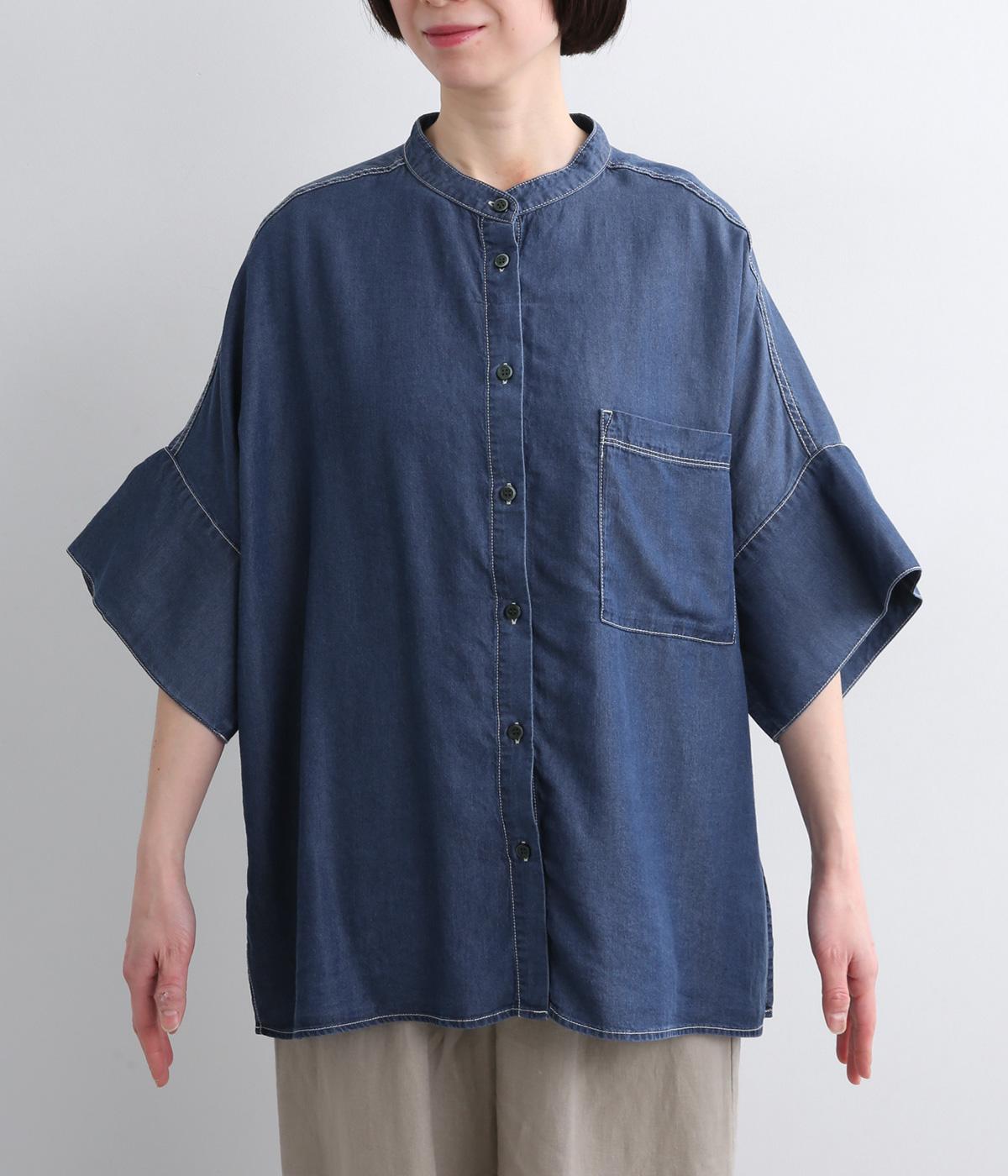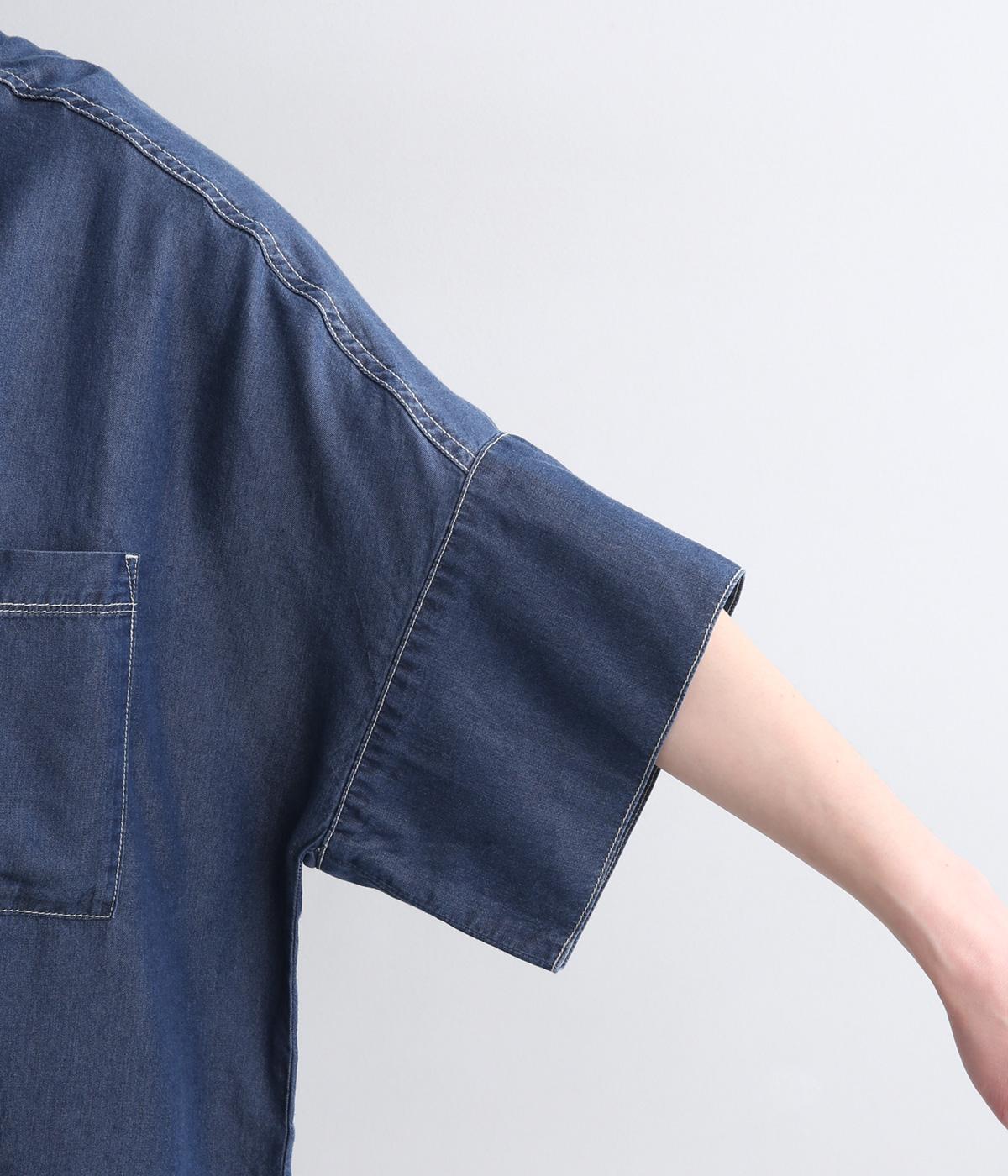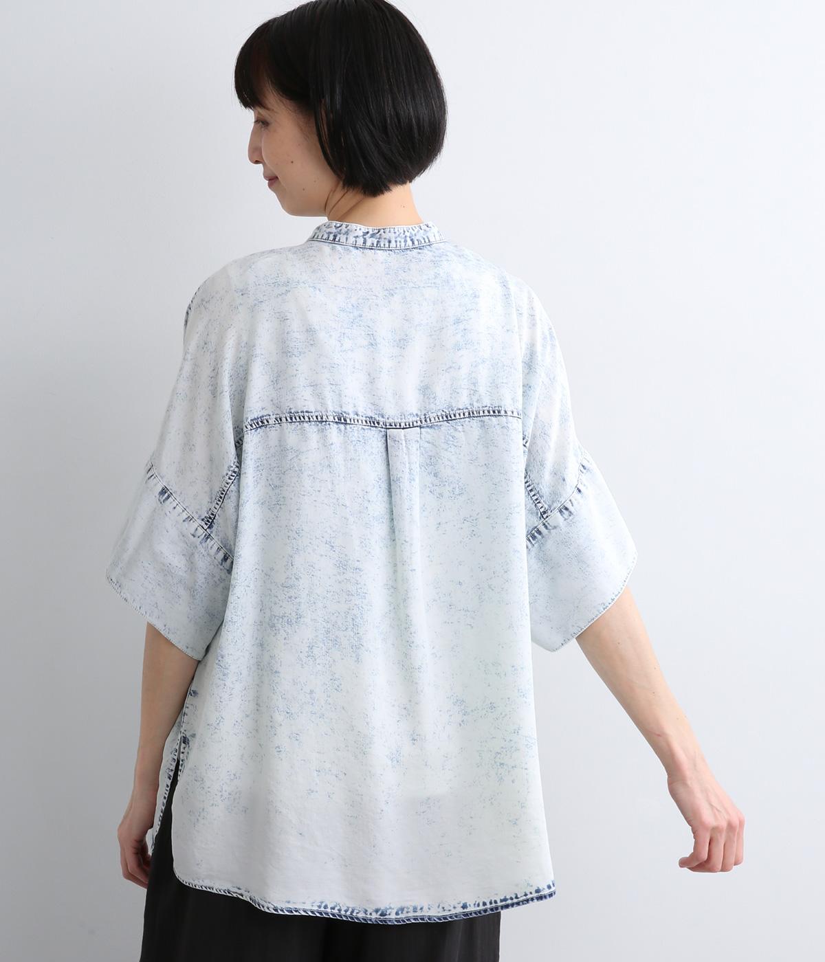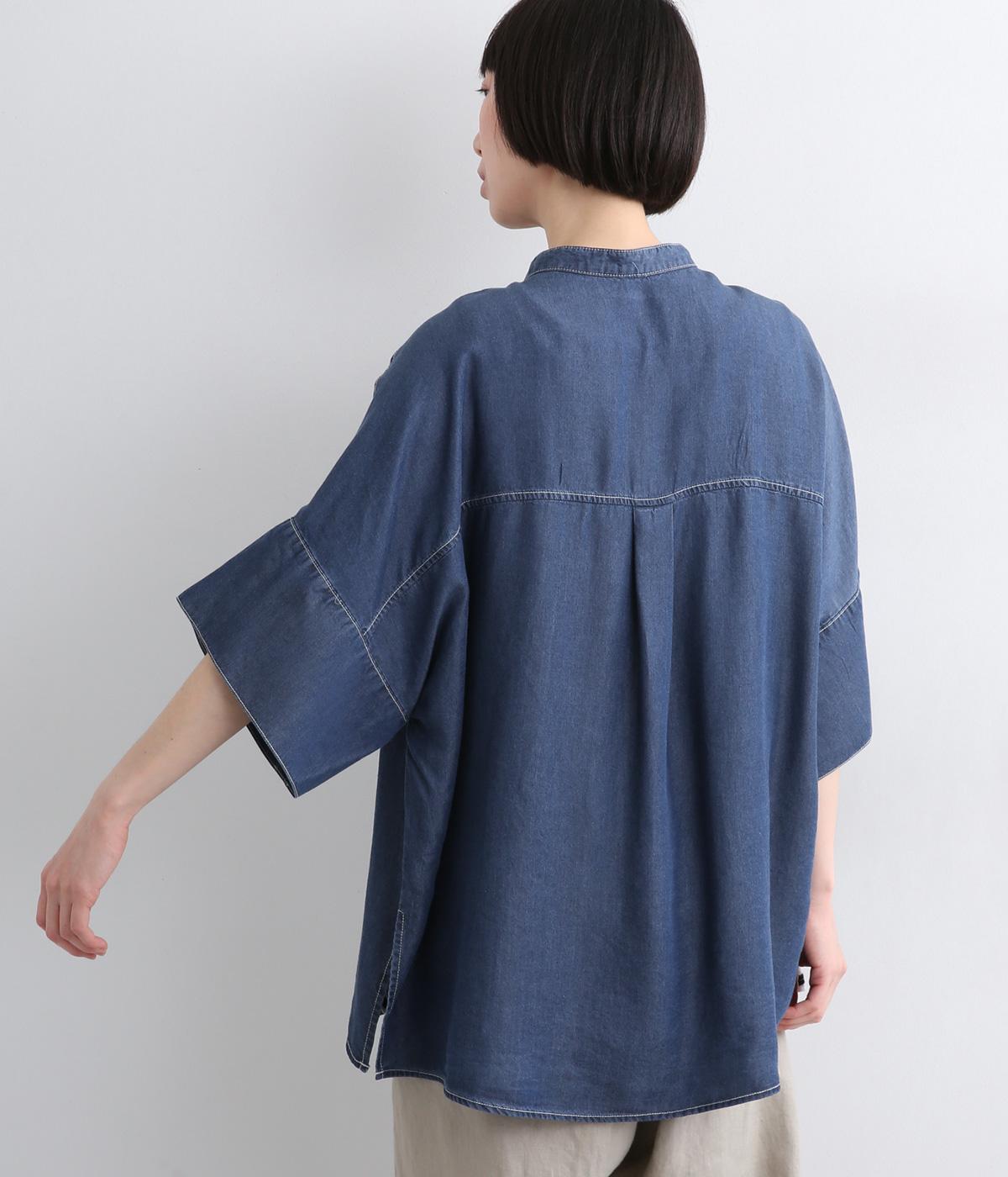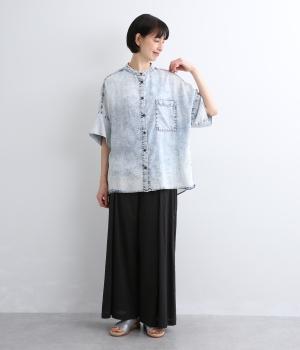 たっぷりと身幅を取ったワイドシルエットの前開きシャツです。羽織りものとしても活躍し、肘まで隠れる袖丈は春から初夏にかけての軽やかな季節にぴったり。大きく前後差をつけた裾がこなれ感を演出します。
