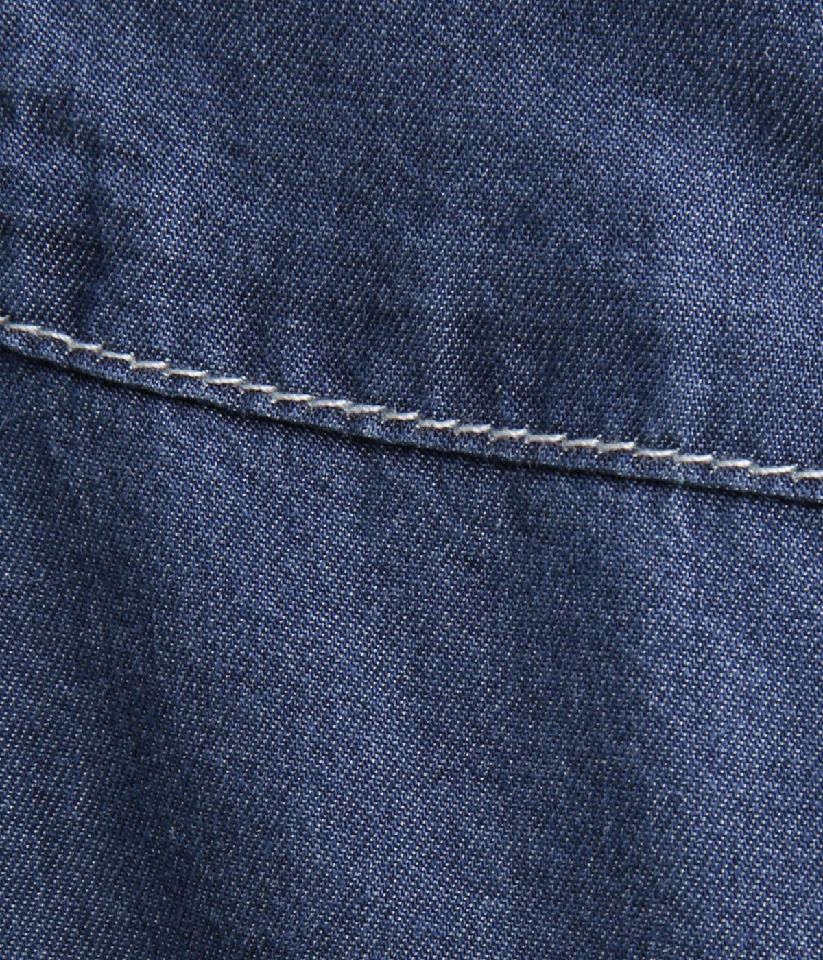 再生繊維のテンセルデニムは、シルクのような自然な光沢とやわらかな肌ざわりが特徴です。吸水速乾性や接触冷感を備えた機能素材で、暑い時期でも快適に着用できます。