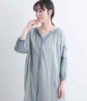 コットンローンピンタック切替えワンピース