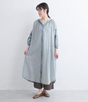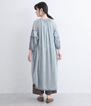 コットンリネン ストライプギャザーワンピース