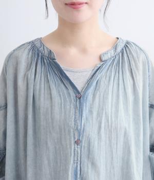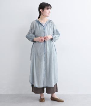 コットンリネン デニムシャツワンピース