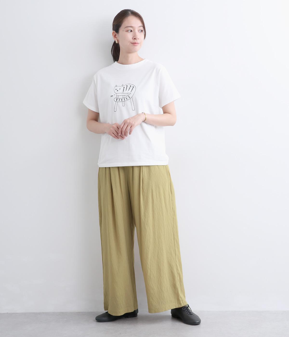 猫刺繍入りTシャツ(オフホワイト)