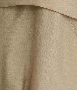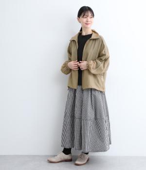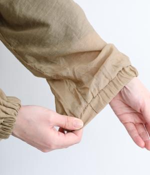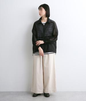 吸水性や吸湿性に優れたセルロース素材を用いており、やわらかく自然なドレープ感が特徴です。ほのかに光沢のあるきれいめな印象ながら、シワにもなりにくくデイリー使いにも最適。ナイロンをまぜて軽やかに仕上げました。