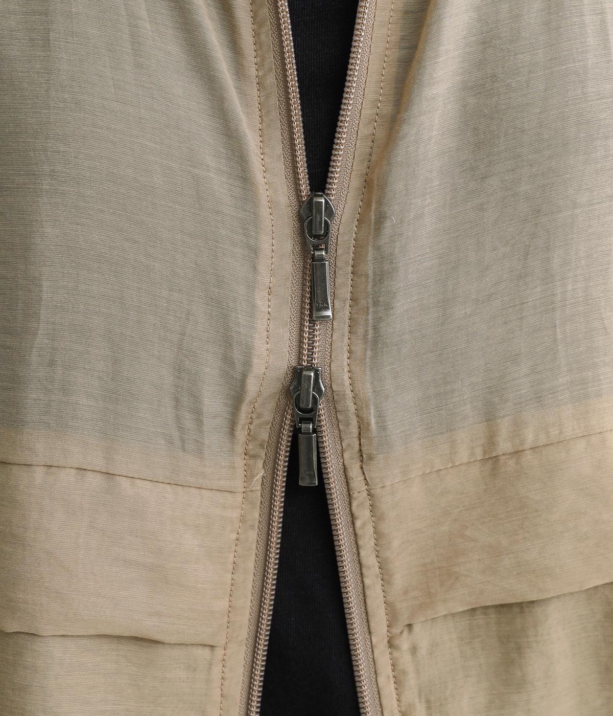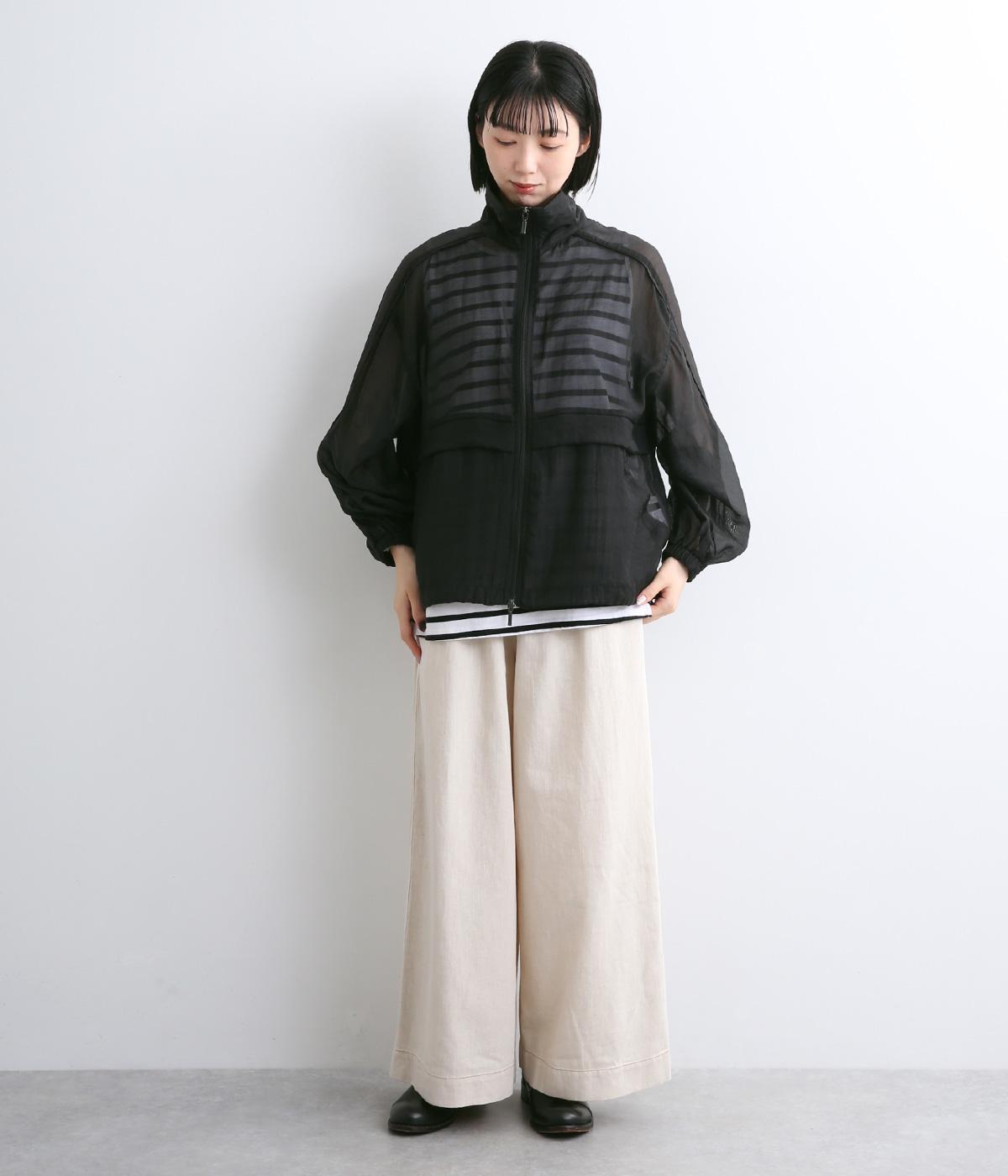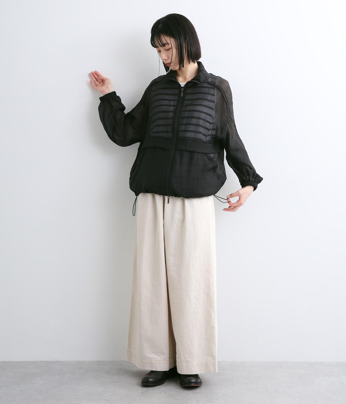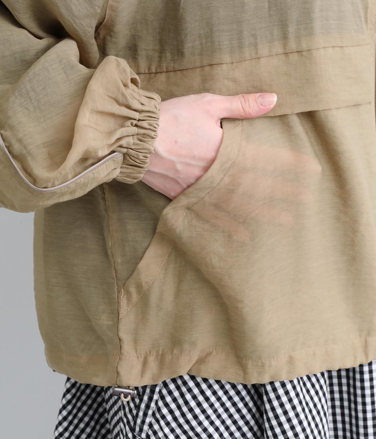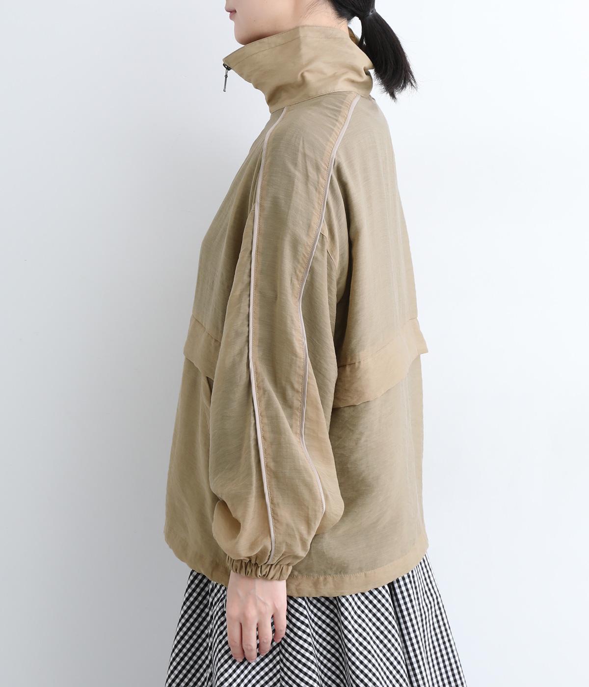 スポーティテイストなブルゾンをシアー素材でお洒落アイテムにアップデート。ポケットや裾アジャスター、袖口のゴムなど機能性を盛り込んで大人のカジュアルスタイルに適したデザイン。ハイネックでクールにまとめたのも◎。