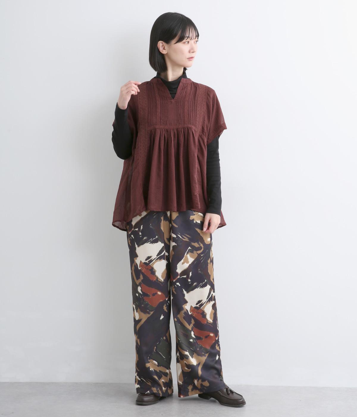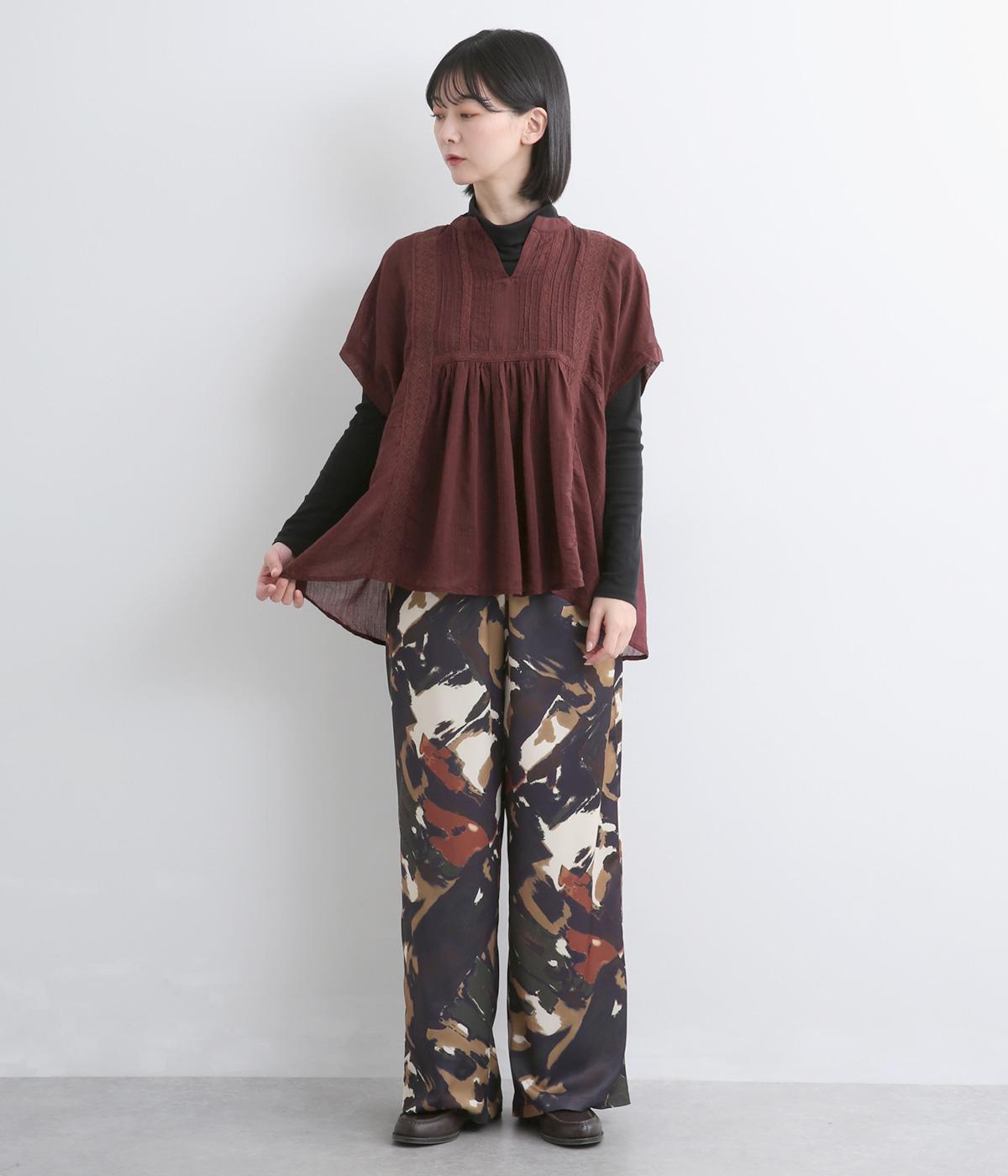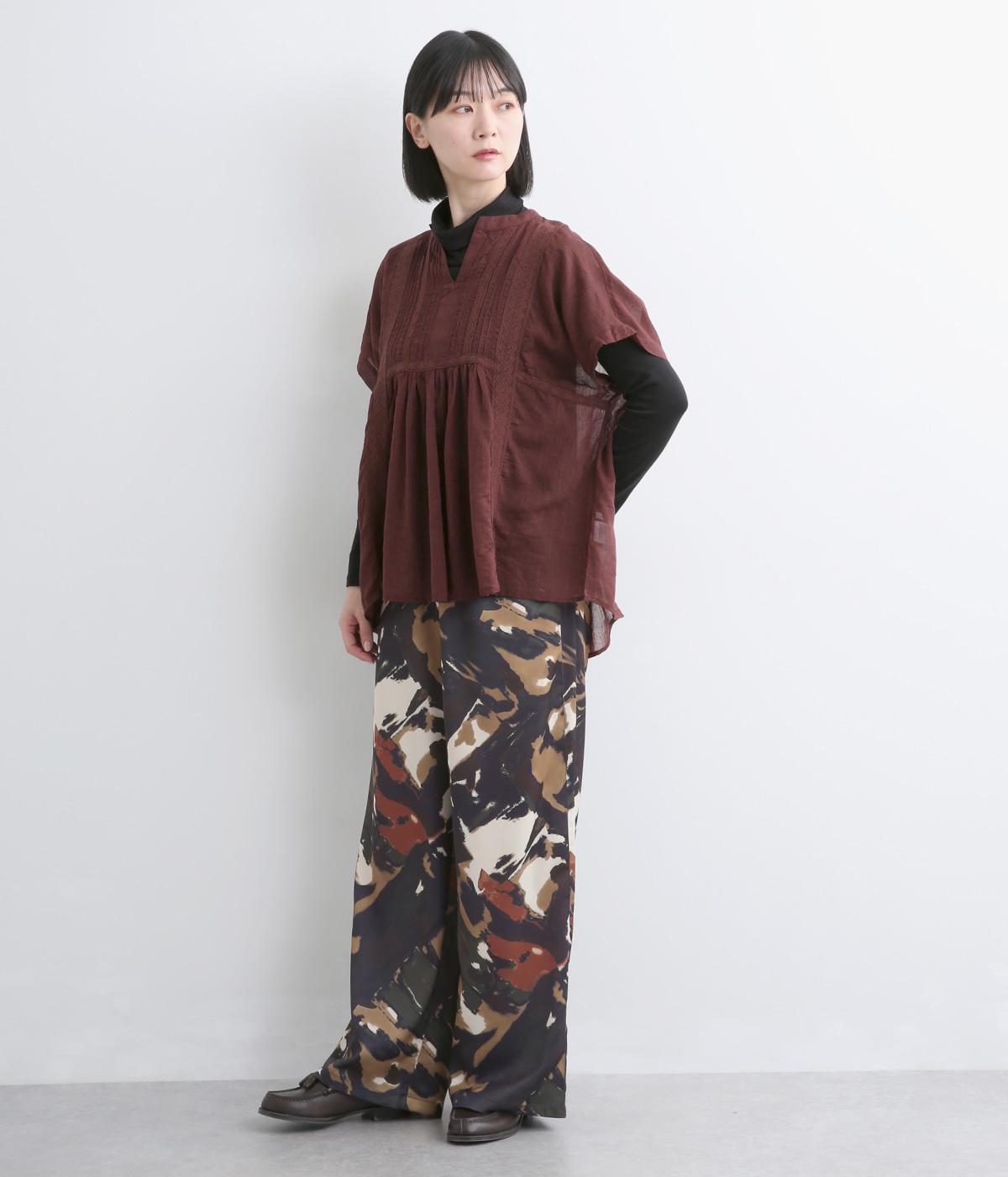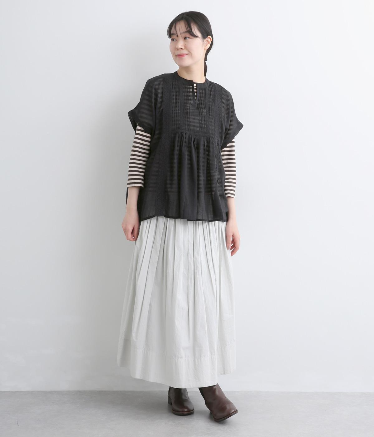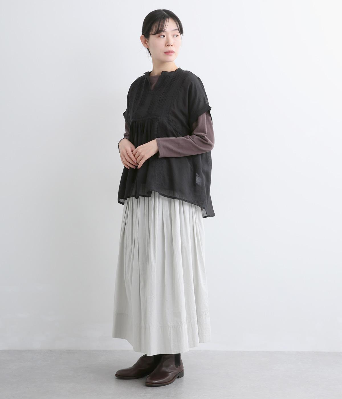 ピンタックとレースが華やかさを演出するプルオーバー。スキッパー開きの首元でさらに抜け感をプラスしました。暑い季節はもちろん、タートルニットなどとも好相性で、シーズン問わず着まわせる一枚です。