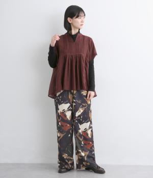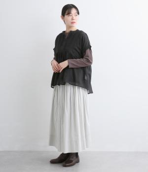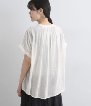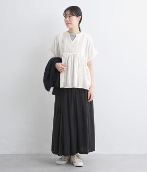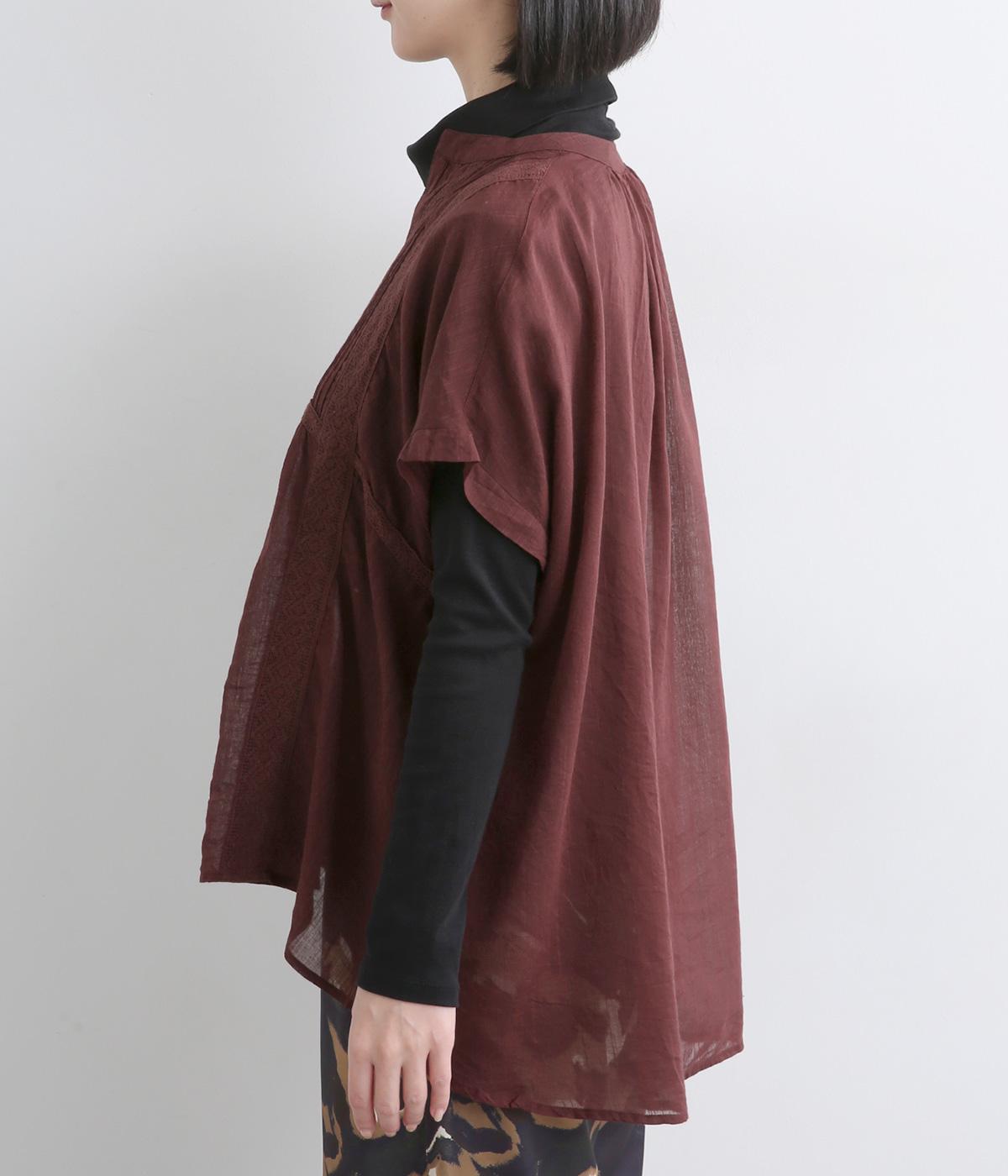 ふんわりと軽やかなインド製のコットンレーヨン生地を使用しています。通気性がよく、上品な透け感が魅力です。手仕事ならではの風合いが魅力の素材感です。