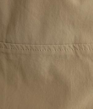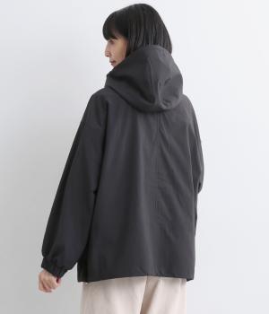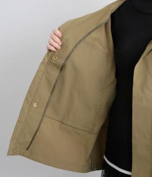 しなやかな肌ざわりと、マットな質感をもつポリエステル素材を使用しました。裏地をつけない軽い仕上がりで、季節の変わり目にも活躍する一枚に。