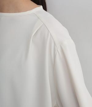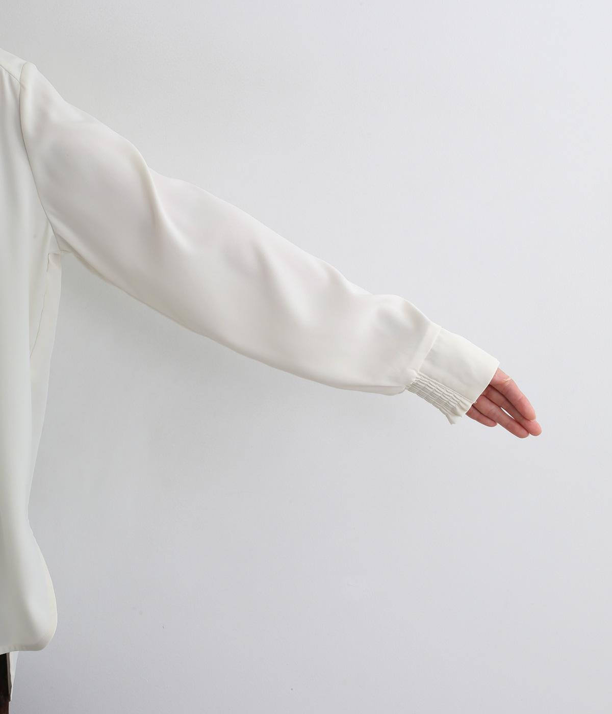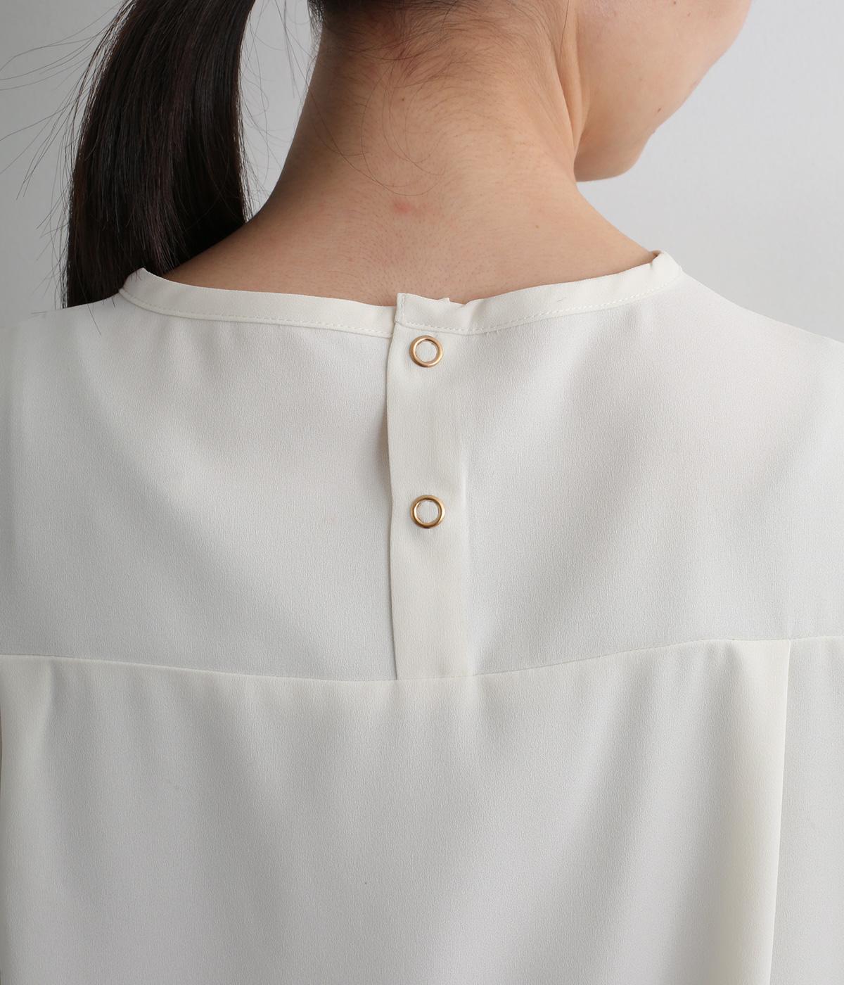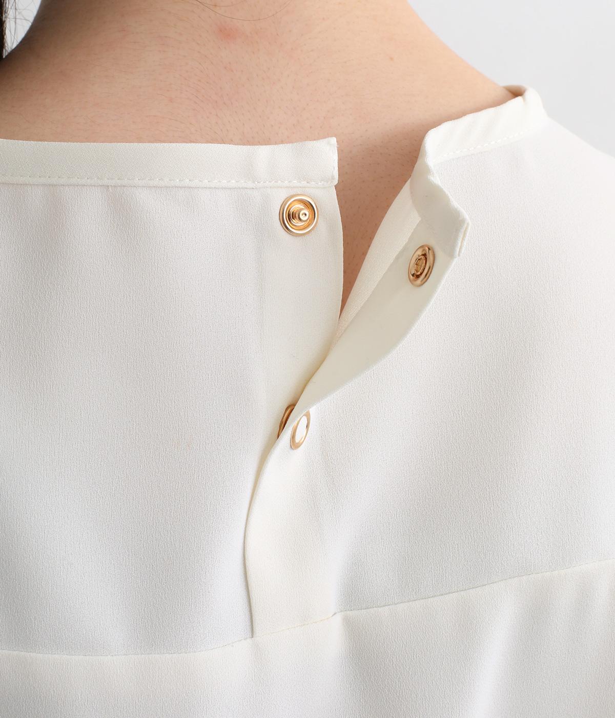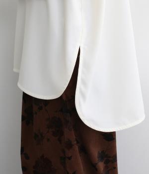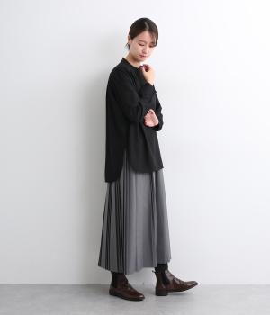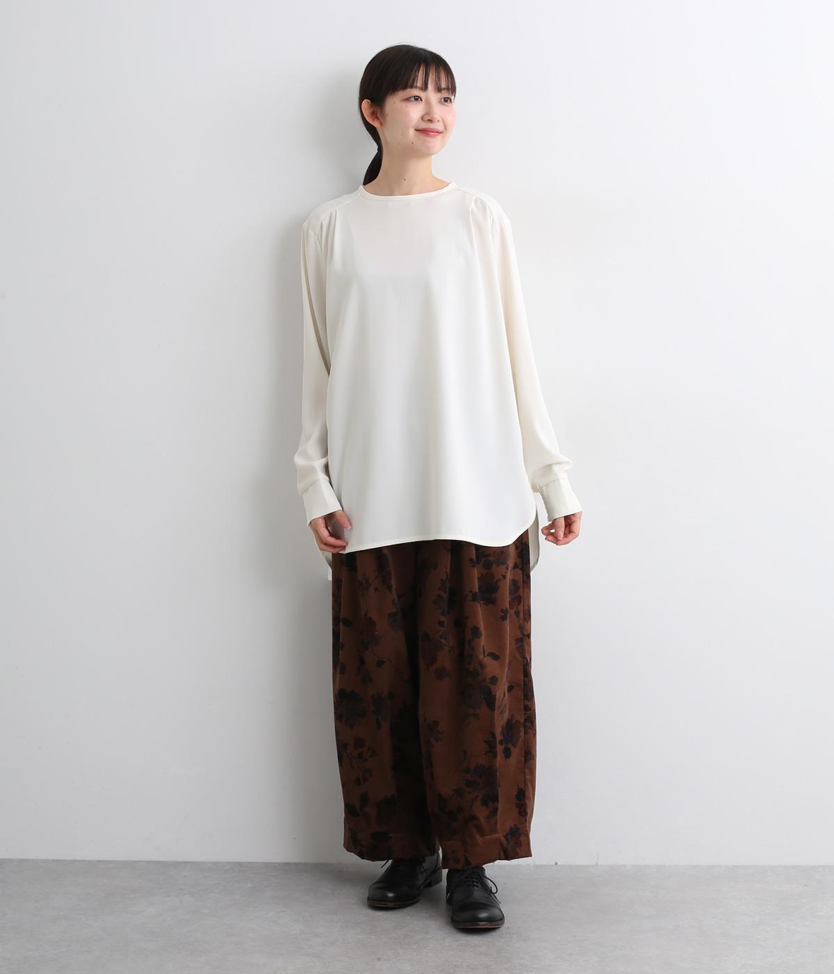 単品でトップスとしてはもちろん、インナー使いにもおすすめな1枚。袖口はシャーリングで女性らしさを、後ろボタンはスナップで着脱しやすくなっています。カットソーのロンTよりきれいめな雰囲気で、大人の着こなしに最適です。