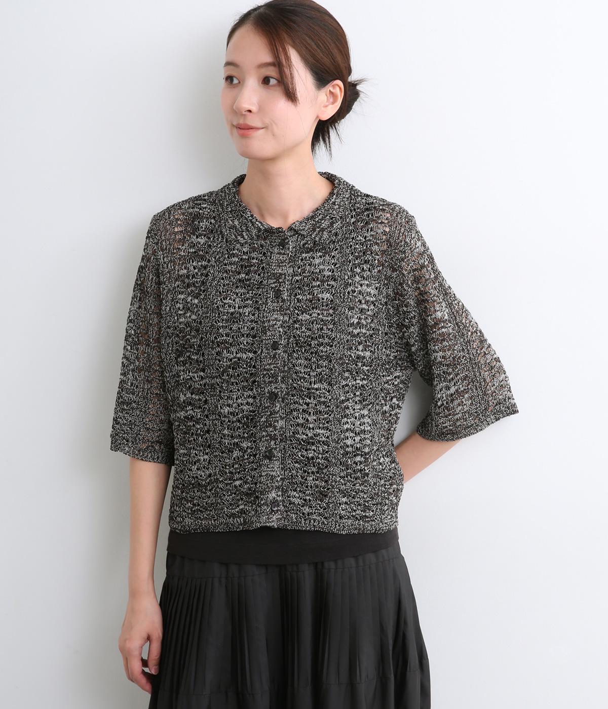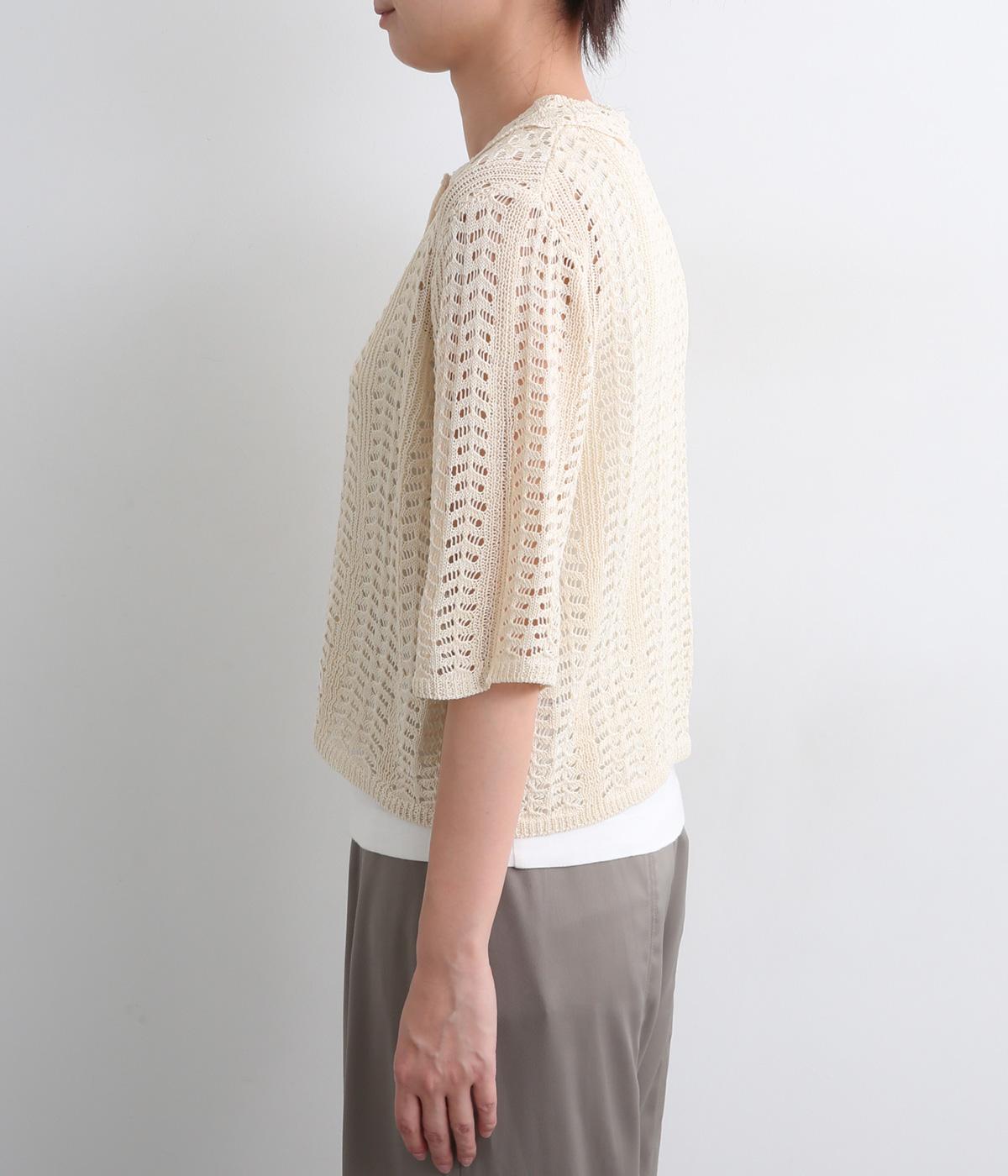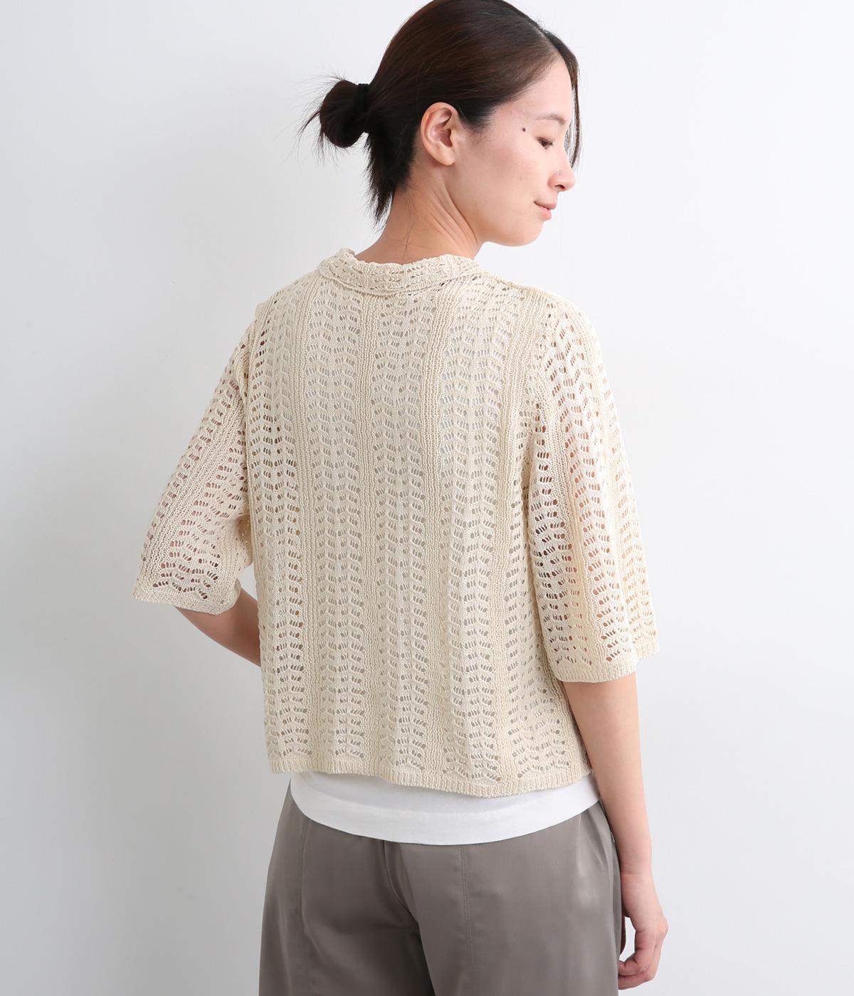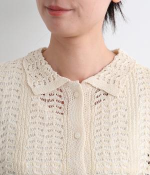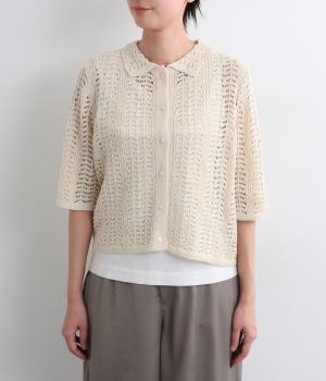 レイヤードがたのしめる透かし編みのニットシャツ。ボタンを留めたり、ラフに羽織ってトップスを惹き立てたりと着まわし力も◎。抜け感があるのでボトム合わせしやすく、ナチュラルながらもこなれた装いが完成。