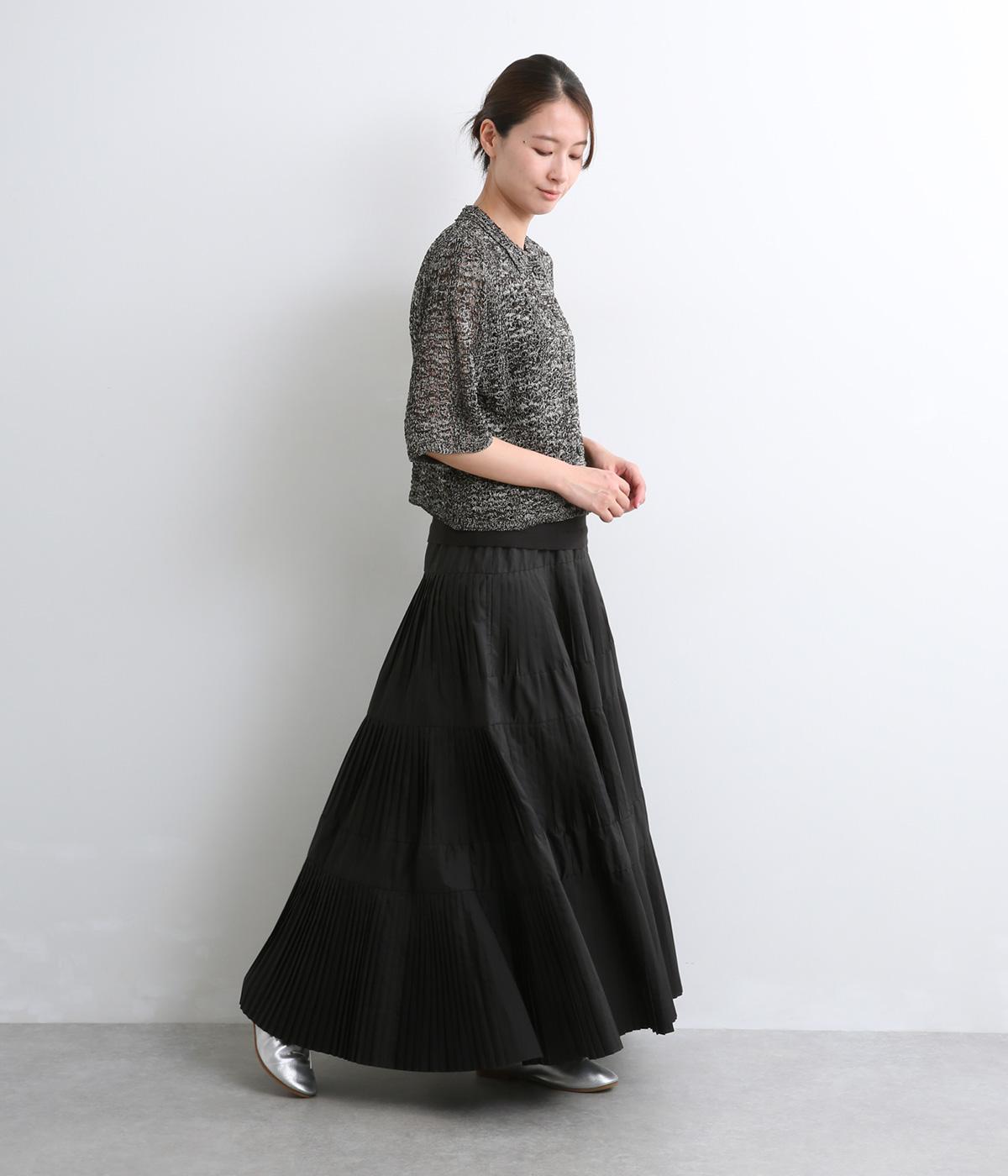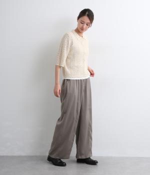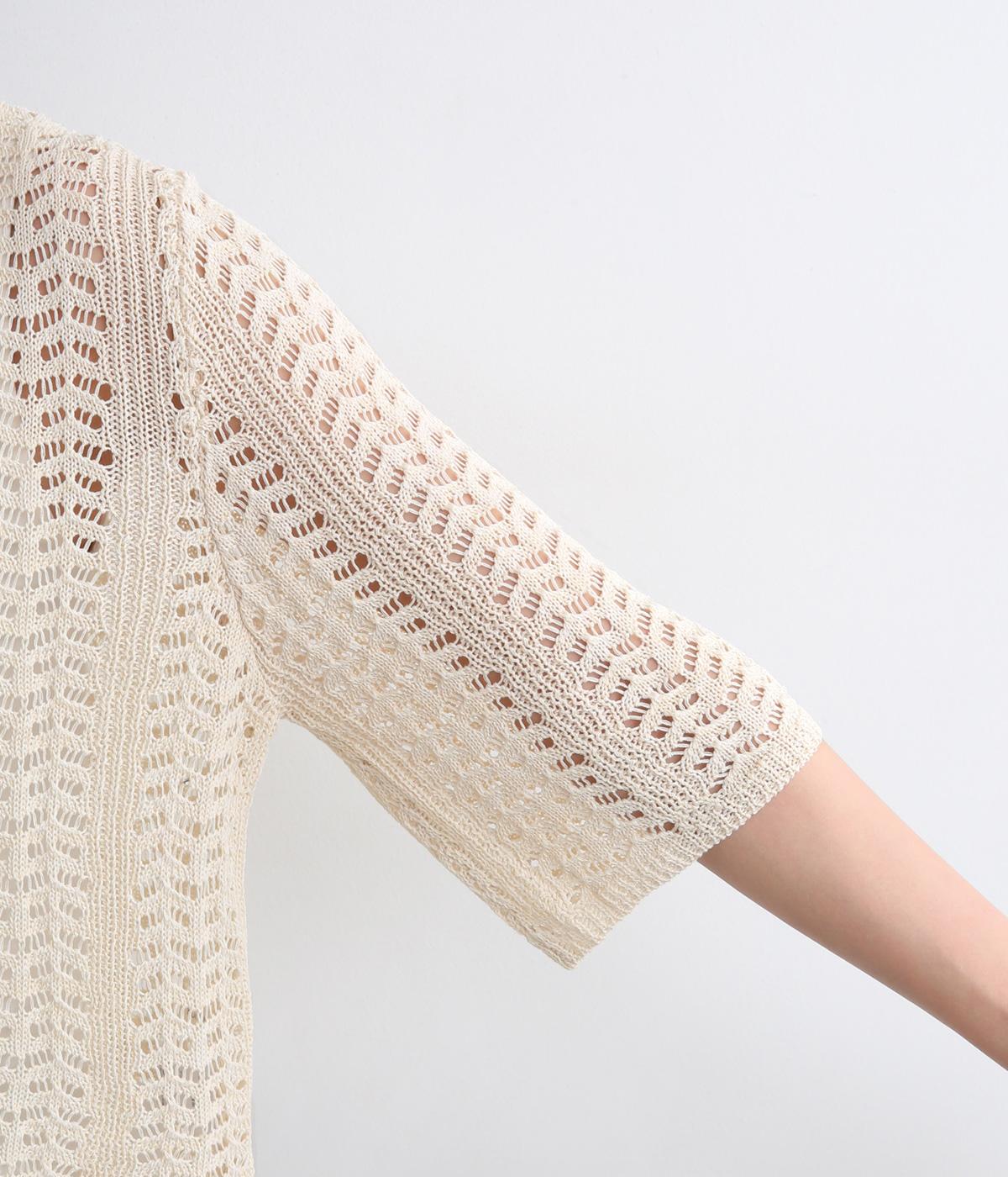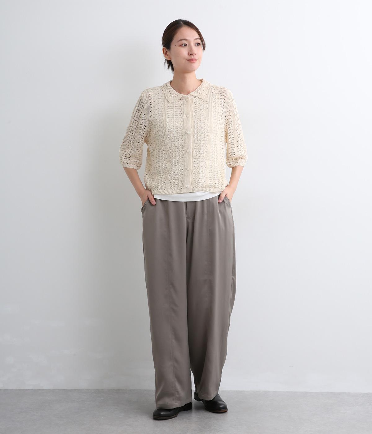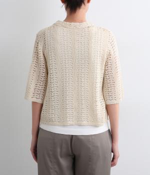 レイヤードがたのしめる透かし編みのニットシャツ。ボタンを留めたり、ラフに羽織ってトップスを惹き立てたりと着まわし力も◎。抜け感があるのでボトム合わせしやすく、ナチュラルながらもこなれた装いが完成。