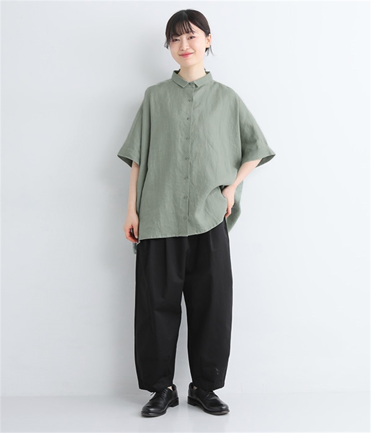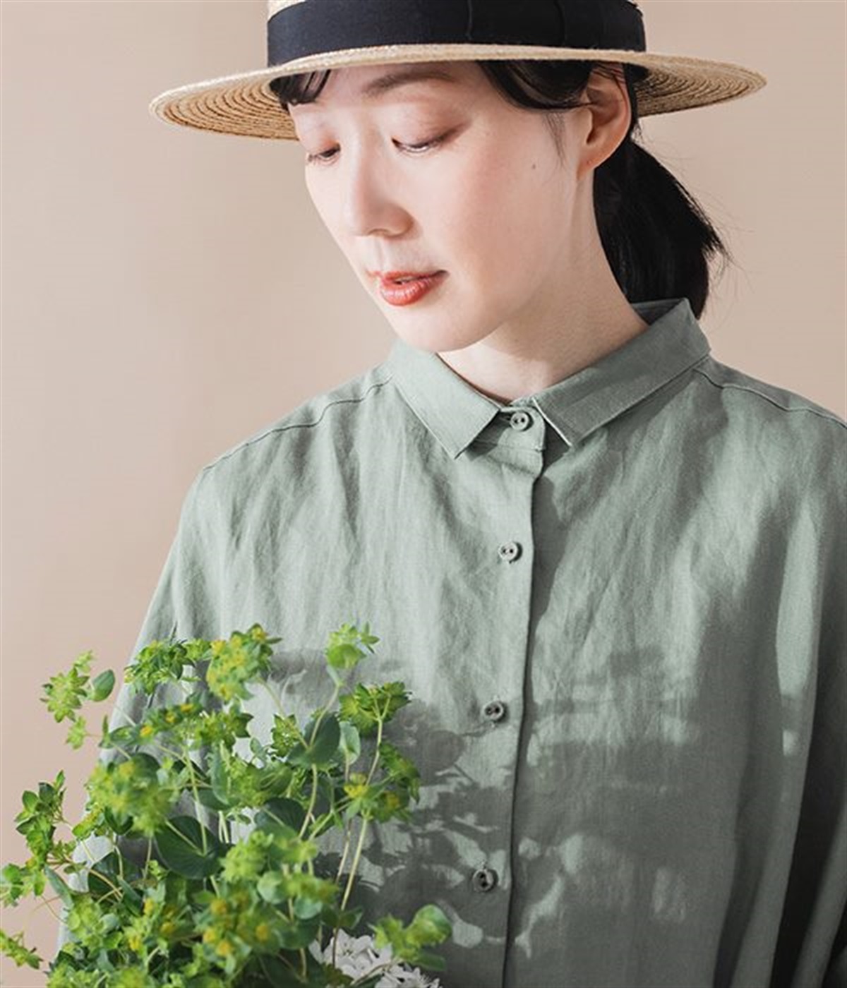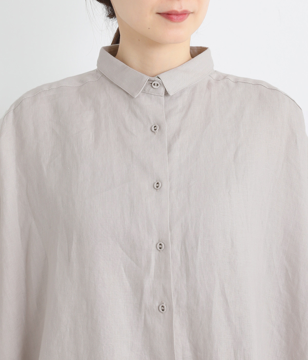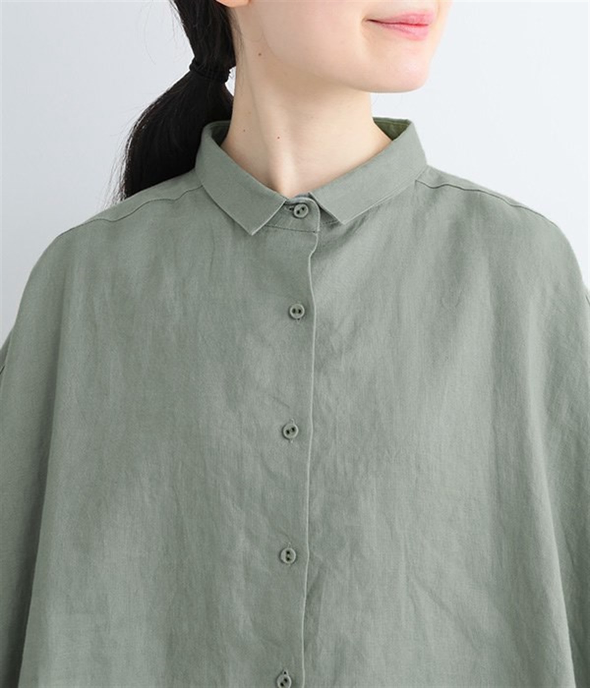 主張しすぎない大きさのチビ襟デザインがポイントのブラウス。天然の吸湿速乾性とシャリ感で快適な着心地が得られる、平織りリネンで仕立てました。身幅がたっぷりとしたビッグシルエットですが、リネンの落ち感によりすっきりと見せてくれます。パンツにもスカートにも合わせられるちょうどよい着丈で、さまざまなコーディネートに対応。ボタンをフルオープンにしてワンピースなどの上からラフに羽織っても素敵です。