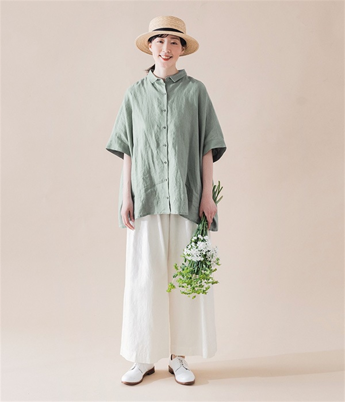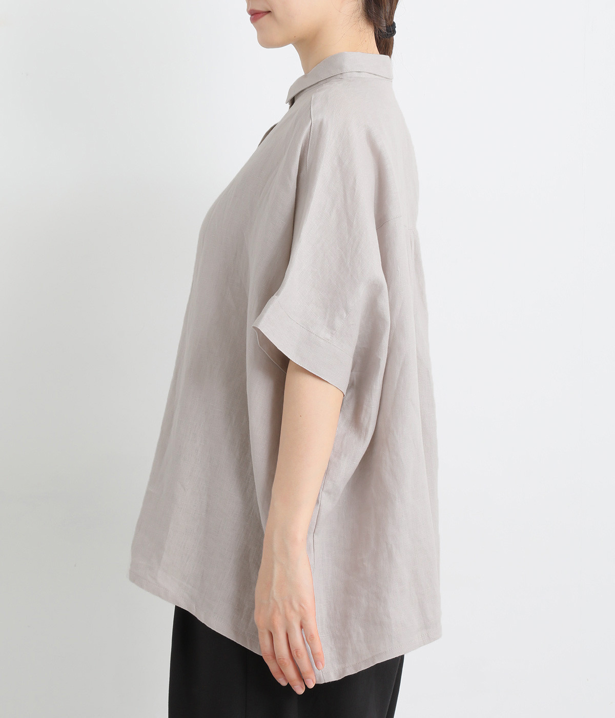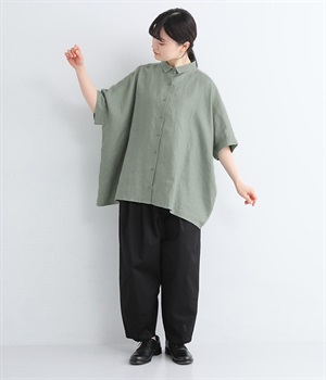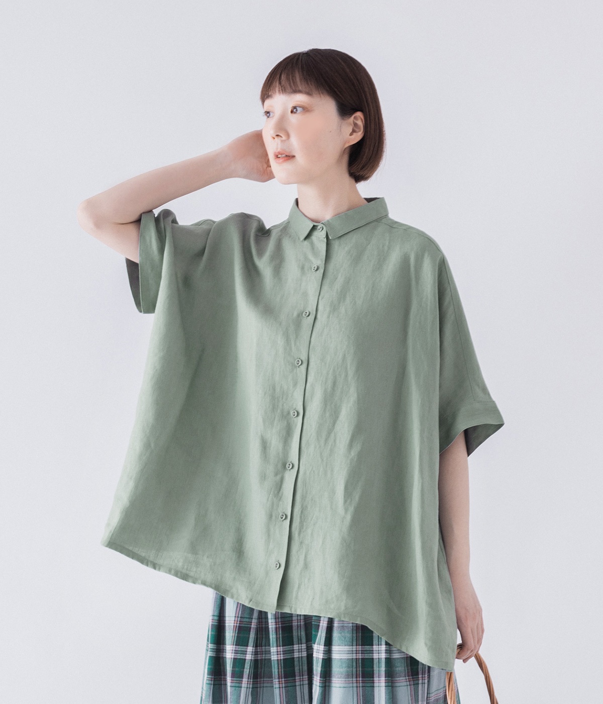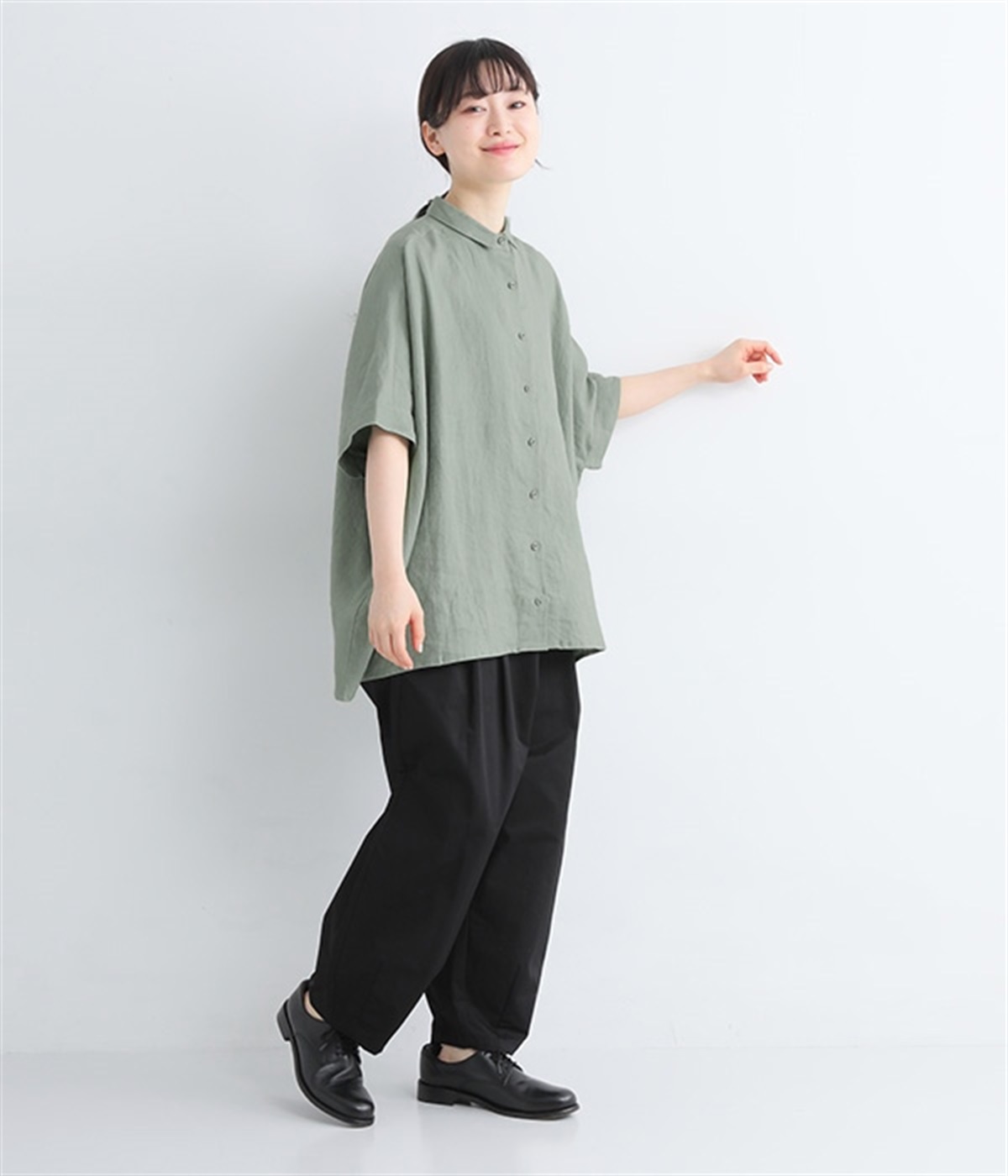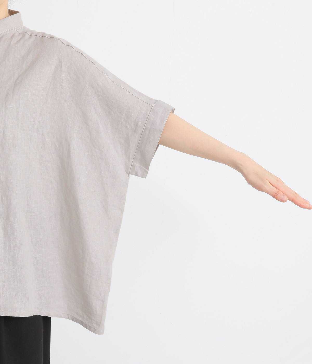 主張しすぎない大きさのチビ襟デザインがポイントのブラウス。天然の吸湿速乾性とシャリ感で快適な着心地が得られる、平織りリネンで仕立てました。身幅がたっぷりとしたビッグシルエットですが、リネンの落ち感によりすっきりと見せてくれます。パンツにもスカートにも合わせられるちょうどよい着丈で、さまざまなコーディネートに対応。ボタンをフルオープンにしてワンピースなどの上からラフに羽織っても素敵です。