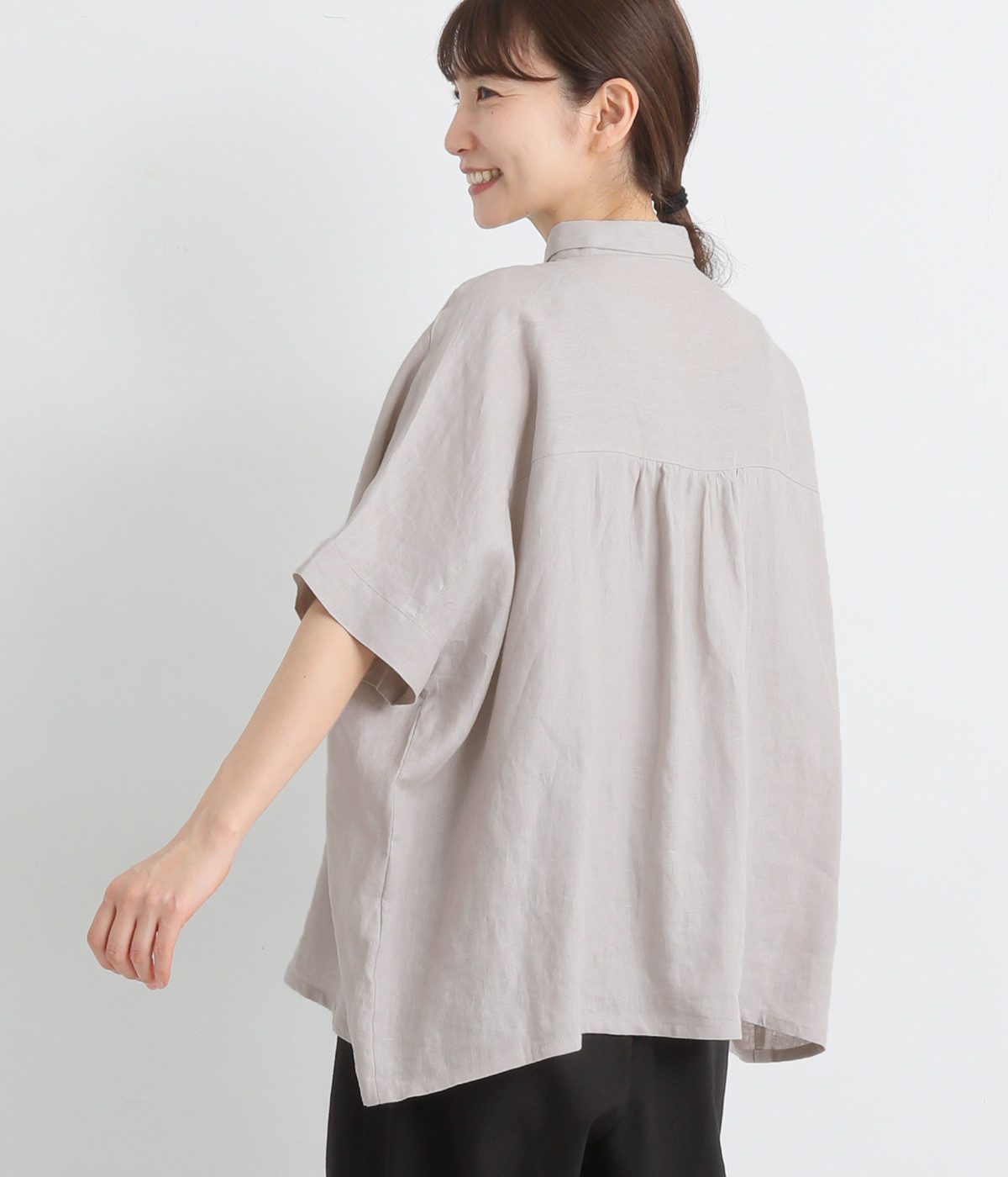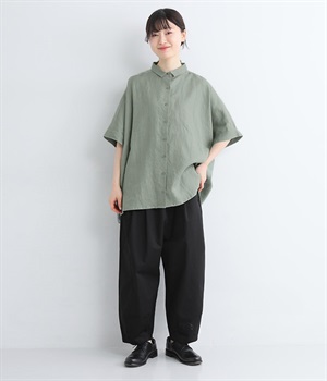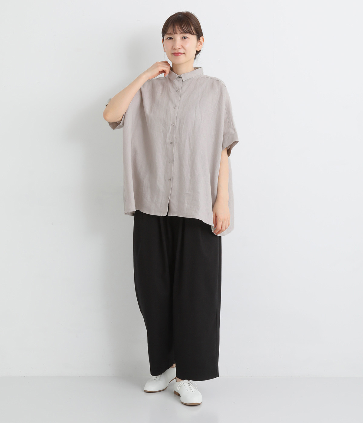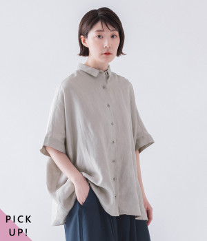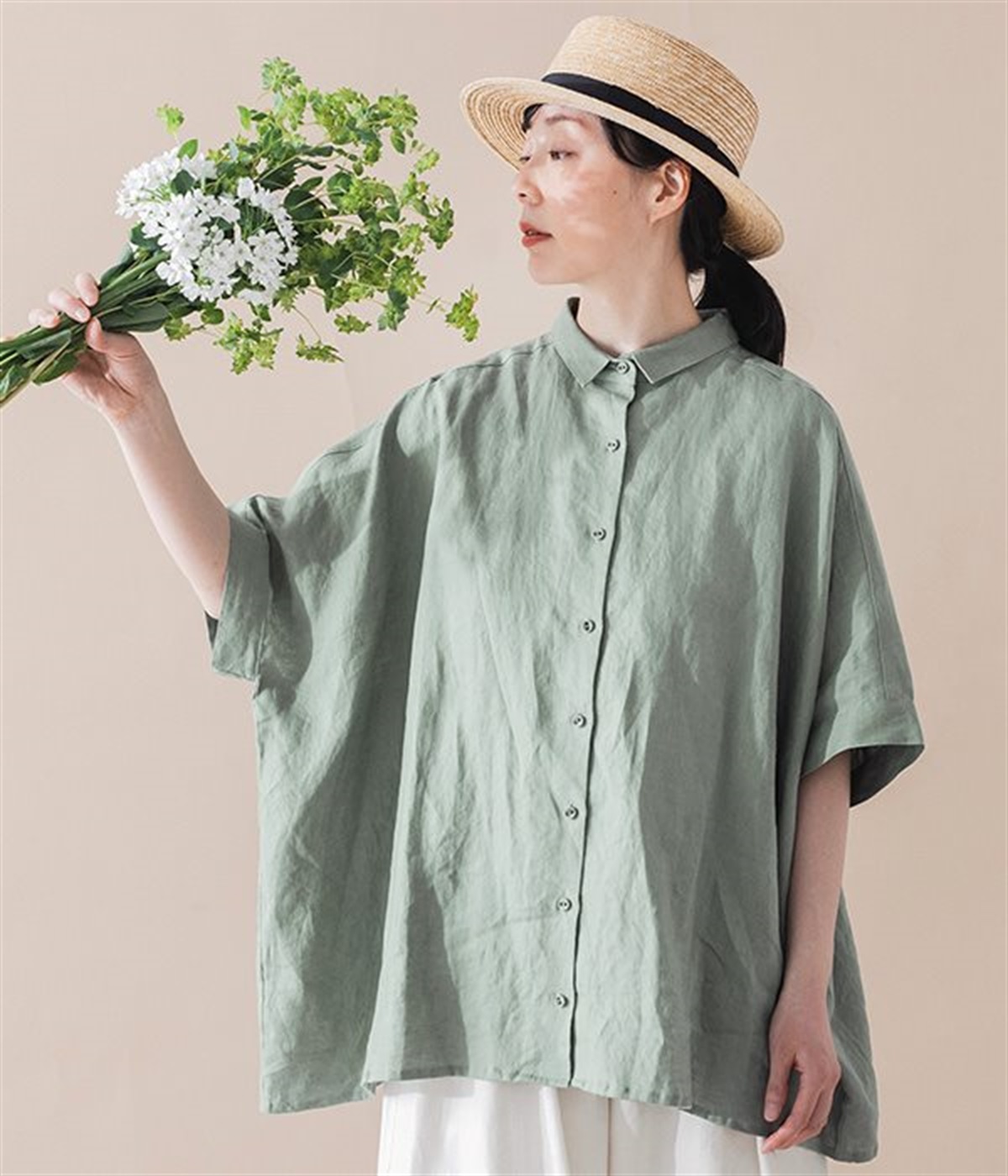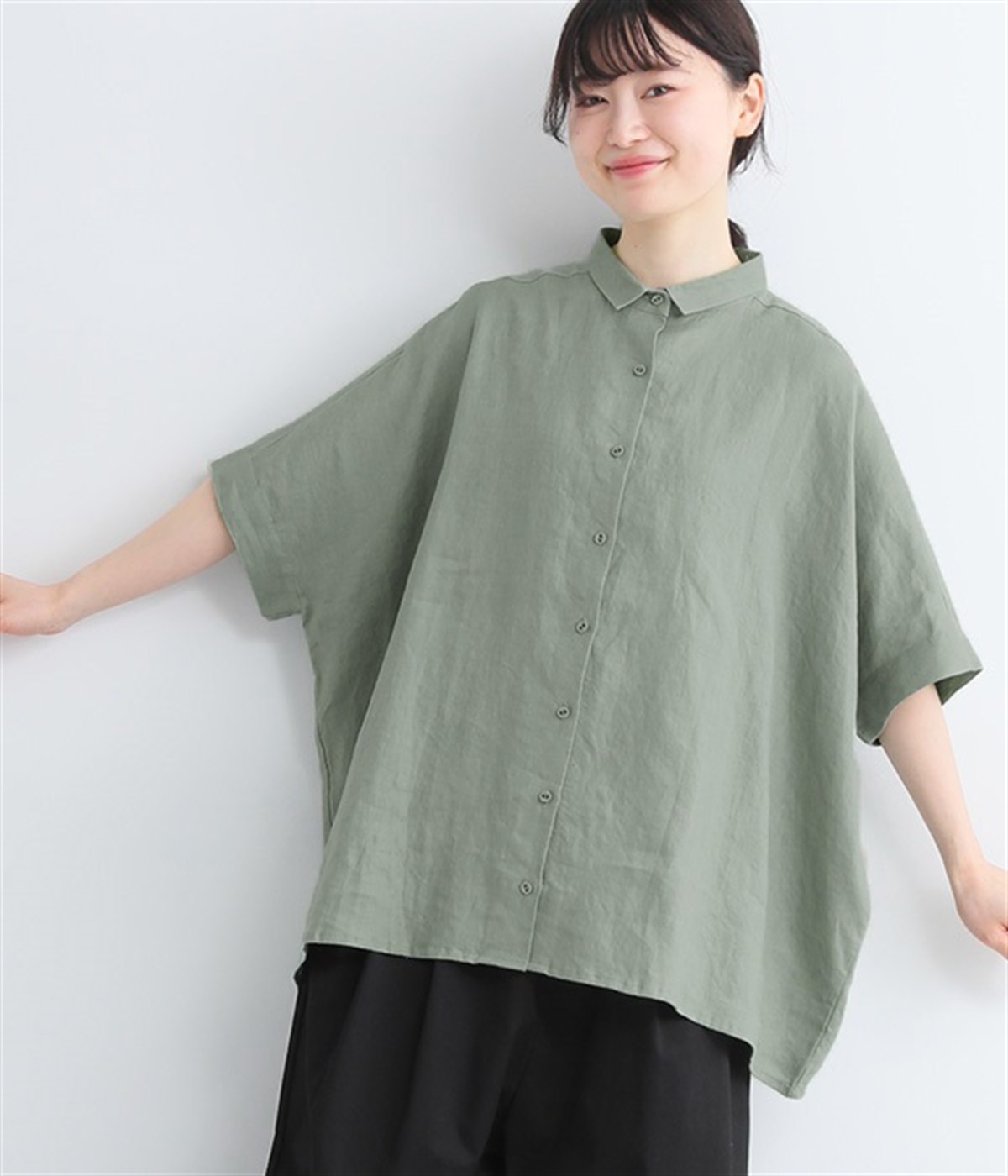 主張しすぎない大きさのチビ襟デザインがポイントのブラウス。天然の吸湿速乾性とシャリ感で快適な着心地が得られる、平織りリネンで仕立てました。身幅がたっぷりとしたビッグシルエットですが、リネンの落ち感によりすっきりと見せてくれます。パンツにもスカートにも合わせられるちょうどよい着丈で、さまざまなコーディネートに対応。ボタンをフルオープンにしてワンピースなどの上からラフに羽織っても素敵です。