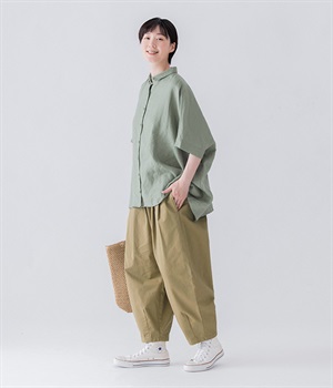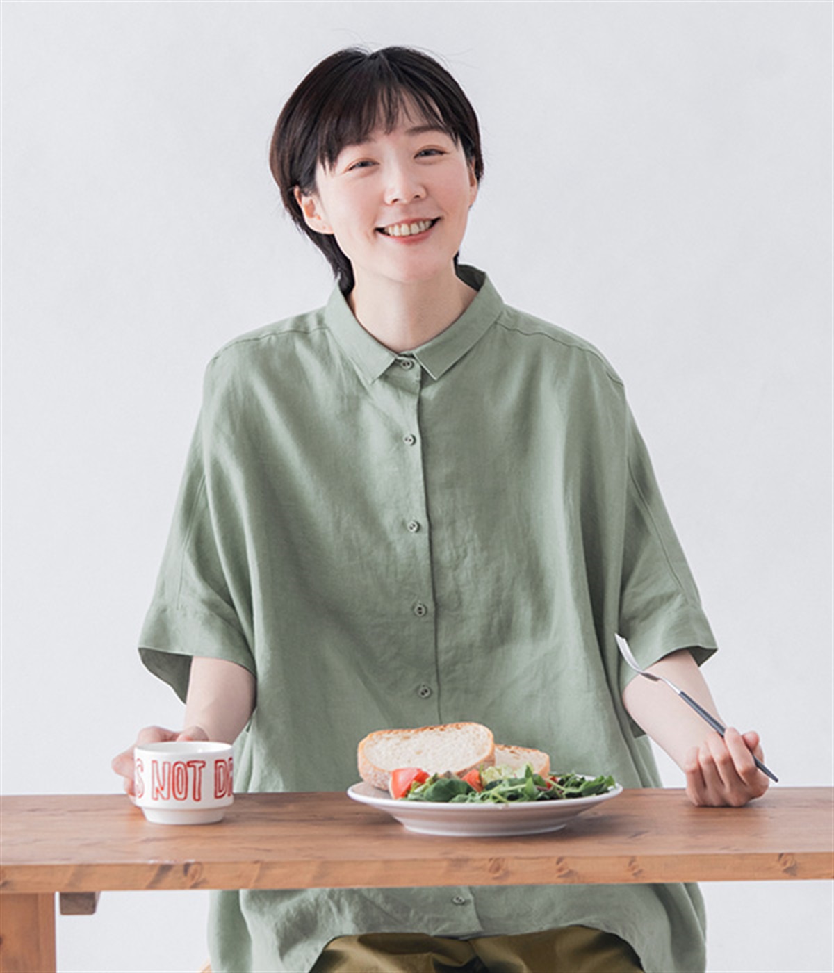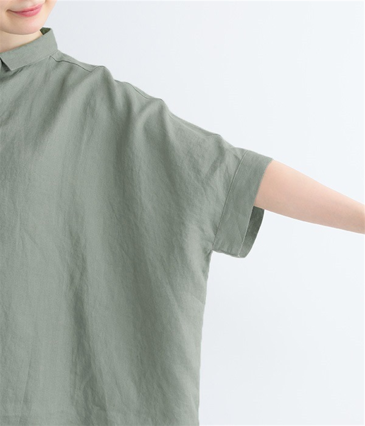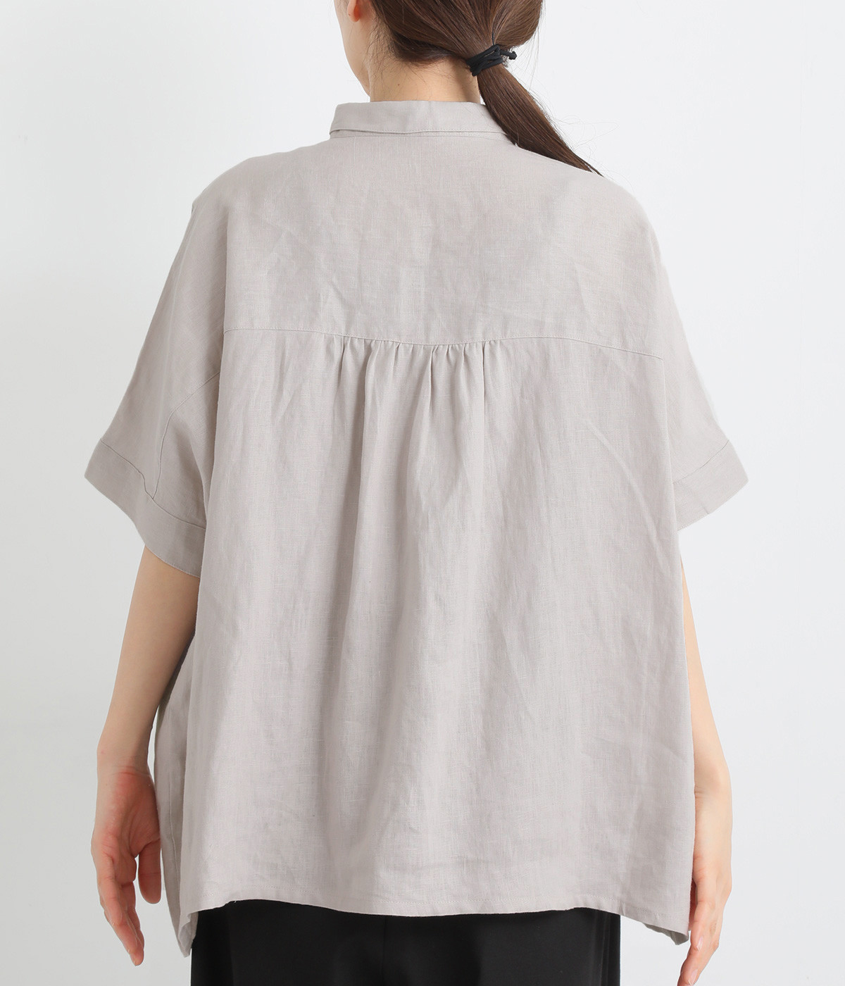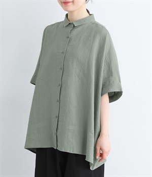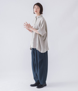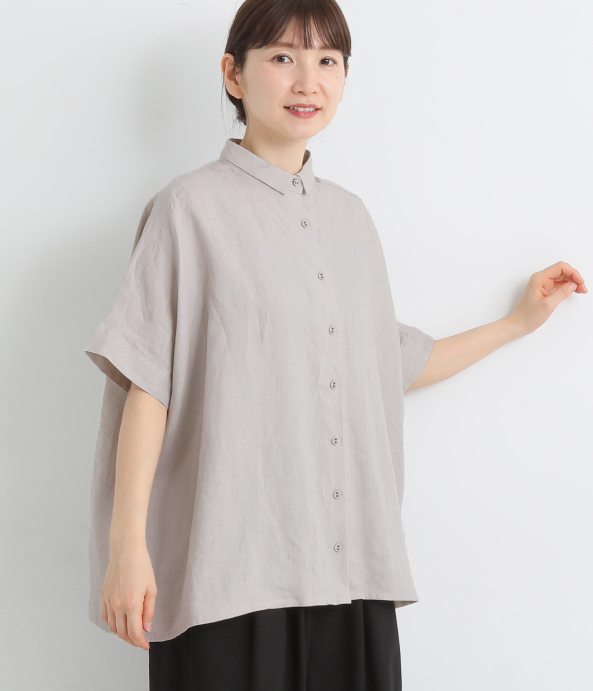 主張しすぎない大きさのチビ襟デザインがポイントのブラウス。天然の吸湿速乾性とシャリ感で快適な着心地が得られる、平織りリネンで仕立てました。身幅がたっぷりとしたビッグシルエットですが、リネンの落ち感によりすっきりと見せてくれます。パンツにもスカートにも合わせられるちょうどよい着丈で、さまざまなコーディネートに対応。ボタンをフルオープンにしてワンピースなどの上からラフに羽織っても素敵です。